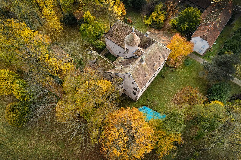 Parmi les témoins de son passé militaire figurent une arbalétrière vraisemblablement ancienne, une canonnière en lunettes attribuée au second tiers du XVIe siècle, un chemin de ronde et un passage ménagé dans le mur de trois mètres d'épaisseur où s'inscrit un escalier en colimaçon permettant de passer de la cave au premier étage ; une fente de tir proche de l'entrée permettait la surveillance et la défense de l'accès. Les vestiges relatifs au pont-levis sont encore lisibles par la feuillure d'encastrement, les larges fentes de manœuvre et les ancrages près du seuil. Le château est inscrit au titre des monuments historiques depuis le 9 mai 1988.