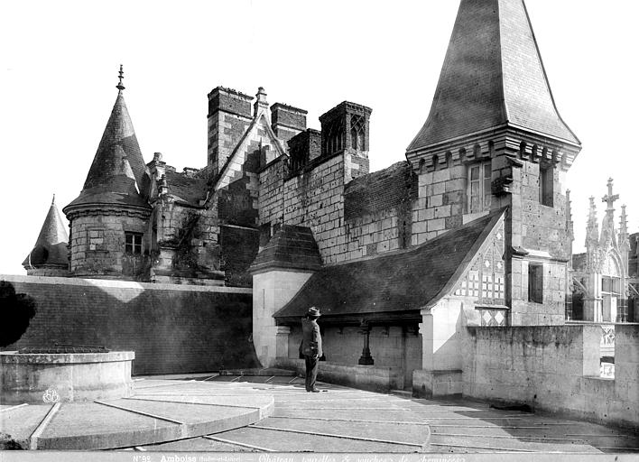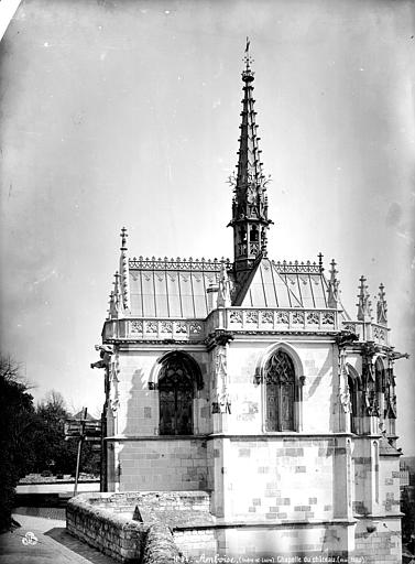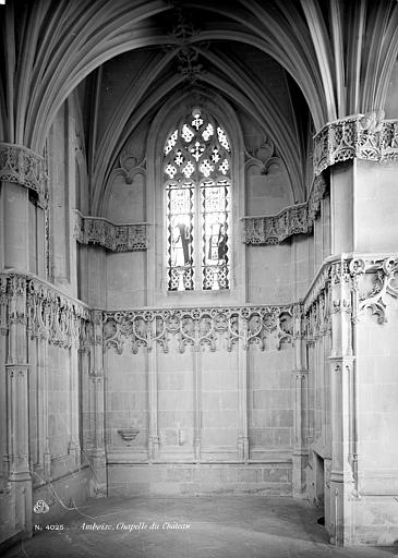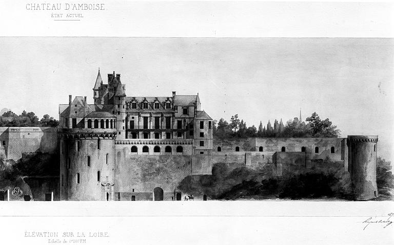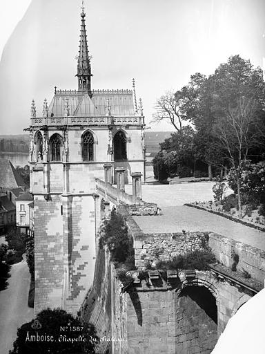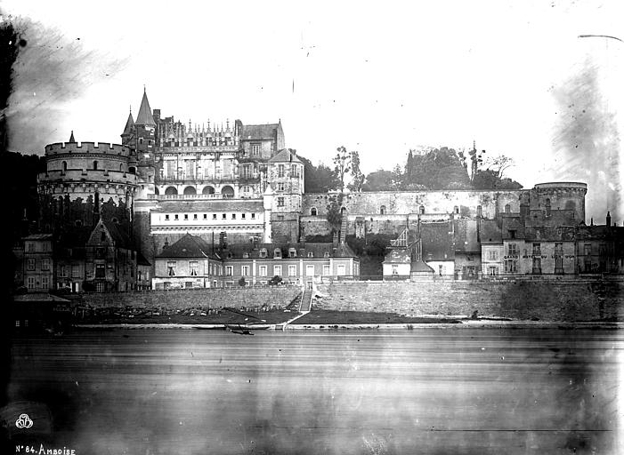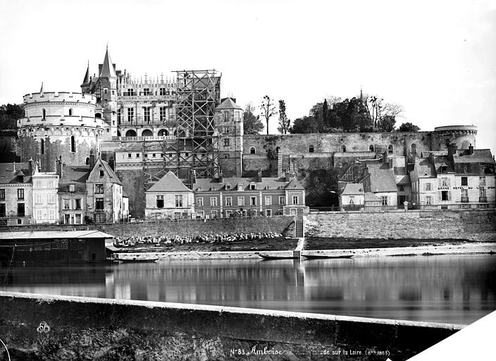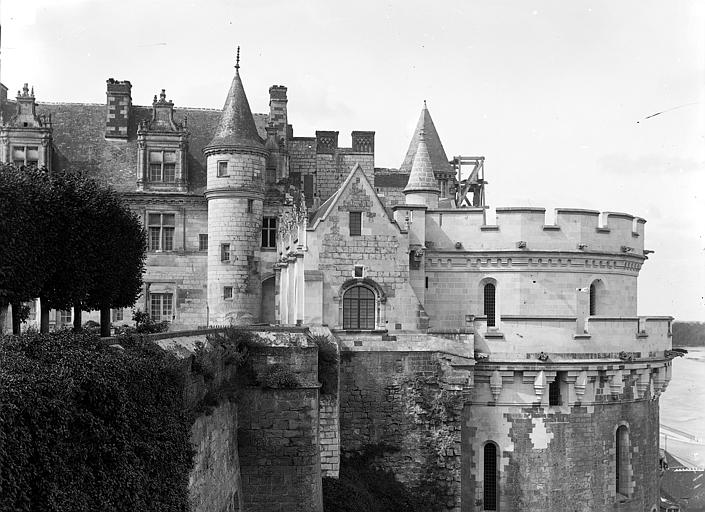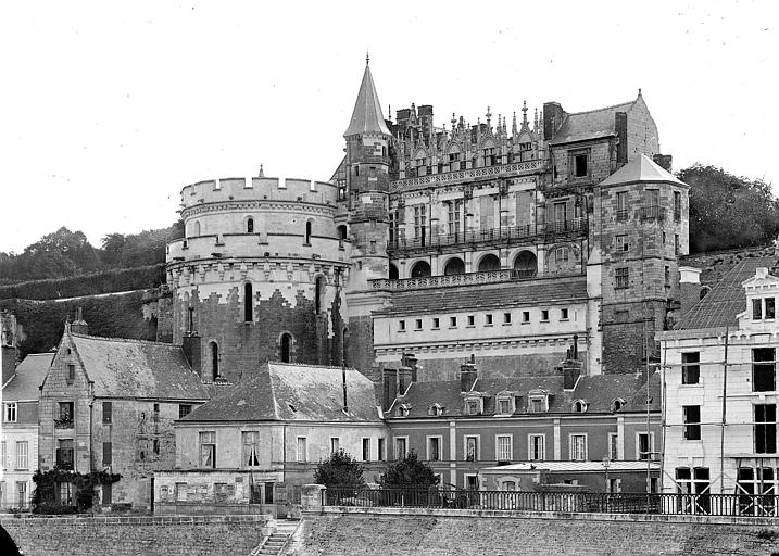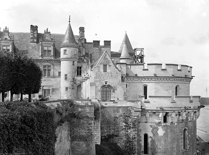 Le château royal d'Amboise domine la Loire à Amboise et fait partie des châteaux de la Loire. Édifié sur l'éperon des Châtelliers, le monument présente un plan triangulaire et s'appuie sur des terrasses et des tours cavalières qui lui donnent sa silhouette caractéristique. Le site est occupé depuis la Préhistoire ; une agglomération fortifiée se développe à la fin de l'âge du fer et se prolonge à l'époque romaine, occupée au moins du IIe au IVe siècle selon Sulpice Sévère. Après des pillages normands aux IXe siècles et des remaniements des fortifications par la famille d'Amboise, la place devient l'une des mieux protégées de l'Ouest au Xe siècle, avant que les seigneurs d'Amboise n'en prennent le contrôle complet au début du XIIe. La puissante maison d'Amboise conserve le château pendant plus de quatre siècles ; en 1434 il est rattaché à la couronne et devient demeure royale. Charles VIII, élevé à Amboise, lance après son retour d'Italie la reconstruction du château primitif : le logis royal, de style gothique flamboyant, occupe le front sur la Loire, la chapelle Saint-Hubert est édifiée et deux tours cavalières sont élevées, tandis que des terrasses et un parc sont aménagés. Les travaux, dirigés par Raymond de Dezest et plusieurs maîtres d'œuvre, mobilisent plusieurs centaines d'ouvriers. Charles VIII y meurt accidentellement en heurtant sa tête contre un linteau de la galerie Hacquelebac. Louis XII ajoute une aile perpendiculaire de style Renaissance et Louise de Savoie y élève ses enfants, dont François Ier qui séjourne fréquemment au château au début de son règne. Léonard de Vinci séjourne à Amboise dans le Clos Lucé, meurt en 1519 et est inhumé dans la collégiale Saint-Florentin ; la chapelle Saint-Hubert lui est longtemps présentée comme sa dernière demeure présumée. La légende d'un souterrain reliant le Clos Lucé au château a été démentie par les dernières fouilles archéologiques. Sous Henri II et François Ier des aménagements se poursuivent, mais à partir d'Henri III les séjours royaux se raréfient et le château entre progressivement en déclin. Aux XVIIe et XVIIIe siècles il est utilisé à plusieurs reprises comme prison pour des personnages de marque et passe entre différentes mains, dont Gaston de France, Louis XIV, le duc de Choiseul et le duc de Penthièvre. La Révolution et le Premier Empire entraînent des spoliations et des démolitions : une grande partie de l'édifice est détruite lorsque le domaine est donné à Roger Ducos, qui fait raser près des deux tiers du château, dont la collégiale Saint-Florentin et le logis des reines. Au XIXe siècle Louis‑Philippe fait dégager les anciens remparts et redécorer l'aile Louis XII ; en 1848 le site redevient propriété de l'État et il accueille en 1848-1852 l'émir Abd El-Kader et sa suite en captivité. En 1873 la famille d'Orléans reprend le domaine, confie sa restauration à Victor Ruprich-Robert et Henri d'Orléans transforme une partie du château en maison d'accueil pour personnes âgées ; en 1974 le comte de Paris remet le monument à la Fondation Saint-Louis. Le château d'Amboise est classé au titre des monuments historiques dès 1840. Architectoniquement, le logis royal traduit le gothique international tandis que l'aile Louis XII présente des ornementations remaniées par François Ier au goût de la Haute-Renaissance ; les deux grandes tours cavalières, dites des Minimes et Heurtault, offrent des rampes en pente douce permettant l'accès des attelages aux terrasses. La chapelle Saint-Hubert, réalisée en tuffeau blanc par des artistes flamands entre 1491 et 1496, illustre le gothique flamboyant ; elle sert d'oratoire à Anne de Bretagne, conserve des éléments sculptés et vitrés et abrite le tombeau présumé de Léonard de Vinci. Entre 2021 et 2024 la chapelle a fait l'objet d'une restauration importante : plus de deux cents éléments sculptés ont été réinstallés, les dorures et décors de toiture restitués et la cloche remise en service. À l'intérieur, les salles témoignent des usages successifs : le promenoir des gardes, la salle des gardes nobles avec son « palmier gothique », la salle des tambourineurs et la vaste salle des États, décorée de blasons et de monogrammes d'Anne de Bretagne et de Charles VIII, illustrent la juxtaposition de motifs gothiques et renaissants. L'aile Louis XII conserve des appartements meublés selon des goûts variés, dont la salle de l'échanson, la chambre de Henri II, l'antichambre de la Cordelière et des pièces reconstituées à l'époque de Louis‑Philippe, ainsi que le salon de musique où figurent des portraits et un piano Érard. Les jardins comprennent la terrasse de Naples, dotée de belvédères et d'un jardin de la Renaissance conçu par Dom Pacello, des jardins paysagers bordés d'essences méditerranéennes et un jardin d'Orient créé en 2005 en mémoire des compagnons d'Abd El-Kader. Un buste de Léonard de Vinci occupe l'emplacement de la collégiale Saint-Florentin et plusieurs éléments culturels modernes s'inspirent du château, qui a par ailleurs fait l'objet de représentations postales et littéraires.