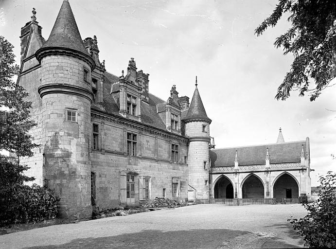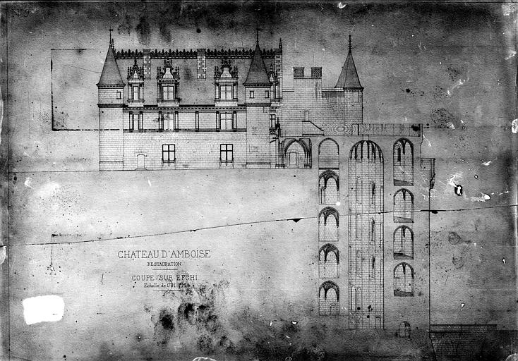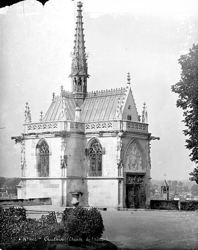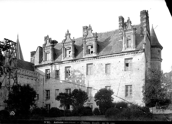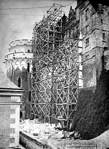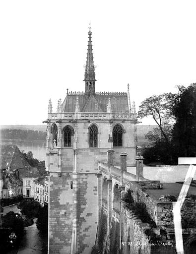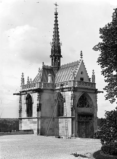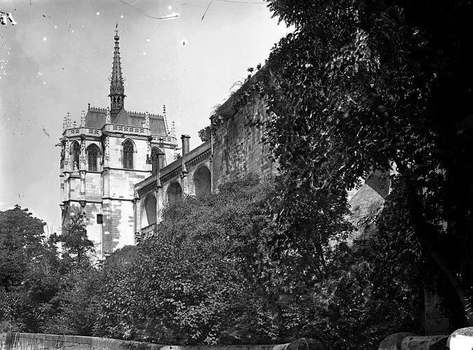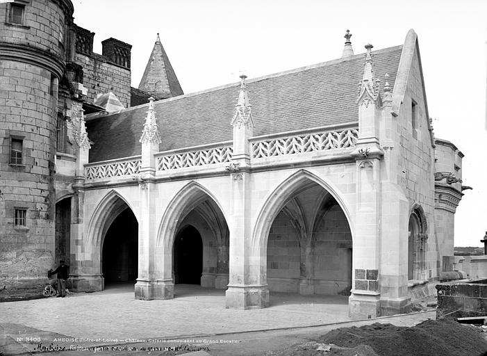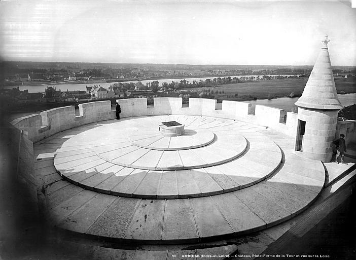 Le château royal d'Amboise domine la Loire à Amboise et fait partie des châteaux de la Loire. Édifié sur l'éperon des Châtelliers, le monument présente un plan triangulaire et s'appuie sur des terrasses et des tours cavalières qui lui donnent sa silhouette caractéristique. Le site est occupé depuis la Préhistoire ; une agglomération fortifiée se développe à la fin de l'âge du fer et se prolonge à l'époque romaine, occupée au moins du IIe au IVe siècle selon Sulpice Sévère. Après des pillages normands aux IXe siècles et des remaniements des fortifications par la famille d'Amboise, la place devient l'une des mieux protégées de l'Ouest au Xe siècle, avant que les seigneurs d'Amboise n'en prennent le contrôle complet au début du XIIe. La puissante maison d'Amboise conserve le château pendant plus de quatre siècles ; en 1434 il est rattaché à la couronne et devient demeure royale. Charles VIII, élevé à Amboise, lance après son retour d'Italie la reconstruction du château primitif : le logis royal, de style gothique flamboyant, occupe le front sur la Loire, la chapelle Saint-Hubert est édifiée et deux tours cavalières sont élevées, tandis que des terrasses et un parc sont aménagés. Les travaux, dirigés par Raymond de Dezest et plusieurs maîtres d'œuvre, mobilisent plusieurs centaines d'ouvriers. Charles VIII y meurt accidentellement en heurtant sa tête contre un linteau de la galerie Hacquelebac. Louis XII ajoute une aile perpendiculaire de style Renaissance et Louise de Savoie y élève ses enfants, dont François Ier qui séjourne fréquemment au château au début de son règne. Léonard de Vinci séjourne à Amboise dans le Clos Lucé, meurt en 1519 et est inhumé dans la collégiale Saint-Florentin ; la chapelle Saint-Hubert lui est longtemps présentée comme sa dernière demeure présumée. La légende d'un souterrain reliant le Clos Lucé au château a été démentie par les dernières fouilles archéologiques. Sous Henri II et François Ier des aménagements se poursuivent, mais à partir d'Henri III les séjours royaux se raréfient et le château entre progressivement en déclin. Aux XVIIe et XVIIIe siècles il est utilisé à plusieurs reprises comme prison pour des personnages de marque et passe entre différentes mains, dont Gaston de France, Louis XIV, le duc de Choiseul et le duc de Penthièvre. La Révolution et le Premier Empire entraînent des spoliations et des démolitions : une grande partie de l'édifice est détruite lorsque le domaine est donné à Roger Ducos, qui fait raser près des deux tiers du château, dont la collégiale Saint-Florentin et le logis des reines. Au XIXe siècle Louis‑Philippe fait dégager les anciens remparts et redécorer l'aile Louis XII ; en 1848 le site redevient propriété de l'État et il accueille en 1848-1852 l'émir Abd El-Kader et sa suite en captivité. En 1873 la famille d'Orléans reprend le domaine, confie sa restauration à Victor Ruprich-Robert et Henri d'Orléans transforme une partie du château en maison d'accueil pour personnes âgées ; en 1974 le comte de Paris remet le monument à la Fondation Saint-Louis. Le château d'Amboise est classé au titre des monuments historiques dès 1840. Architectoniquement, le logis royal traduit le gothique international tandis que l'aile Louis XII présente des ornementations remaniées par François Ier au goût de la Haute-Renaissance ; les deux grandes tours cavalières, dites des Minimes et Heurtault, offrent des rampes en pente douce permettant l'accès des attelages aux terrasses. La chapelle Saint-Hubert, réalisée en tuffeau blanc par des artistes flamands entre 1491 et 1496, illustre le gothique flamboyant ; elle sert d'oratoire à Anne de Bretagne, conserve des éléments sculptés et vitrés et abrite le tombeau présumé de Léonard de Vinci. Entre 2021 et 2024 la chapelle a fait l'objet d'une restauration importante : plus de deux cents éléments sculptés ont été réinstallés, les dorures et décors de toiture restitués et la cloche remise en service. À l'intérieur, les salles témoignent des usages successifs : le promenoir des gardes, la salle des gardes nobles avec son « palmier gothique », la salle des tambourineurs et la vaste salle des États, décorée de blasons et de monogrammes d'Anne de Bretagne et de Charles VIII, illustrent la juxtaposition de motifs gothiques et renaissants. L'aile Louis XII conserve des appartements meublés selon des goûts variés, dont la salle de l'échanson, la chambre de Henri II, l'antichambre de la Cordelière et des pièces reconstituées à l'époque de Louis‑Philippe, ainsi que le salon de musique où figurent des portraits et un piano Érard. Les jardins comprennent la terrasse de Naples, dotée de belvédères et d'un jardin de la Renaissance conçu par Dom Pacello, des jardins paysagers bordés d'essences méditerranéennes et un jardin d'Orient créé en 2005 en mémoire des compagnons d'Abd El-Kader. Un buste de Léonard de Vinci occupe l'emplacement de la collégiale Saint-Florentin et plusieurs éléments culturels modernes s'inspirent du château, qui a par ailleurs fait l'objet de représentations postales et littéraires.