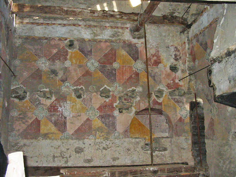L'édifice se compose de deux parties. La plus ancienne, datée de 1279–1283, renferme un décor peint du début du XIVe siècle au rez-de-chaussée et à l'étage ; la salle d'apparat du premier étage, accessible anciennement par une structure en bois extérieure à cinq mètres du sol, s'ouvre par une arcade fermée sur une pièce haute de six mètres d'environ 60 m2. Cette salle, globalement bien conservée et peu modifiée depuis le XIIIe siècle, comporte un lavabo dans une niche voûtée à droite de l'entrée, trois fenêtres ébrasées à coussièges, une grande cheminée en pierre aux armes des Monteynard avec tablettes et des latrines en façade dont la porte en bois peinte et les corbeaux saillants sont d'origine. À l'origine l'ensemble des structures, poutres, portes, sol et plafond étaient peints ; aujourd'hui seuls le mur et le plafond ouest ont été endommagés par des infiltrations, et 150 m2 de surfaces ornées restent visibles, ce qui confère à la salle un caractère que les spécialistes jugent « unique au monde ». La seconde partie, attribuée vers 1325, présente des fenêtres aux encadrements trilobés avec bases sculptées ; elle a été transformée ultérieurement en habitation. Une étude archéologique du bâti est en cours pour préciser l'organisation générale, le rôle des pièces et l'étendue des décors peints.