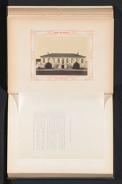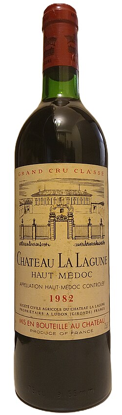 Château La Lagune est un domaine viticole de 80 hectares situé à Ludon-Médoc, en Gironde, en AOC Haut-Médoc, classé troisième grand cru dans la classification officielle de 1855. Le domaine a été construit au XVIIIe siècle à l'emplacement d'un village médiéval appelé La Lagune. L'édifice prend la forme d'une chartreuse sur soubassement, encadrée de deux ailes en retour d'équerre, et s'articule autour de deux cours rectangulaires fermées par des grilles : la cour d'honneur, qui regroupe la chartreuse et ses ailes et est limitée par de hautes grilles, et la cour de l'ancien cuvier. Plusieurs parties portent des dates ou indications chronologiques : les bâtiments agricoles sont datés 1734, le logis relève de la seconde moitié du XVIIIe siècle, les chais appartiennent au XIXe siècle, et le portail d'entrée porte le monogramme L.G. Des illustrations du château datent du XIXe siècle, notamment 1868 et 1893.