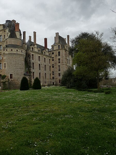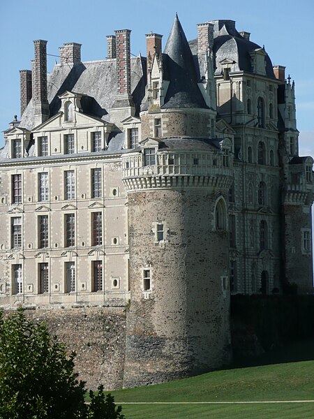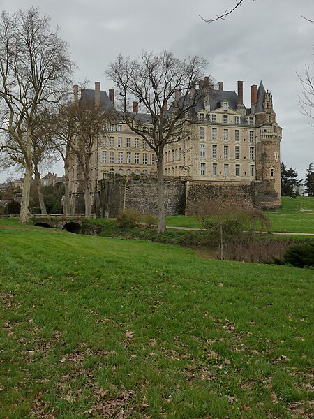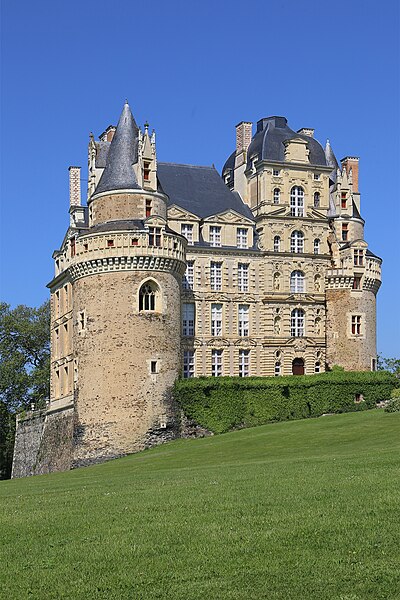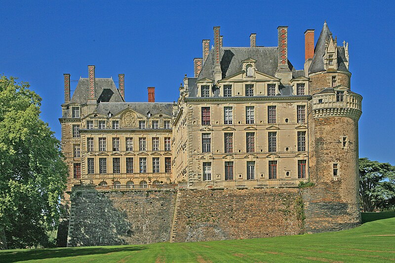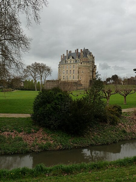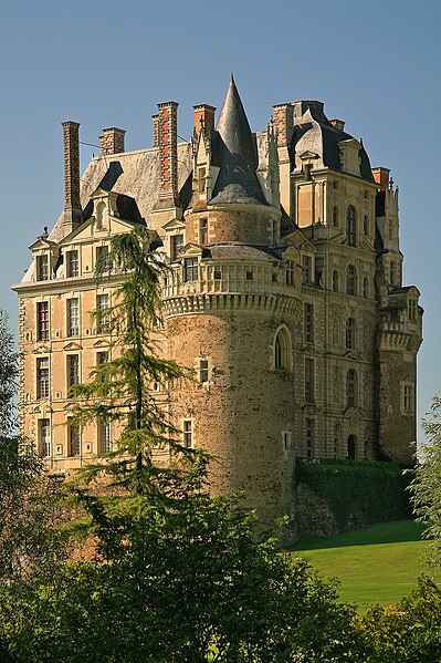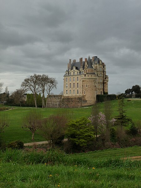 Le château de Brissac, situé à Brissac Loire Aubance près d'Angers, est un ancien château-fort du comté d'Anjou partiellement protégé au titre des monuments historiques. Construit au XIe siècle par Foulques Nerra, il fut cédé à Guillaume des Roches après la défaite des Anglais par Philippe Auguste. Acquis en 1435 et reconstruit en 1455 par Pierre de Brézé, il revint ensuite à son fils Jacques de Brézé. Jacques s'installa au château avec sa femme Charlotte de Valois et, le 1er juin 1477, il tua Charlotte et son amant Pierre de Lavergne ; la légende veut que Charlotte apparaisse sous la forme d'une dame blanche les nuits d'orage. La propriété fut achetée en 1502 par René de Cossé, qui l'introduisit dans la famille Cossé‑Brissac. Pendant les guerres de Religion, Charles de Cossé prit le parti de la Ligue et le château fut assiégé par Henri IV ; après son ralliement au roi en 1594, il retrouva la propriété gravement endommagée en 1606. Charles de Cossé obtint le titre de maréchal de France puis de duc de Brissac en 1611, et la forteresse, menacée de démolition, fut reconstruite sous la direction de l'architecte Jacques Corbineau pour devenir un édifice grandiose. Le duc de Brissac eut pour secrétaire Goddes de Varennes, marquis de la Perrière, et en 1620 le château accueillit une entrevue entre Louis XIII et Marie de Médicis, suivie de trois jours de festivités et d'entretiens privés. Les Cossé‑Brissac conservèrent le château jusqu'en 1792 ; pendant la Révolution il fut réquisitionné comme cantonnement pour les "Bleus" de Vendée, mis à sac et resta dans cet état jusqu'à la restauration entreprise en 1844. Restitué à la famille après la Révolution, il continua à leur appartenir et à recevoir leurs successeurs. En 1890, Jeanne‑Marie Say inaugura un théâtre à deux niveaux dans le château ; ce théâtre a été restauré vers 1983. En 1939-1940 le duc proposa le château pour abriter des œuvres d'art : il reçut notamment du mobilier de Versailles conservé sur place jusqu'en 1946, ainsi que des œuvres et collections venues de musées, d'ambassades et de soixante‑cinq collections privées, parmi lesquelles figurent celles d'André Lhote, Maurice Denis et Paul Valéry, ainsi que le trésor de la cathédrale d'Angers. Un rapport cité par Corinne Bouchoux relate qu'en août 1944 cinq soldats allemands firent irruption au château et tuèrent le gardien J.-B. Faucher. Le château et ses occupants sont évoqués dans les mémoires de Simon de Cossé, duc de Brissac, qui publia plusieurs ouvrages couvrant le XXe siècle. En 1960 le photographe Pierre Jahan réalisa des clichés pour la revue Plaisir de France, dont une image d'un cavalier cuirassé dans la salle d'armes liée à une anecdote sur un heaume resté coincé. En 1950 le préfet Jean Morin organisa une représentation théâtrale au château montée par René Rabault, première manifestation qui donna naissance au festival d'Anjou. Le château, réputé pour sa hauteur, compte jusqu'à sept niveaux et 204 pièces ; sa façade reflète des influences baroques du XVIIe siècle et deux tours de la face du levant sont des vestiges du XVe siècle. Ouvert au public, il accueille chaque année un marché de Noël, une chasse aux œufs de Pâques, le Festival Fashion Flower et des événements liés aux montgolfières, notamment les départs du Championnat de France. Parmi ses pièces figurent la chambre des chasses et la chambre Louis XIII. Le château est représenté au parc de miniatures Parc Mini‑Châteaux à Amboise et apparaît dans le jeu vidéo japonais Fate/stay night sous le nom de château Einzbern. Il a servi de décor pour des tournages : plusieurs séquences de l'émission Secrets d'Histoire ont été filmées pour des numéros consacrés à Madame du Barry (diffusé le 15 novembre 2016) et à Marie de Médicis (diffusé le 19 juillet 2018), et il a contribué aux reconstitutions de la saison 4 de la série documentaire La Guerre des trônes. Dans son parc se trouve le mausolée des ducs de Brissac. Des études, notices historiques et articles récents documentent l'histoire et l'architecture du château.