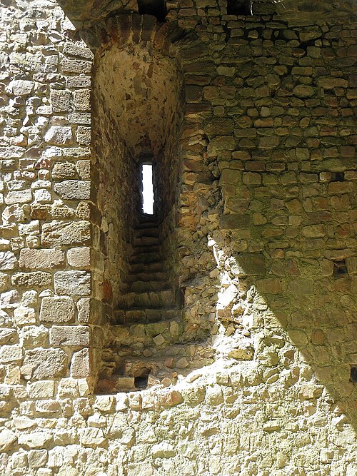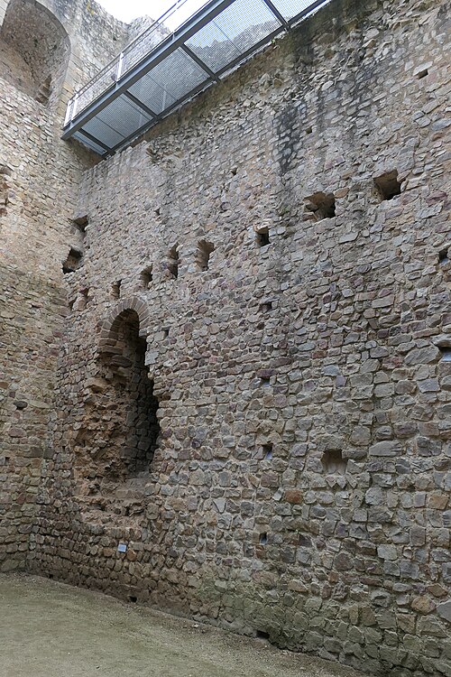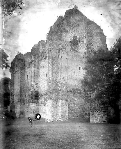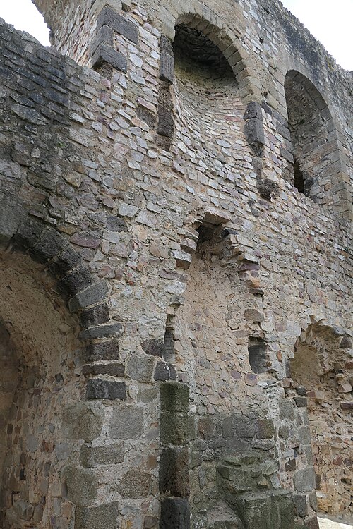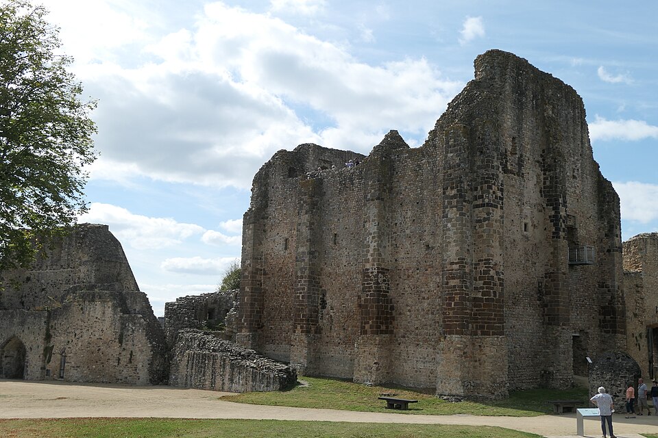 La forteresse s'organise autour d'une cour triangulaire d'environ 0,6 hectare ceinturée par onze tours, dont huit rondes et trois carrées. Un fossé longe le rempart ouest et sépare le château de la ville médiévale, tandis que les deux autres côtés dominent la vallée. Un donjon quadrangulaire à trois niveaux se dresse près de l'ancien pont-levis ; le premier niveau servait d'entrepôt, le second de salle de réception et le troisième d'espace privé. Une poterne située près de la pointe sud-est du rempart est probablement percée au XIIe siècle. À partir de 1604, Fouquet fit adapter la forteresse pour une résidence en utilisant des pierres de grès locales, du tuffeau d'Angers et du roussard de Bernay, en abaissant la hauteur de certains remparts, en réutilisant la base d'une grosse tour et en remblayant la cour entre l'ancien pont-levis et la poterne de la porte de fer. Le logis, représentatif de l'époque Henri IV et du style de transition entre la Renaissance et le classicisme, présente une toiture à forte pente en ardoises d'Angers, une façade rythmée en travées, des frontons de lucarnes et une sobriété décorative classique dans les bossages encadrant les baies. Le pavillon d'escalier d'entrée, conçu comme une loggia menant à l'escalier intérieur, apporte une nuance à la façade dépouillée. Le bâtiment comporte un sous-sol voûté destiné à l'office avec un accès direct à la cour, un rez-de-chaussée, un étage de réceptions et de chambres, et des combles remarquables à charpente en forme de coque de navire inversée, avec fenêtres à meneaux et superposition des ordres dorique, ionique et corinthien. La cour conserve une ancienne boulangerie et une ancienne écurie devenue bergerie, et des traces de l'ancien château d'habitation et de la chapelle sont visibles dans un mur voisin ; la chapelle Notre-Dame du château avait été dotée en 1380 par Pierre II d'Alençon et Marie Chamaillard.
