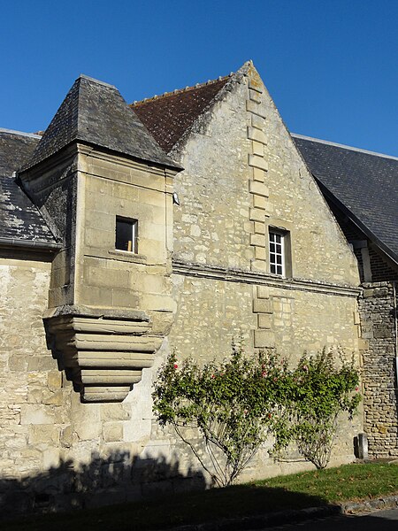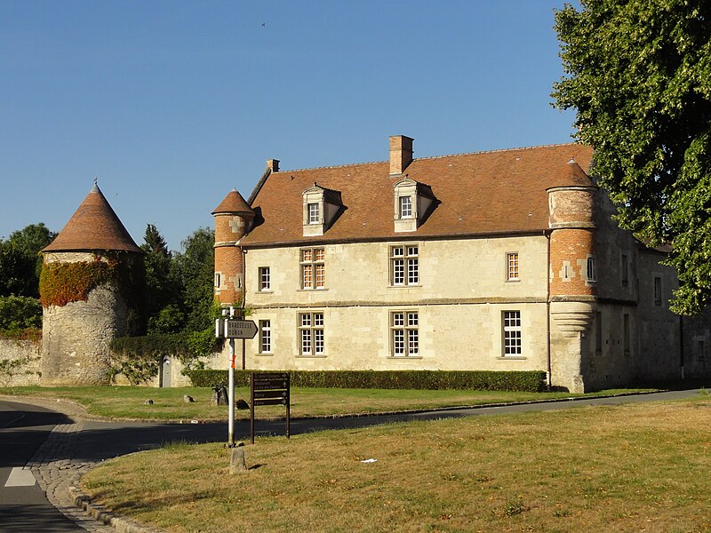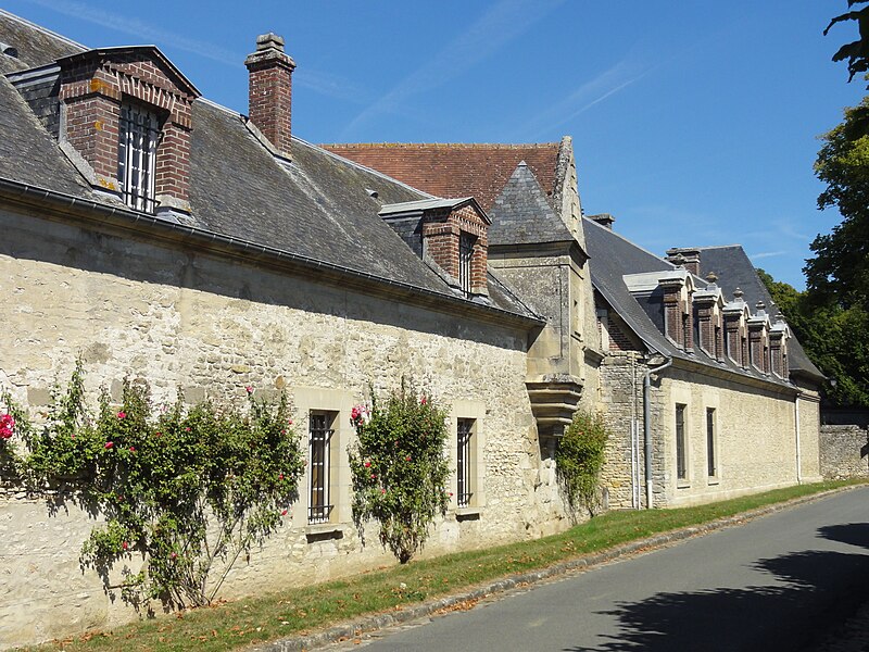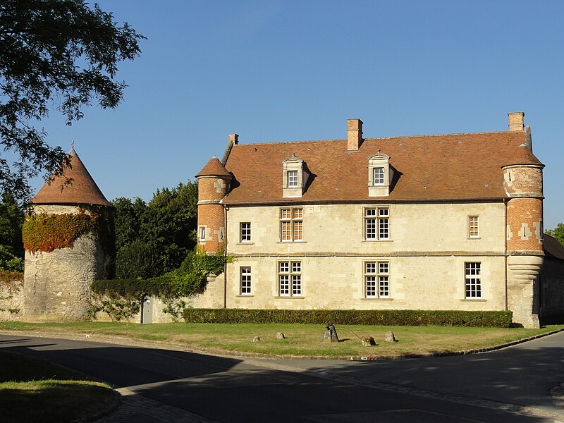 Parmi les dépendances, la ferme du château, avec son manoir du XVIe siècle et son colombier, est située sur la place à l'est du village et a été inscrite aux Monuments historiques par arrêté le 22 août 1949 ; elle ne doit pas être confondue avec l'écurie. Le manoir Renaissance en L présente des façades sur la rue Nicolas‑de‑Lancy au nord et la rue du Manoir à l'est, cette dernière constituant la façade principale grâce à la qualité de sa construction en pierre de taille blonde. Deux échauguettes d'angle en brique rouge, en encorbellement, contrastent avec l'appareil de pierre et conservent des meurtrières, dont l'une a toutefois été percée d'une fenêtre. Sur la façade est les quatre baies par niveau sont réparties de façon asymétrique mais les fenêtres de l'étage sont alignées sur celles du rez‑de‑chaussée ; deux grandes fenêtres centrales à meneaux sont surmontées, au niveau de la toiture, par deux lucarnes à fronton en segment de cercle ornées d'une boule. Le toit est couvert de tuiles plates rouges et, le long de la rue du Manoir, le grand colombier rond coiffé d'un toit en poivrière utilise les mêmes tuiles.