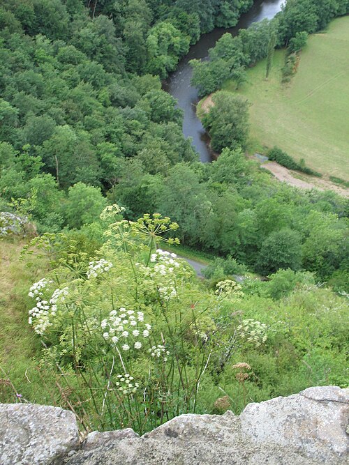 Château-Rocher, dit château fort de Blot-le-Rocher, est une forteresse médiévale en ruines située à Saint-Rémy-de-Blot, sur une falaise dominant la Sioule à 438 m d'altitude, dans le Puy-de-Dôme (Auvergne-Rhône-Alpes). Le site contrôlait la vallée de la Sioule et le passage du pont de Menat. Une motte castrale y existait dès le IXe siècle et la première forteresse a été édifiée à la fin du XIe siècle. Les travaux d'édification et d'agrandissement se sont poursuivis du XIIIe au XVe siècle, après la conquête de l'Auvergne par Philippe Auguste sur Guy II d'Auvergne. La terre de Blot fut donnée en apanage par Archambaud IV à son fils Pierre de Bourbon, dit Pierre de Blot, mentionné en 1169 ; un autre Pierre de Blot lui succéda en 1218 et créa la branche de Blot. Entre 1300 et 1350, cette branche se fondit dans la famille de Chauvigny par le mariage de Catherine de Blot, héritière de Gauvain de Blot, et de Guillemin de Chauvigny. En 1328, Jean de Chauvigny de Blot participa à des réclamations des nobles du Bourbonnais contre le clergé. Pendant la guerre de Cent Ans, le château était à la limite des possessions anglaises et fut pris et pillé en 1365 par Bertucat d'Albret, routier au service d'Édouard III ; la veuve de Jean de Chauvigny de Blot, Marguerite de Saligny, demanda alors l'aide du duc de Berry pour le reprendre. Des travaux d'amélioration eurent encore lieu à la fin du XVe siècle, mais au XVIe siècle Pierre de Chauvigny de Blot fit construire un autre château, plus accessible, près de Blot-l'Église, entraînant le déclin progressif de Château-Rocher. Les Chauvigny de Blot restèrent seigneurs jusqu'à la seconde moitié du XVIIIe siècle, quand Gilbert de Chauvigny de Blot vendit les terres de Blot-le-Rocher et Blot-l'Église à son neveu Hugues de Champs. La dernière propriétaire mentionnée, Marie Adélaïde Delpoux de Nafines, obtint le classement du château au titre des monuments historiques par arrêté du 20 janvier 1913. L'accès au château s'effectuait autrefois en trois étapes : une première porte dans la basse-cour, puis l'ascension vers une porte percée dans l'enceinte extérieure franchie au moyen d'un pont mobile reposant sur une pile, enfin la barbacane et la porte principale avec son pont-levis ; le dispositif était complété par plusieurs tours, dont trois tours principales flanquaient les fronts Est et Nord et une seconde enceinte protégeait les tours Est. Aujourd'hui en ruines, le site a fait l'objet de travaux de consolidation entrepris depuis 1964 par l'Association Château-Rocher. L'accès est gratuit toute l'année ; l'association propose des visites guidées en juillet et août, ainsi que des visites aux flambeaux. Des tuyaux en terre cuite découverts sur place ont probablement servi à alimenter une citerne.
