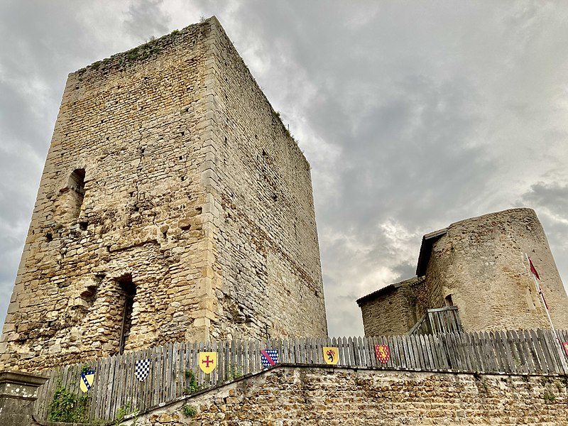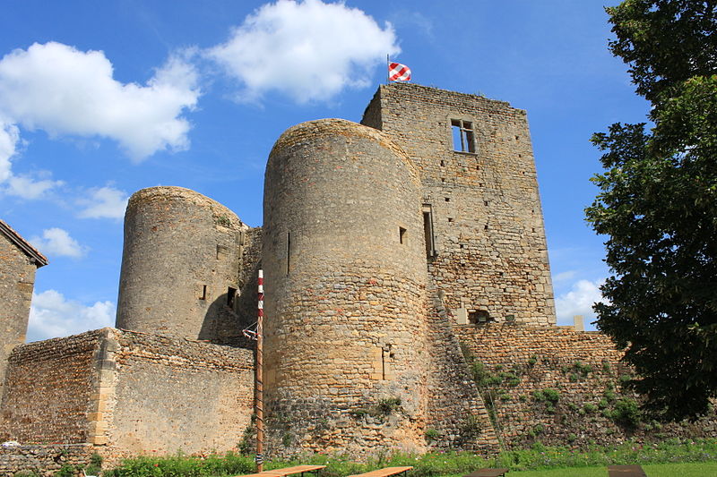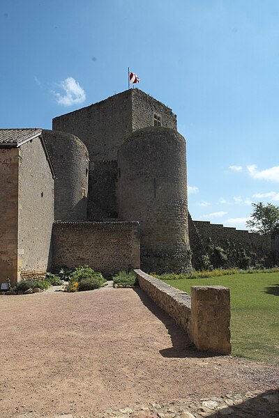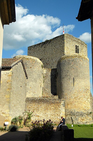 Le château de Semur-en-Brionnais, situé au point le plus étroit d'un éperon rocheux à Semur-en-Brionnais (Saône-et-Loire), est inscrit au titre des monuments historiques depuis le 13 octobre 1971. Il est considéré comme l'un des plus anciens châteaux forts de Bourgogne et c'est le lieu de naissance de saint Hugues. De l'ensemble fortifié qui couvrait l'éperon subsistent une poterne profondément remaniée et, sur une terrasse, une haute tour de plan rectangulaire. La poterne, modifiée lors de travaux entrepris en 1760, était à l'origine une porte d'étage défendue par une herse et un mâchicoulis sur arcade, comparable à ceux de Chamilly et de Sercy. Elle se trouvait entre deux tours rondes à bases légèrement talutées, percées de rares archères à embrasures plongeantes ; la porte a été ensuite obturée et des escaliers y ont été aménagés pour donner accès au premier étage des tours. La tour nord contient une citerne et la tour ouest un escalier aménagé dans l'épaisseur du mur. La tour rectangulaire, haute de 22 mètres, présente des murs épais de deux mètres à la base et conserve les trous de poutres correspondant à quatre niveaux de plancher. Les premiers niveaux de fondations du donjon semblent remonter à la fin du Xe siècle, tandis que la majeure partie de la construction résulte de remaniements successifs du XIe au XVe siècle. Les assises basses sont en moyen appareil avec des lits en arête de poisson, les troisième et quatrième niveaux en petit appareil ; on y distingue des ouvertures en plein cintre obturées, une petite porte au premier étage dont l'encadrement rectangulaire laisse supposer l'existence d'une passerelle, et, au sud et à l'ouest, deux fenêtres à meneau et croisillon avec coussièges, probablement contemporaines d'une vaste cheminée dont seuls subsistent les piédroits. Les substructures d'une petite tour dominent la vallée. Le château se visite. Le site fut confié en 879 par Boson de Provence à l'évêque d'Autun. La baronnie de Semur appartient ensuite à la maison de Semur : Freelan de Chamelet (ou Chamilly), décédé en 925, devient seigneur ; son fils Joceran fait bâtir un donjon et meurt en 994. La lignée se poursuit avec Geoffroy Ier (950-1015), Dalmace Ier (†1048), pour qui le fief est érigé en baronnie, puis Geoffroy II (1025-1090), dont le frère saint Hugues, sixième abbé de Cluny, est né au château. Les générations suivantes comprennent Geoffroy III (†1123), Geoffroy IV (†1128) — qui épouse Adèle ou Alix, fille de Baudouin Ier de Guînes — Geoffroy V (†1150), Dalmace II (†1162), Simon Ier (†1219), Dalmace III (1196-1226), Simon II (†1247), Henri (†1257) et Héloïse ou Helvis (†1262). En 1262, Jean Ier de Châteauvillain, petit-fils par sa mère de Simon Ier et époux de Jeanne de Semur, reçoit la baronnie de sa cousine Héloïse. Au début du XIVe siècle, Jeanne de Châteauvillain (†1345) épouse Guichard VI, sire de Beaujeu ; la seigneurie passe ensuite aux sires de Beaujeu, puis, après la mort sans enfant d'Édouard II de Beaujeu en 1400, aux Bourbon. En 1485, Gabrielle de Bourbon apporte la baronnie en dot à Louis II de La Trémoille. Parmi les seigneurs engagistes figurent Jacques de Chabannes, la famille Coligny — notamment Gaspard-Alexandre de Coligny — puis Jean du Puy, qui fait bâtir une nouvelle demeure, et son fils Jacques-Nicolas du Puy, qui fait édifier vers 1760 la maison du geôlier et, en 1775, l'auditoire du bailliage sur des plans de l'architecte Guillemot. En 1793, Jacques-Nicolas du Puy est en partie dépossédé et la baronnie est restituée à l'État comme bien engagé. Au début du XIXe siècle on tente d'abattre le donjon en pratiquant des brèches à sa base ; à partir de 1968, des travaux de mise en valeur sont menés par une équipe animée par M. J.-L. Dosso-Greggia. Les armoiries des seigneurs successifs — Semur, Bourbon, Bourbon-Montpensier, La Trémoille, Châteauvillain (gironné d'argent et de sable de huit pièces) et Albon (de sable à la croix d'or) — sont mentionnées. Parmi les principales références figurent l'ouvrage de F. Cucherat Semur-en-Brionnais, ses barons, ses établissements civils, judiciaires et ecclésiastiques depuis l'an 860 jusqu'à nos jours (1887) et Aux origines du charolais (Xe-XIIe s.) de J. Richard (1963).