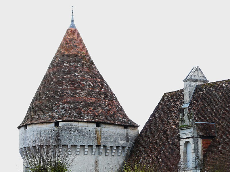 Ajout d'une grosse tour ronde à la maison forte existante.