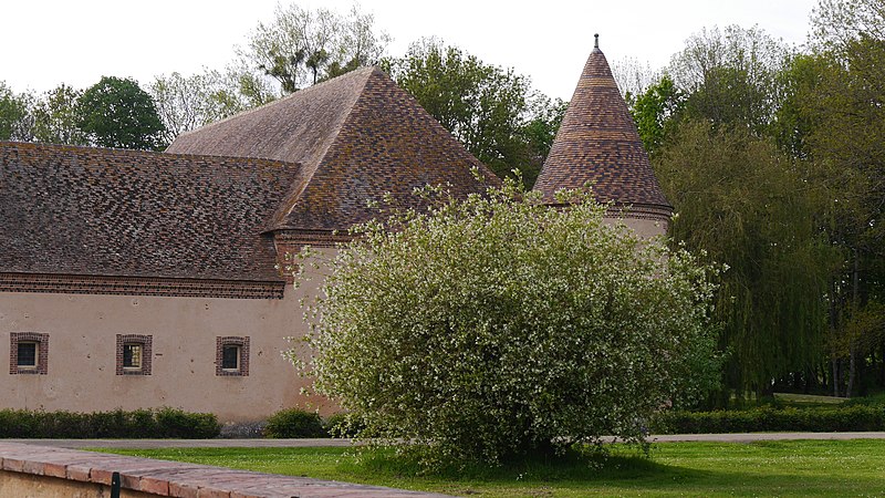 Château, ainsi que : pigeonnier, partie Nord de l'aile Est des communs, poterne du XVIIe siècle, façades et toitures des communs et de la tour d'angle, douves, pont-dormant et restes du pont-levis, murs de clôture avec les ruines adjacentes du XVIIe siècle (cad. A 323 à 327) : inscription par arrêté du 6 novembre 1985