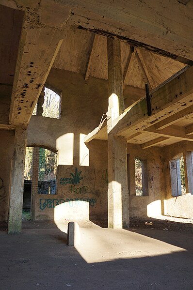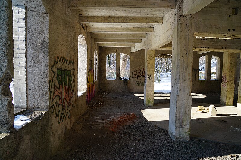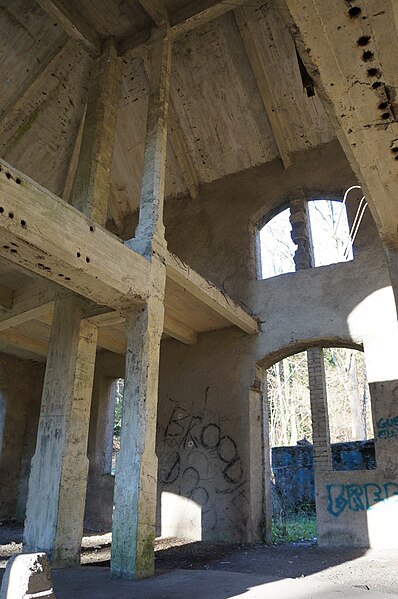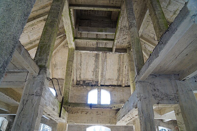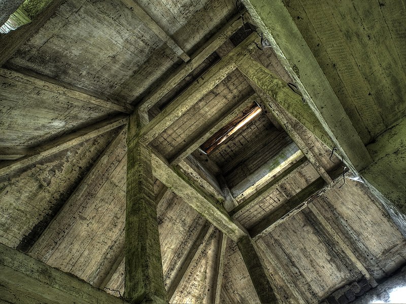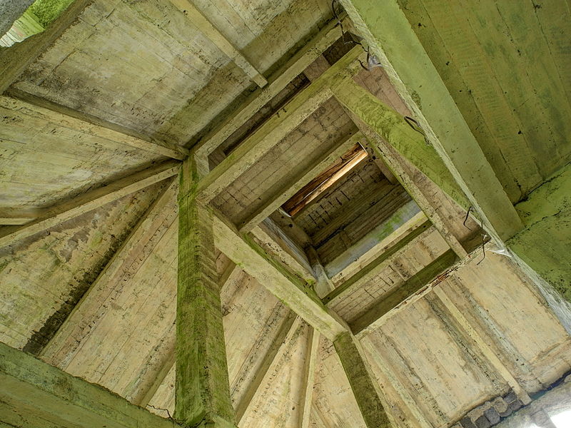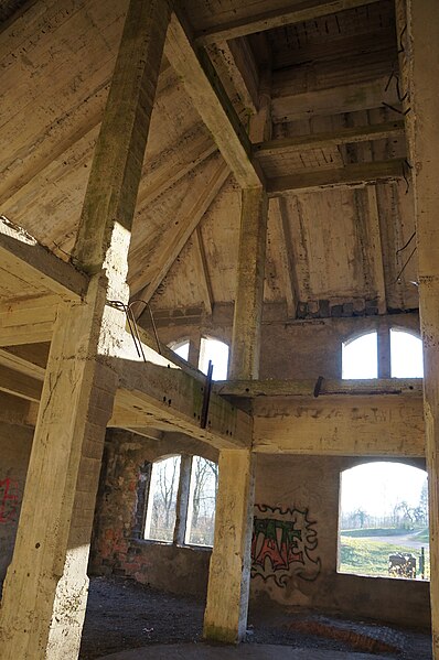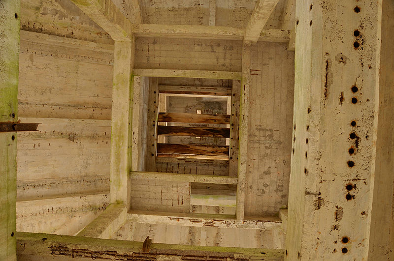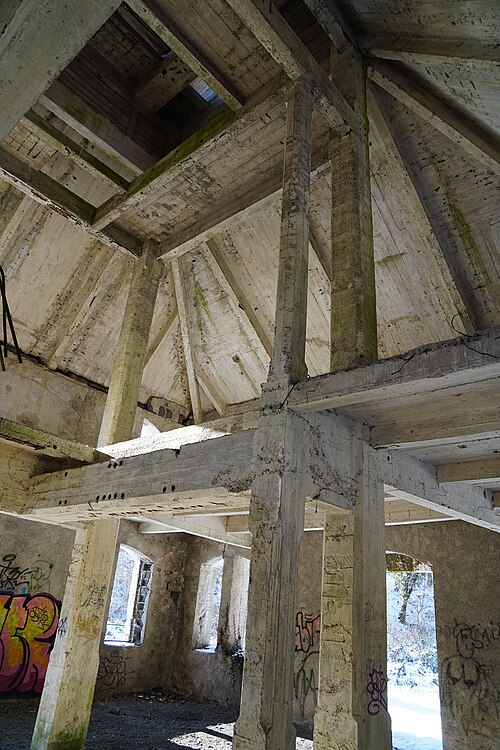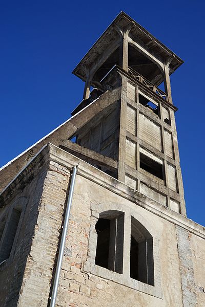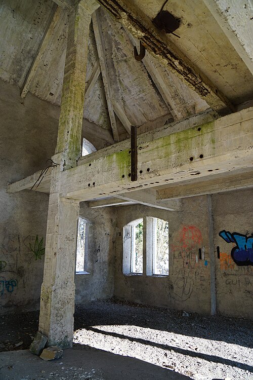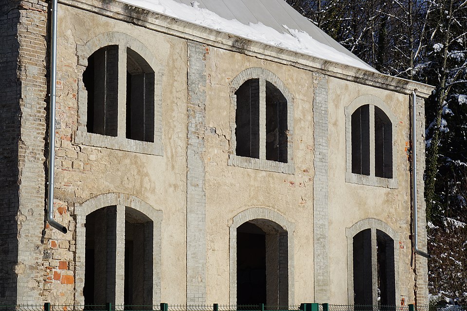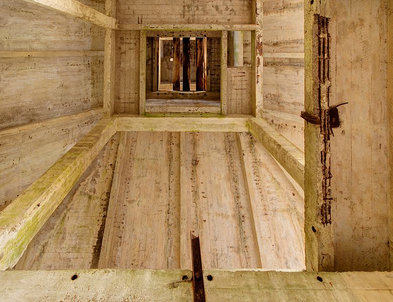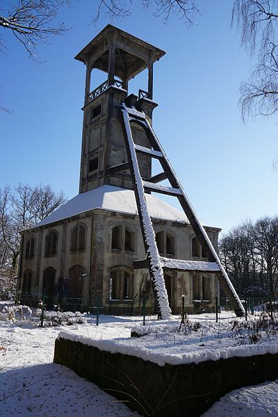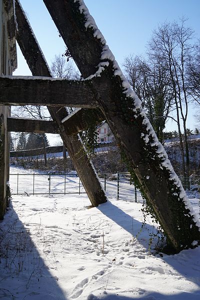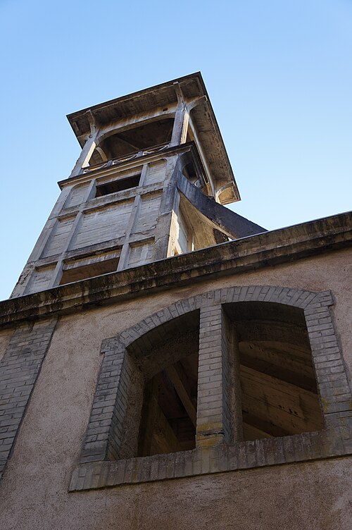 Le chevalement du puits Sainte‑Marie est le dernier témoin architectural des mines de houille de Franche‑Comté et l'un des derniers vestiges de l'activité minière locale. Construit en béton armé avec des chambranles de baies en brique, il présente une recherche de symétrie et d'harmonie rappelant l'architecture privée, ce qui atténue son caractère utilitaire. Le puits Sainte‑Marie a été foncé à partir de 1864 ; la couche de houille fut atteinte en 1866 à 305 mètres de profondeur, mais ne mesurait que 60 centimètres d'épaisseur. Malgré le percement de galeries de recherche, il ne donna pas les résultats attendus ; une galerie de jonction le relia au puits Saint‑Charles en 1869 et il servit alors d'aérage. Abandonné après la fermeture du puits Saint‑Charles, le site tomba en ruine. Vers 1920, le fonçage du puits du Chanois entraîna sa réhabilitation et, en 1924, la fosse fut équipée d'une machine d'extraction électrique et d'un chevalement en béton armé reconstruit. La pénurie de fer motiva l'emploi du béton armé pour la nouvelle structure. Le chevalement servit peu comme puits d'extraction mais assura l'aérage des bassins du Chanois et du Magny. Après la nationalisation des houillères, le bassin de Ronchamp fut confié à Électricité de France et, en 1950, les molettes et la machine d'extraction furent retirées pour être remontées sur un autre chevalement. Le puits cessa toute activité en 1950 ; il fut comblé en 1958 et ses installations démantelées, à l'exception du chevalement. La démolition du chevalement fut envisagée, mais il fut sauvé grâce aux protestations de la population et à l'action du docteur des mines Marcel Maulini, qui en fit un symbole à préserver. En 1972, la structure, alors propriété d'Électricité de France, fut cédée au conseil général de la Haute‑Saône pour un franc symbolique, sous l'impulsion d'un comité de rachat et d'aménagement. Restauré en 1979 par l'entreprise Meuziau, le site fut ensuite aménagé avec une locomotive et des berlines de mine en 1994. Le chevalement a été inscrit aux monuments historiques et a reçu le label « Patrimoine du XXe siècle » le 29 mars 2001. L'ouvrage, conçu en 1924 par l'ingénieur liégeois Charles Tournay, est de type avant carré porteur : quatre piliers verticaux supportent le plancher des molettes, surmonté d'un toit à quatre pans. Deux jambes de force, dirigées vers la machine d'extraction, s'appuient sur le plancher des molettes. Le bâtiment de recette associe poutres de béton hourdées de briques et toit à quatre pans. L'axe des molettes se situe à 18,50 mètres de hauteur et leur diamètre est de 3,30 mètres. La similitude avec d'autres chevalements conçus par Charles Tournay, notamment celui du puits de Sauwartan, se remarque dans la partie supérieure et les bigues. La forme générale et l'association du béton et de la brique rouge traduisent une volonté architecturale d'estomper le caractère utilitaire de l'édifice, caractéristique que révèlent également les vues aériennes et l'observation de la structure interne.