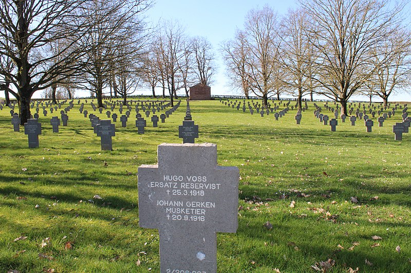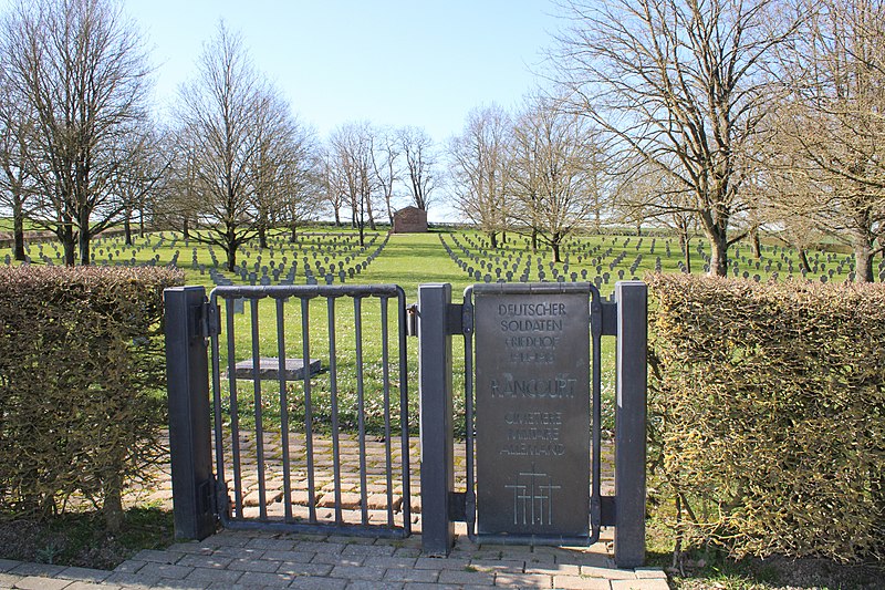 Le cimetière militaire allemand de Rancourt se trouve sur la commune de Rancourt, dans le département de la Somme. Implanté dans la vallée, il longe la départementale 20 en direction de Combles et se situe à environ 200 mètres de la nécropole nationale et du cimetière britannique de Rancourt. Organisé par les autorités françaises en 1921, il figure parmi les plus grands cimetières allemands en France. Il rassemble 11 422 corps ou restes de soldats allemands, dont 3 930 inhumés en tombes individuelles et 7 492 déposés dans un ossuaire. Selon les sources, l'entretien des cimetières fut transféré à la charge de l'État allemand en 1926, le Volksbund Deutsche Kriegsgräberfürsorge, créé en 1919, prenant en charge la gestion en 1929. Le symbole adopté en 1926 pour signaler les nécropoles allemandes se compose de quatre petites croix noires surmontées d'une croix plus grande. La chapelle en brique du cimetière a été inaugurée le 17 septembre 1933 ; on y accède par une grille en fer forgé et un bas-relief intérieur évoque le deuil. L'oratoire du cimetière est inscrit au titre des monuments historiques par arrêté du 14 septembre 2016. Le site se caractérise par des plantations d'arbres et de haies, des portails en fer forgé, des bordures de pierre pour les ossuaires et de grandes croix latines noires marquant les sépultures. Ces éléments constituent l'ornementation sobre des cimetières militaires allemands. Le cimetière témoigne de la présence et des pertes allemandes sur le front de la Somme et de la manière dont y ont été organisées les sépultures collectives et individuelles.