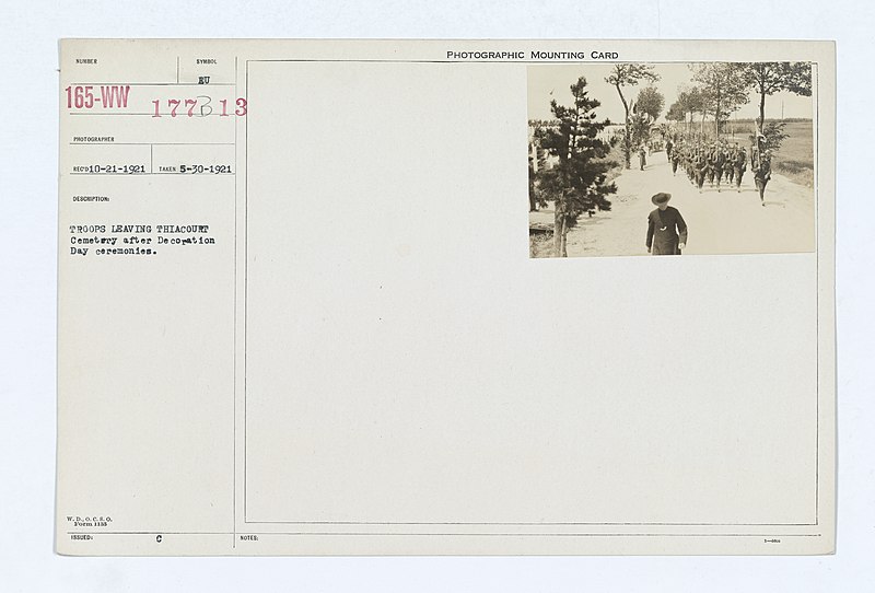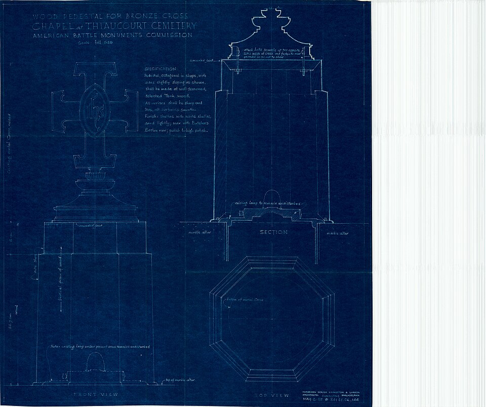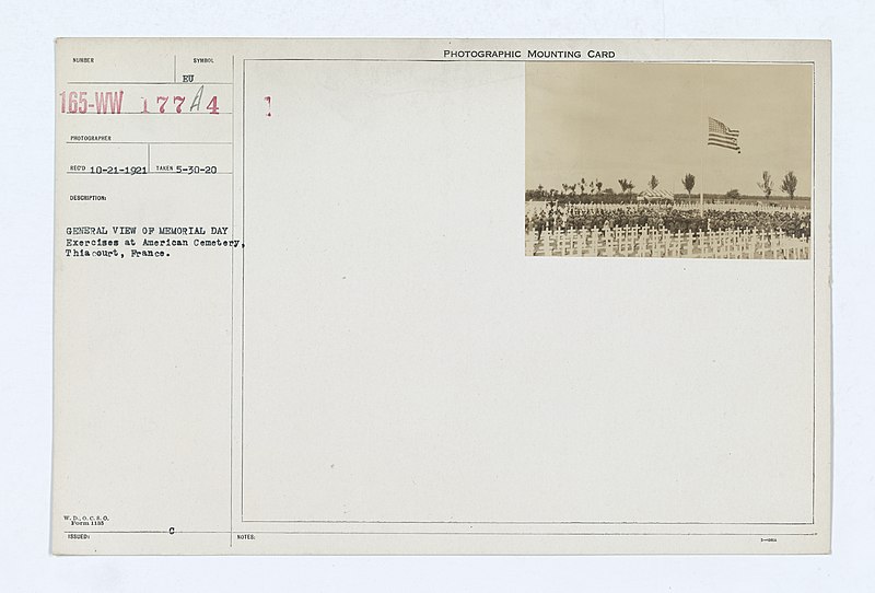 Le cimetière américain illustre, par son unité décorative et son architecture, la manière dont l'État américain a traité la mémoire du soldat. Le cimetière américain du Saillant de Saint‑Mihiel (World War I St. Mihiel American Cemetery and Memorial) est un site militaire de la Première Guerre mondiale implanté sur la commune de Thiaucourt‑Regniéville, en Meurthe‑et‑Moselle. Il accueille les sépultures de 4 158 soldats américains. Les noms de 284 soldats dont le corps n’a jamais été retrouvé sont gravés sur les deux murs du mémorial. Le site a été inscrit à l’inventaire supplémentaire des monuments historiques par arrêté du 28 décembre 2017. Il se situe en vis‑à‑vis du cimetière militaire allemand de Thiaucourt et fait partie d’un ensemble mémoriel qui comprend notamment la butte de Montsec, monument américain commémoratif de la bataille du Saillant de Saint‑Mihiel. Des ressources documentaires et iconographiques (Wikimedia Commons, base Mérimée, notices d’autorité, site de l’American Battle Monuments Commission) permettent d’approfondir les informations le concernant.