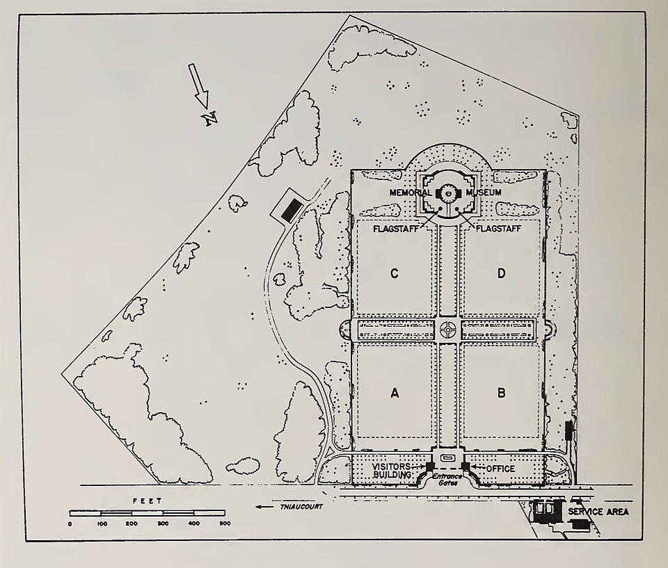Le cimetière américain, tel que figuré sur le plan annexé à l'arrêté (cad. A 17) : inscription par arrêté du 28 décembre 2017