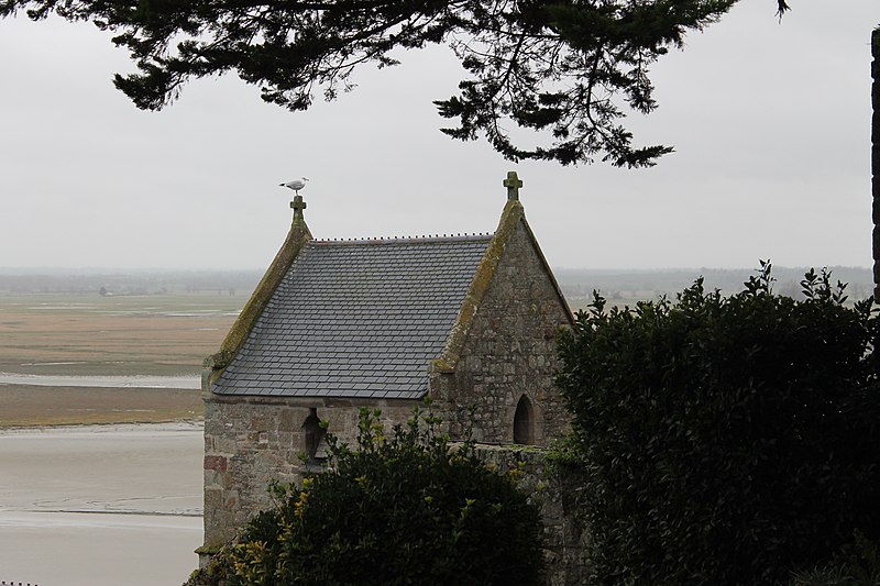 L'église Saint-Pierre est un édifice catholique implanté sur la commune du Mont-Saint-Michel, dans la Manche, en Normandie. Son état actuel résulte d'aménagements des XIVe, XVe et XVIIe siècles et, depuis la fin du XIXe siècle, elle assure à la fois la fonction d'église paroissiale et celle de sanctuaire de pèlerinage pour le culte de saint Michel. Elle relève du diocèse de Coutances et Avranches, du doyenné de l'Avranchin et de la paroisse Notre-Dame-de-la-Paix de Pontorson. L'église est enserrée dans le village, sur le flanc est du rocher : elle s'appuie à l'ouest contre le rocher, borde le cimetière au sud et communique à l'est avec la Grand'rue par son abside en encorbellement qui franchit une venelle voûtée. Selon la tradition et une charte de 1022, elle aurait été fondée au VIIIe siècle et est dédiée à saint Pierre. De la période romane subsistent notamment des piliers à impostes à l'entrée du chœur. Avant la fin du XIVe siècle, le vaisseau central avait été doublé au sud par un vaisseau latéral et l'édifice présentait alors, d'après une enluminure des Très Riches Heures, un clocher peigne au-dessus du pignon oriental. Dans la seconde moitié du XVe siècle, les absidioles du transept furent remplacées par des chapelles à chevet plat et une tour de clocher fut édifiée au sud ; à la fin du XVIe ou au début du XVIIe siècle, le chœur fut agrandi par la construction d'une abside à pans coupés. Le culte de saint Michel fut transféré de l'abbatiale à l'église paroissiale le 4 novembre 1886, faisant de l'édifice un sanctuaire de pèlerinage. Construite en granite, l'église présente une nef à vaisseau central doublée au sud, un chœur à travée unique et une abside à pans coupés ; l'entrée principale se fait par le bras nord du transept, qui ouvre sur une chapelle dédiée à saint Jean, tandis que le vaisseau latéral aboutit à une chapelle dédiée à la Vierge. Contre le mur sud du vaisseau latéral se dresse, hors d'œuvre, une tour de clocher coiffée d'une toiture en bâtière ; son rez-de-chaussée, qui ouvrait à l'origine vers le cimetière, fut condamné et transformé à la fin du XIXe siècle en chapelle dédiée à saint Michel, unique chapelle voûtée en pierre de l'église. Les charpentes lambrissées ont été refaites au début du XXe siècle (1928-1929 pour la nef, 1931 pour la tour, 1936-1937 pour le chœur et la chapelle sud) et les couvertures restaurées en ardoises d'Angers ; une nouvelle campagne de restauration a été lancée en 2003. L'ensemble du mobilier a été répertorié par la Conservation des antiquités et objets d'art de la Manche. L'église conserve des fonts baptismaux du XIVe siècle, classés dès 1907, et un maître-autel du XVIIe siècle inscrit en 1990 ; la cuve baptismale est un monolithe polygonal en granit orné d'arcatures trilobées. La chapelle Saint-Michel abrite un autel en feuilles d'argent repoussé sur âme de bois, œuvre de l'orfèvre Jean-Alexandre Chertier, transféré en 1895 et inscrit depuis 1976. Divers éléments du mobilier du XIXe siècle subsistent, tels qu'un aigle-lutrin en chêne, deux sièges de célébrants armoriés et un Prie-Dieu armorié portant notamment les armoiries de l'abbaye. La statuaire comprend des sculptures en bois de saint Aubert et saint Roch (XVIIe siècle), une statue monumentale de saint Michel en lames d'argent sur âme de bois attribuée probablement à Jean-Alexandre Chertier et distinguée par une décision pontificale en 1875, ainsi que plusieurs œuvres sur pierre et albâtre des XVe et XVIe siècles. La couronne initiale, attribuée à l'orfèvre Mellerio et réalisée avec des bijoux offerts par les fidèles, fut volée en 1906 ; la statue porte aujourd'hui une couronne de verroterie rappelant la distinction de 1877. Parmi les autres œuvres figurent une sainte Catherine d'Alexandrie en albâtre de Nottingham (XVe siècle), un groupe représentant sainte Anne et la Vierge (fin XVe-début XVIe siècle), une statue de l'apôtre Pierre (début du XVIe siècle), une grande Vierge à l'Enfant en pierre calcaire polychromée et une statue de saint Étienne (XVe siècle), la plupart inscrites au titre des monuments historiques. Le Christ en croix en bois peint, attribué au sculpteur Pierre Loudel de Rouen, fut commandé en 1645 pour remplacer le christ de la poutre de gloire. Le maître-autel porte une peinture représentant la Vocation de saint Pierre, adaptée au format du retable et identifiée comme un modèle gravé d'après un original du XVIIIe siècle ; d'autres tableaux et peintures datés du XVIIe au XIXe siècle se répartissent dans la tribune et la nef, et des vestiges de peintures murales polychromes du XVe siècle subsistent dans la chapelle sud. Le mur ouest de la chapelle Saint-Michel conserve des lambris à armoiries du XIXe siècle et le sanctuaire possède une collection de bannières offertes par des pèlerins du troisième quart du XIXe siècle. La tour de clocher est équipée depuis 1964 d'un carillon qui joue l'air « Saint-Michel à votre puissance ». Le cimetière et son enceinte sont classés depuis 1934 : réparti sur deux terrasses et d'une superficie réduite aujourd'hui, il comprend un jardin du souvenir, expose plusieurs dalles funéraires et conserve une croix de granite du XVIe siècle inscrite, ainsi qu'un monument aux morts de la Première Guerre mondiale portant huit noms. Des fouilles réalisées en 2017 ont mis au jour un cimetière médiéval autour de l'église ; l'étude des sépultures sauvegardées devrait fournir un aperçu de la population du village avant le XIIIe siècle. L'ensemble de l'église est classé au titre des monuments historiques par l'arrêté du 15 mars 1909, classement motivé par son intérêt historique et la volonté de préserver son intégrité extérieure.