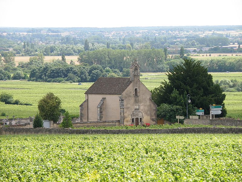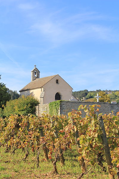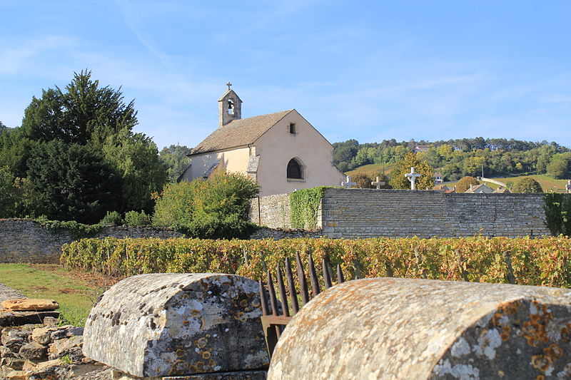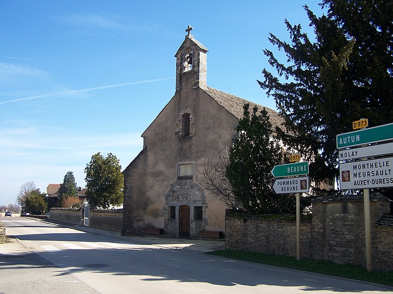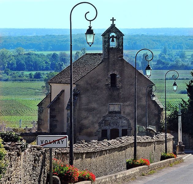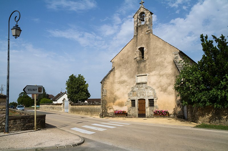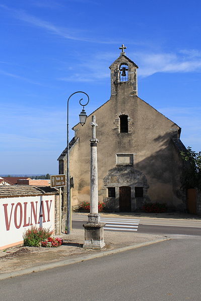 L'inscription en lettres gothiques au-dessus de l'entrée indique que les habitants de Volnay ont fait construire cette chapelle en 1540. Le portail d'origine a été remplacé par deux fenêtres encadrant une porte, comme en témoigne la date 1744 gravée sur le linteau en arc segmentaire de l'entrée. Le conseil municipal décida le 12 mai 1861 d'établir un nouveau cimetière autour de la chapelle et approuva le mois suivant le devis de l'architecte Félix Goin.