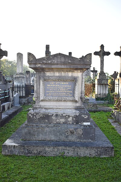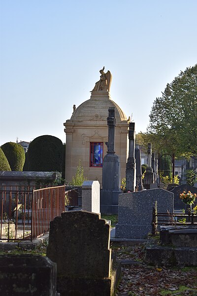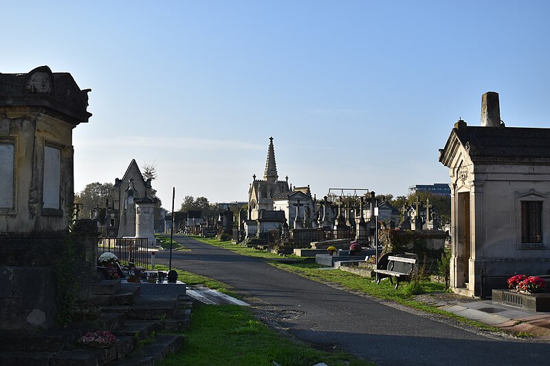 Le cimetière de la Chartreuse, le plus ancien et le plus vaste de Bordeaux, occupe 25,7 hectares. Il a été aménagé à la fin du XVIIIe siècle sur les anciens jardins du couvent des Chartreux. Le quartier, autrefois marécageux, fut asséché en 1610 par le cardinal-archevêque François de Sourdis avec l’aide des moines chartreux ; la chartreuse Notre-Dame-de Miséricorde qu’il fit bâtir n’a conservé aujourd’hui que la porte d’entrée du cimetière. On y découvre une grande variété de monuments funéraires du XIXe siècle, parmi lesquels plusieurs pyramides et de très grands caveaux. Le cimetière a été classé au titre des monuments historiques le 8 avril 1921. Le monument aux morts de Bougie (aujourd’hui Béjaïa), ville jumelée à Bordeaux en 1956, y a été transféré vers 1968 ; il se compose de vingt-quatre plaques en bronze qui portent les noms des morts des guerres de 1914-1918 et 1939-1945. Plusieurs personnalités y sont inhumées ou commémorées : le maréchal de France Alphonse d’Ornano, le peintre Francisco Goya (dont le corps repose aujourd’hui à Madrid mais qui a un monument dans le cimetière), le conventionnel Charles‑François Delacroix, le général Élie Papin et le cœur du général Moreau. On y trouve aussi de nombreux artistes et intellectuels, notamment les peintres Louis Cabié, Louis Dewis, Pierre Lacour, Maxime Lalanne et Eugène Vergez, l’écrivaine Flora Tristan, le peintre néo‑classique Léon Pallière, l’architecte et graveur Léo Drouyn, ainsi que les sculpteurs Amédée Jouandot et Dominique Fortuné Maggesi. Parmi les acteurs, musiciens et hommes de lettres inhumés figurent Ulysse Despeaux, Pierre Ligier, Marcel Tiber, Charles Calendini, Germaine Bovie, Jacques Dejean, Aurélien Scholl et le journaliste-historien Maurice Ferrus, auteur d’une monographie sur le cimetière en 1911. Le site abrite également des personnalités politiques et religieuses comme Gustave Curé, Jean‑Fernand Audeguil, Alexandre‑Étienne Simiot, Noël Lacroix et le bienheureux Guillaume‑Joseph Chaminade, ainsi que des médecins et professeurs — Adolphe (1842-1899), Timothée (1850-1905) et Ferdinand Piéchaud (1890-1958). Sont également présents les résistants Félix Jaquemet et Henri Labit, Compagnons de la Libération. Le cimetière est desservi par la ligne A du tramway de Bordeaux (stations Gaviniès, Hôtel de Police et Saint‑Bruno – Hôtel de Région). Parmi les monuments remarquables figurent la sépulture Catherineau, le monument à Goya, la tombe de Charles Delacroix et la tombe du bienheureux Guillaume‑Joseph Chaminade.
