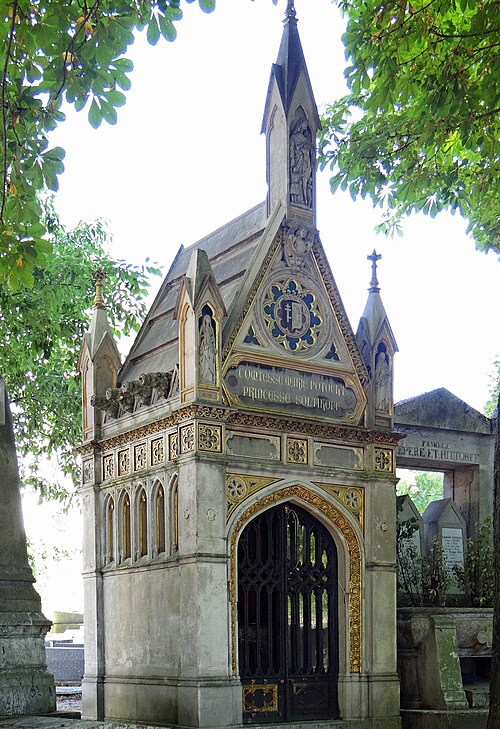 Le cimetière du Nord, communément appelé cimetière de Montmartre, est situé dans le 18e arrondissement de Paris, au 20 avenue Rachel ; il couvre environ 11 hectares et constitue, avec le cimetière des Batignolles, le troisième plus vaste cimetière intra-muros après le Père-Lachaise et Montparnasse. Le site occupe les anciennes carrières de gypse de Montmartre, matériau largement utilisé pour le plâtre dans la capitale. Pendant la Révolution, les cimetières furent considérés comme biens nationaux par la loi du 15 mai 1791 ; le cimetière paroissial de Montmartre, dit cimetière du Calvaire, devint propriété communale puis fut fermé, ce qui est probablement à l'origine du « grand cimetière du Nord ». Après l’arrêt de l’exploitation des carrières, ces terrains servirent de fosses communes, notamment pour les Gardes suisses tués au palais des Tuileries le 10 août 1792. La nécropole porta successivement des appellations telles que Grandes-Carrières, Barrière-Blanche, cimetière sous Montmartre ou Champ du Repos, avant de devenir le cimetière de Montmartre, et accueillit des Parisiens ne pouvant être inhumés dans les limites de la ville, souvent dans des conditions déplorables. En septembre 1798, la Ville acheta un terrain d’un hectare pour y établir un cimetière plus digne, mais cet emplacement devint rapidement insuffisant et fut abandonné faute d’extension possible. Entre 1818 et 1824, la Ville acquit de nouveaux terrains ; l’architecte Étienne-Hippolyte Godde organisa l’aménagement et le cimetière fut inauguré le 1er janvier 1825. En 1847, la municipalité acheta des terrains supplémentaires d’une superficie de 9 hectares situés entre les rues Étex, Coysevox, Marcadet et Eugène-Carrière, partie qui fut toutefois abandonnée en 1879. Le village de Montmartre fut intégré dans les limites de Paris en 1860. En 1867, le préfet Georges Eugène Haussmann proposa le prolongement de la rue Caulaincourt à travers le cimetière, projet très contesté ; la pétition contre le percement fut rejetée, mais le tracé fut modifié pour prévoir un pont surplombant le site. Les travaux du pont Caulaincourt débutèrent en 1887 et le pont métallique fut inauguré par le préfet Eugène Poubelle le 16 décembre 1888 ; il enjambe aujourd’hui le cimetière, fait quasi unique en France. Le cimetière de Montmartre compte plus de 20 000 concessions et accueille environ 500 inhumations par an. La chapelle Fournier, représentative du style antiquisant inspiré par les découvertes archéologiques et par le vocabulaire religieux funéraire, se distingue par sa monumentalité, la qualité de son architecture et de sa sculpture ; elle a été inscrite au titre des monuments historiques par arrêté du 20 décembre 2013. La Ville de Paris a lancé en 2012 une étude pour renforcer la protection paysagère et patrimoniale du cimetière ; l’Atelier parisien d’urbanisme a publié en décembre 2013 une étude en vue d’un classement comparable à celui du Père-Lachaise. Deux édifices ont bénéficié de mesures de protection : la chapelle Fournier, inscrite en 2013 et attribuée à Pierre-Léonard Laurecisque, et la chapelle Potocki, construite vers 1845 par Jacques Ignace Hittorff et classée en 2014 ; ces protections instaurent une zone de sauvegarde de 500 mètres autour des monuments concernés. La tombe la plus visitée est celle de Dalida, décorée d’une sculpture en taille réelle et de rayons dorés, souvent abondamment fleurie. Le cimetière apparaît également dans la culture : Guy de Maupassant y situe sa nouvelle Les Tombales (1891), François Truffaut y a tourné des scènes pour Les Quatre Cents Coups (1959) et L’Amour en fuite (1979), et Christophe Honoré y place une scène dans Plaire, aimer et courir vite (2018).