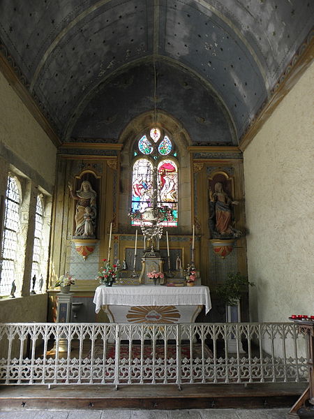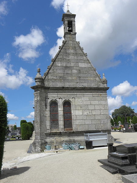 Autrefois, le cimetière entourait l'église ; la chapelle a été réédifiée à son emplacement actuel. De plan rectangulaire, elle se distingue par deux pignons et un clocheton. Sa façade, protégée par un petit porche, est ornée de deux colonnes et d'un fronton ; quatre baies cintrées, séparées par des cariatides, y sont ouvertes.