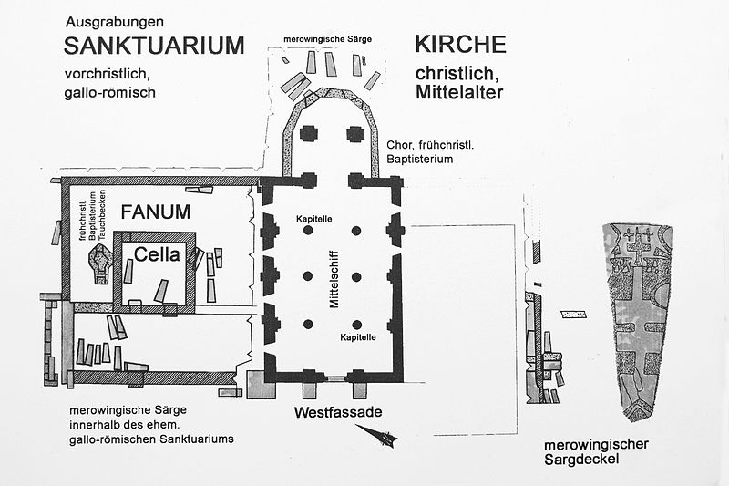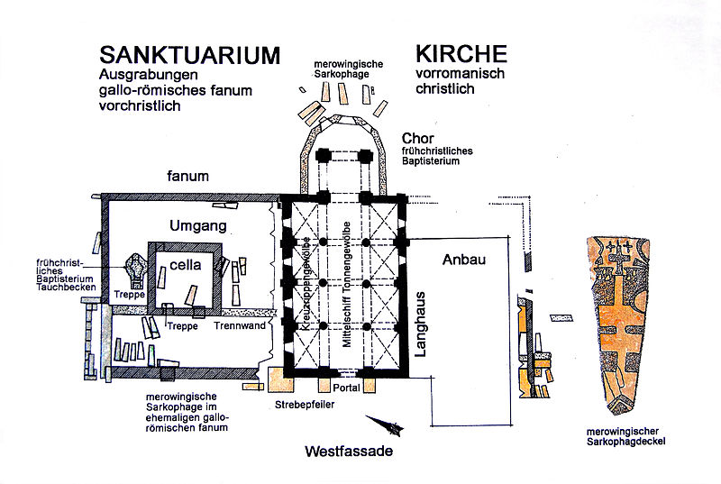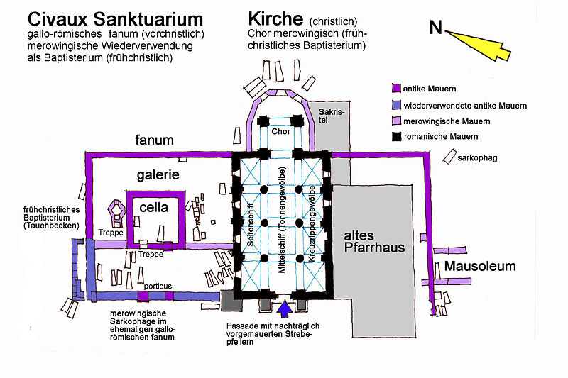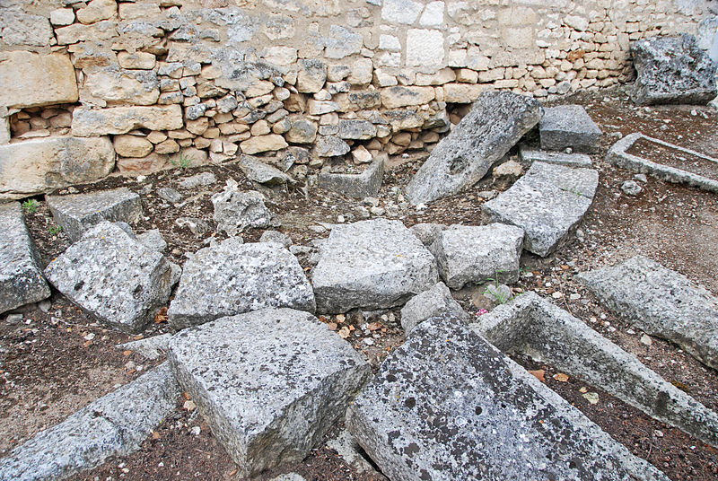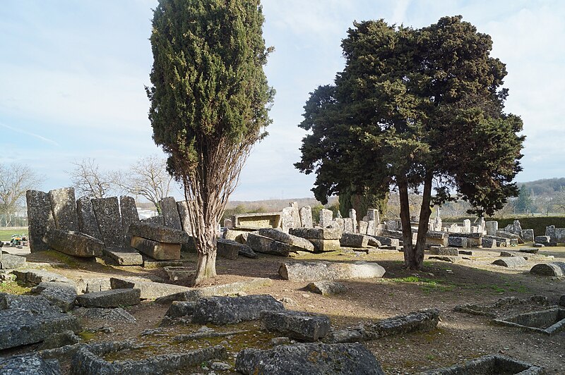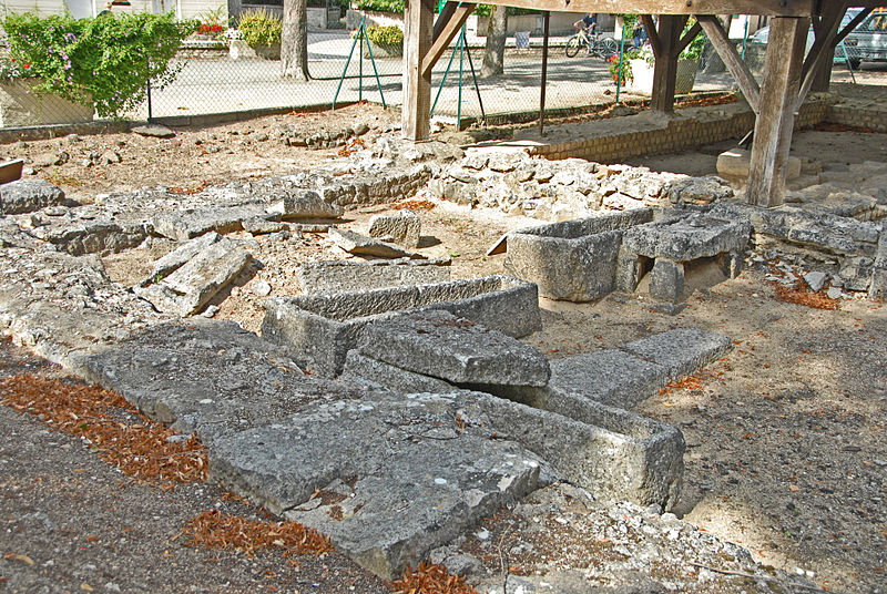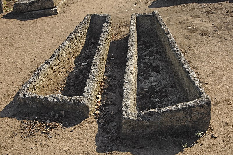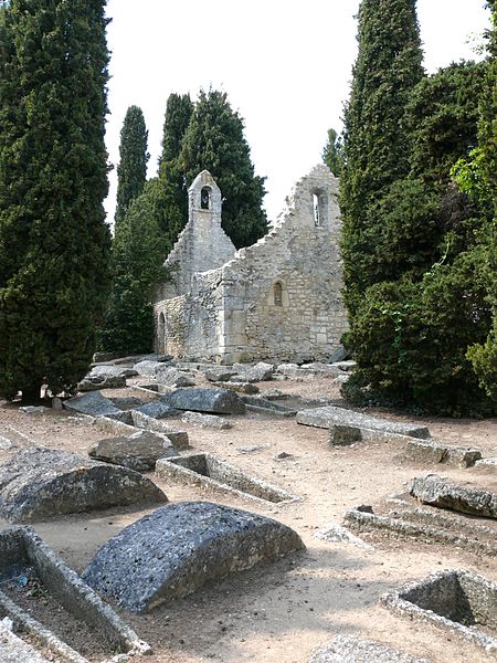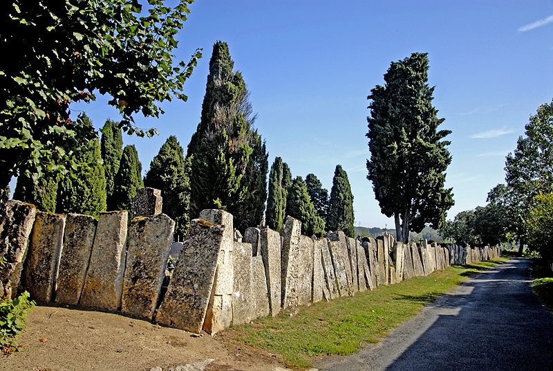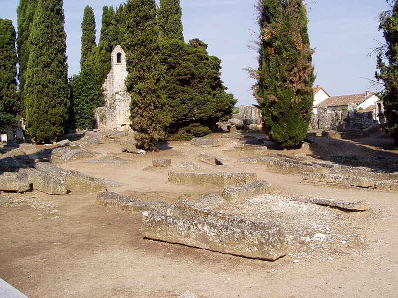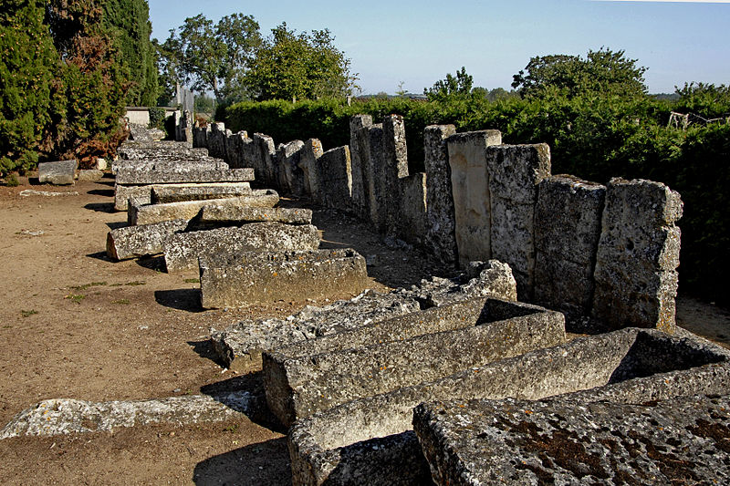 Le cimetière gallo-romain de Civaux (Vienne) présente plusieurs niveaux de sépultures et divers types d'inhumations. Les plus anciens sont d'époque romaine, certains coffrages réutilisent des fragments de colonnes romaines comme couvercles, d'autres tombes sont d'époque médiévale. De nombreux couvercles ont été réemployés pour former la clôture de l'actuel cimetière, et d'autres lieux d'inhumation ont été découverts aux alentours. On dénombre actuellement environ 16 000 sarcophages à Civaux. La nécropole mérovingienne de Civaux, située sur ce même site, a été utilisée comme cimetière pendant plus de 1 700 ans et conserve plusieurs centaines de sarcophages mérovingiens datés de 500 à 750 apr. J.-C., certains en place et d'autres disposés en rangées. L'originalité de la nécropole tient notamment à sa clôture composée de couvercles de sarcophages dressés à la manière de menhirs, structure déjà attestée au XVIIIe siècle. Plusieurs couvercles portent des décors — poisson, croix, chrisme — ainsi que des inscriptions chrétiennes telles que Maria ou Pientia. La nécropole a été classée au titre des monuments historiques en 1923. Le site est ouvert gratuitement au public ; le musée archéologique de Civaux fournit des informations, des audioguides et des visites guidées. Parmi les documents visuels figurent une gravure du XVIIIe siècle et des images montrant la clôture formée par les couvercles de sarcophages.