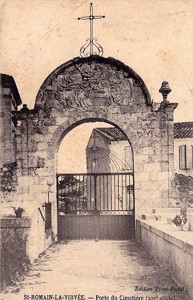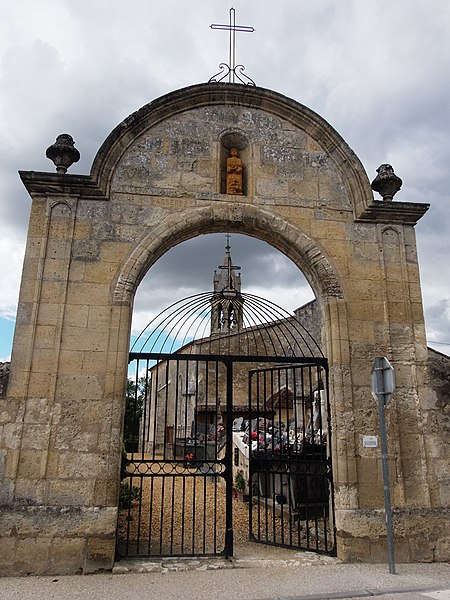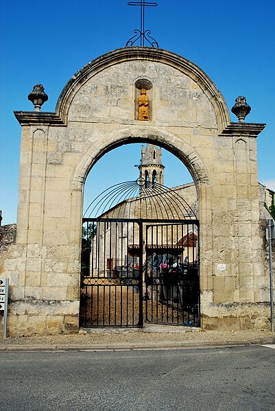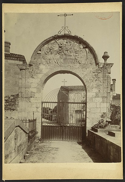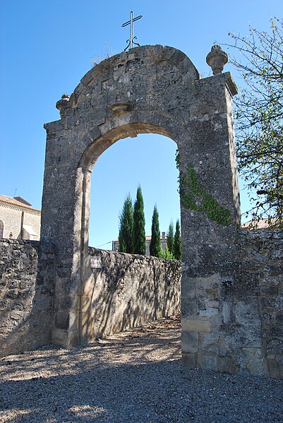 Deux porches d'entrée, placés à l'est et à l'ouest du cimetière, datent de la fin du XVIIe siècle. Le portique ouest présente, sur sa face est, une sculpture intégrée à un fronton circulaire surmonté d'une croix en fer ; des pots à feu flanquaient ce fronton, dont l'un a disparu. Le portique est se distingue par le dessin de son arc et le profil de ses moulures. Le fronton du portique est porte, sur sa face est, une niche à statue qui porte une inscription ; l'autre côté est orné d'un bas-relief détérioré.