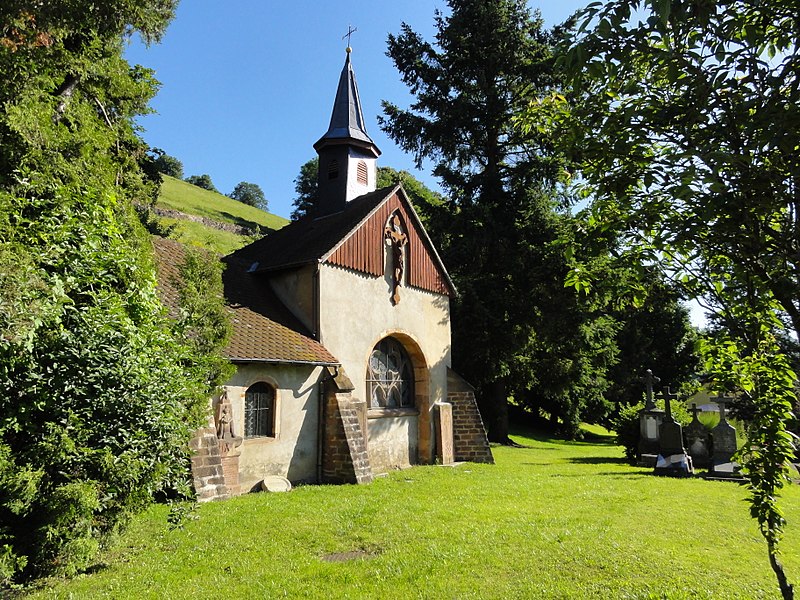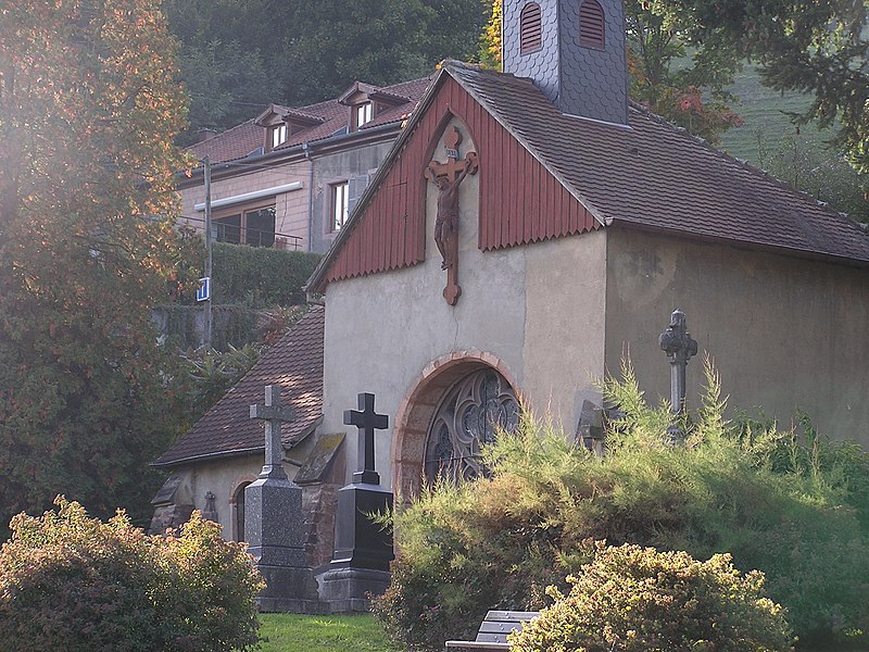Cet édifice est le vestige de la première église catholique du côté lorrain de la ville, remontant sans doute au XVe siècle et dédiée à sainte Marie‑Madeleine. Il était entouré d'un cimetière aujourd'hui supprimé, mais quelques monuments funéraires ont été conservés autour de la chapelle. Devenue trop exiguë au XVIIIe siècle, l'église a été partiellement détruite en 1756 et remplacée par la nouvelle église Sainte‑Madeleine, rue du Maréchal‑de‑Lattre‑de‑Tassigny. L'ancienne construction a conservé son chœur voûté d'ogives, auquel a été accolé un corps de bâtiment plus bas servant actuellement de nef. La restitution des formes du premier bâtiment reste problématique : une ouverture dans le mur sud‑est, composée d'un grand arc en plein cintre muré dans sa partie inférieure, apparaît comme une porte vers l'extérieur mais joue aujourd'hui le rôle d'une fenêtre. Cette ouverture est fermée par un quadrilobe entouré de quatre lancettes néo‑gothiques. Le toit du chœur est perpendiculaire à celui de la nef actuelle, alors qu'à l'intérieur on perçoit un vaisseau unique suivant le même axe. L'édifice a été restauré en 1888‑1889, son extérieur a été repeint en 1980 et les peintures monumentales du chœur ont fait l'objet d'une restauration en 1992 qui les a dénaturées. Le cimetière est situé rue du Docteur‑Muhlenbeck à Sainte‑Marie‑aux‑Mines, dans le département du Haut‑Rhin. L'édifice est inscrit au titre des monuments historiques depuis 1934 ; des références figurent sur les portails du Haut‑Rhin et des monuments historiques français.