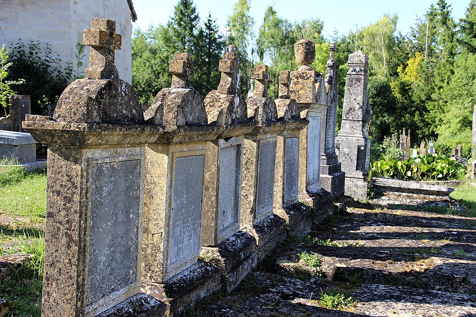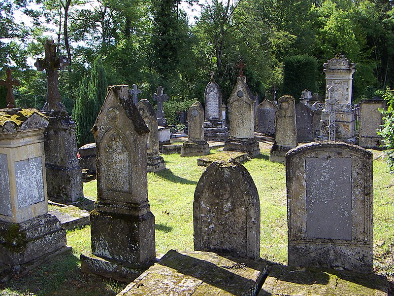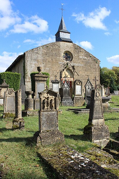 Le cimetière entoure l'ancienne église paroissiale Saint-Hilaire, qui fut abandonnée au profit d'une nouvelle église construite dans le village au cours de la première moitié du XIIIe siècle en raison de l'éloignement du lieu de culte primitif. Il conserve un ossuaire, des édicules liés au culte des morts et de nombreux tombeaux datés du XVe au XXe siècle, qui en font un des hauts lieux de l'art funéraire en Lorraine. Aux alentours de 1875, les tombeaux en plein air les plus anciens et les plus intéressants furent mis à l'abri dans la chapelle par le curé Frignet et le commandant Pognon, maire du bourg, à la demande d'un inspecteur des monuments historiques. En 1905 et 1907, les dalles funéraires, certains tombeaux et les bénitiers conservés dans la chapelle furent classés au titre des objets aux monuments historiques. En 1909, d'autres éléments du cimetière — tombeaux, statues, bas-reliefs, inscriptions, fragments de sculpture ainsi que les statues du Bon Dieu de Pitié et de la Vierge de Pitié — furent également classés au titre des objets. En 1931, le cimetière lui-même, avec son mur de clôture, la chapelle Saint-Hilaire, l'ossuaire, la maison du gardien et l'ensemble des tombeaux, bénitiers et débris sculptés présents, fut classé au titre des monuments. Plusieurs tombeaux qui étaient encore dans le cimetière lors de l'enquête de 1974 ont été déposés dans la chapelle au cours des dernières années.