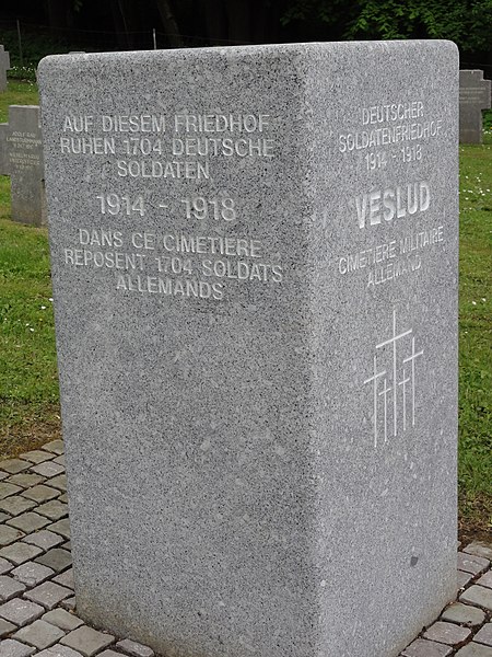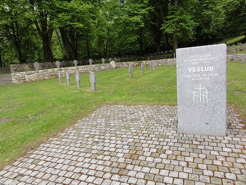 Le cimetière militaire allemand de Veslud, dans l'Aisne, est un site de la Première Guerre mondiale établi en 1917 en prolongement du cimetière communal. Il a été créé par les Allemands après l'offensive française du 16 avril 1917 sur le Chemin des Dames et sa mise en place est très certainement liée à la présence, à proximité, d’un important poste de secours ou d’un hôpital de campagne. On y accède par un escalier situé au fond du cimetière communal ; la réalisation de cet aménagement et des terrasses a été confiée à un officier allemand qui employa de la dynamite pour tailler les escaliers et les plateaux. Le site rassemble 1 704 corps inhumés en tombes individuelles matérialisées par des croix en pierre, dont six non identifiés. En 1979 toutes les tombes ont été refaites en pierre : des croix latines pour les catholiques et les protestants, et des stèles pour les défunts juifs. Le cimetière a également été réaménagé dans les années 1930, puis a fait l’objet d’importants travaux entre 1980 et 1987. Son aménagement intérieur se caractérise par des terrasses, un cercle dominé par une grande croix et un carré funéraire, offrant une organisation originale du lieu. Un imposant monument aux morts dédié aux « braves héros » de la 50e division d'infanterie, conçu par l’architecte Scholzen de Düsseldorf, occupe la partie haute du site et est parfaitement conservé. Le cimetière se distingue par son environnement remarquable, la préservation de stèles originelles et la conservation de ce monument aux morts. Il a été inscrit au titre des monuments historiques en 1999.