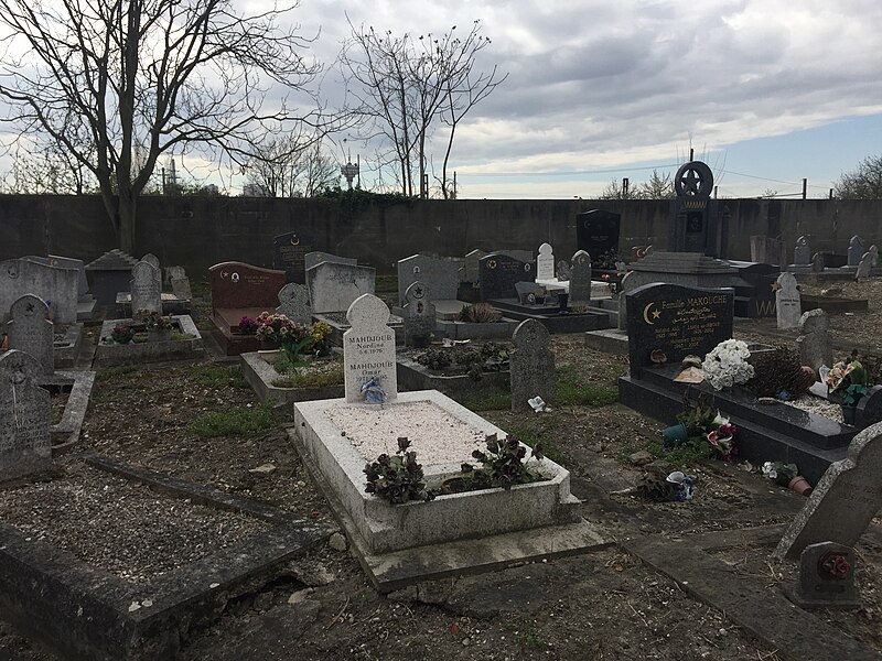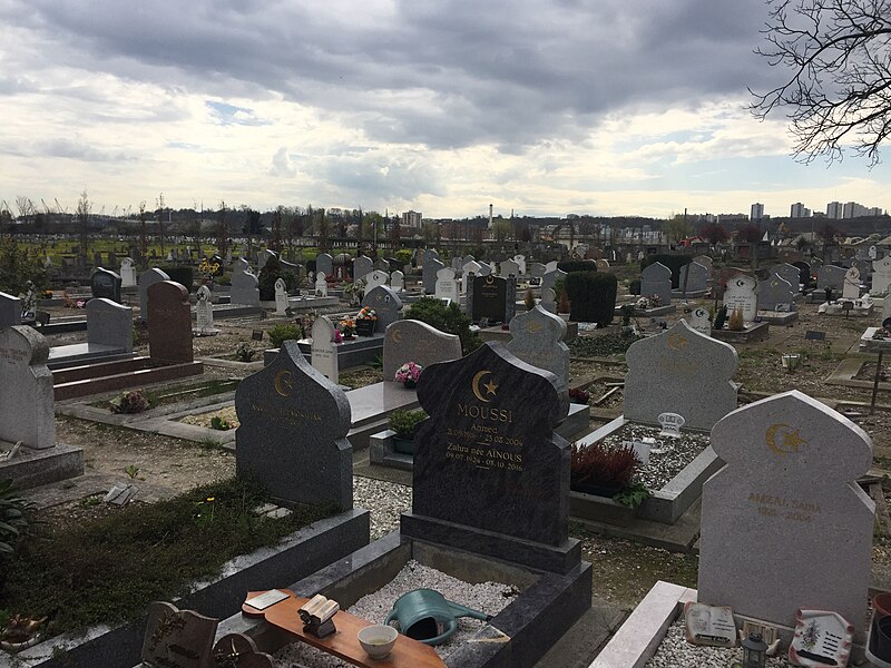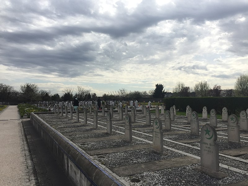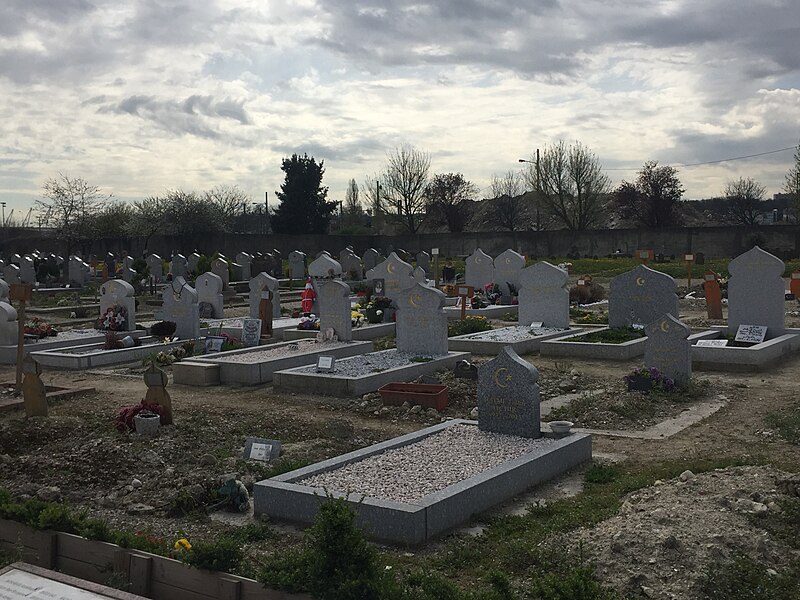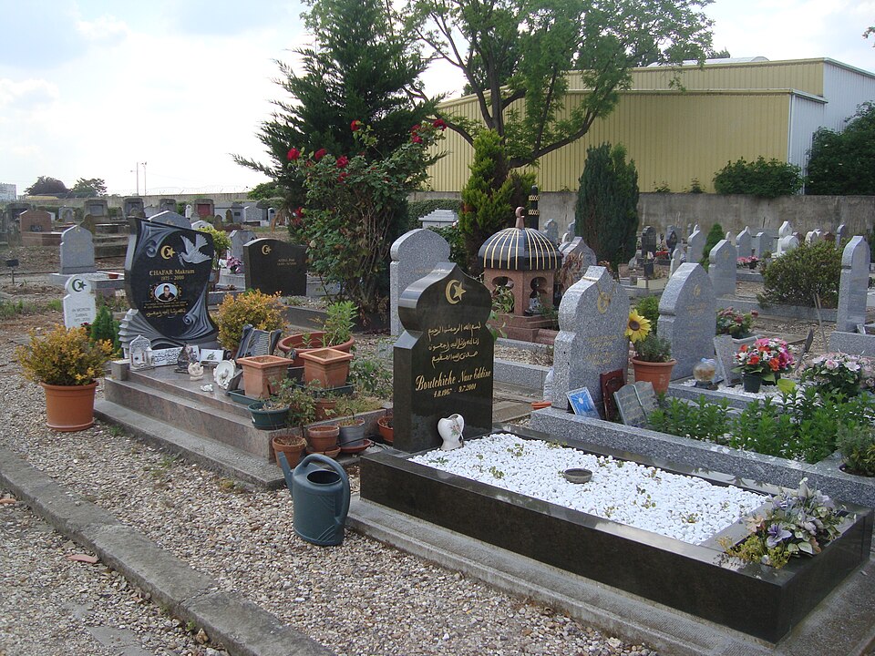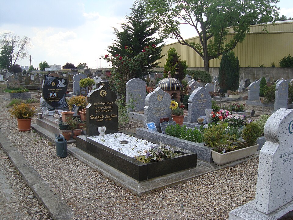Le cimetière musulman de Bobigny (Seine‑Saint‑Denis) est, avec celui de Strasbourg, l'unique cimetière entièrement réservé aux défunts musulmans de France métropolitaine. Sa création remonte à un décret présidentiel du 4 janvier 1934 et il est établi comme annexe de l'hôpital dit franco‑musulman, ouvert en 1935 et aujourd'hui Hôpital Avicenne de Bobigny. Le cimetière a été inauguré en 1937 pour accueillir principalement les personnes décédées à l'hôpital. Conçu par l'architecte Édouard Crevel, il s'inscrit dans un style inspiré de l'architecture dite mauresque mise en valeur lors de l'Exposition coloniale de 1931 et évoque murs blancs, toits plats, tuiles vertes, portes en bois, éléments métalliques et plantations méditerranéennes. Le porche d'entrée, les deux pavillons (bureau et pavillon de l'imam), la salle de prière de plan carré surmontée d'une coupole dorée, le sol de leur parcelle et le carré militaire ont été inscrits au titre des monuments historiques par arrêté du 25 janvier 2006 en raison de leur intérêt historique et architectural. L'ensemble s'inscrit, avec la Grande mosquée de Paris et l'hôpital franco‑musulman, parmi les réalisations commémoratives liées aux soldats coloniaux mobilisés pendant la Première Guerre mondiale. Le cimetière est implanté sur le lieu‑dit de la Haute Borne, alors zone maraîchère proche du canal de l'Ourcq, devenue aujourd'hui majoritairement industrielle. L'entrée par un porche ouvre sur un axe conduisant à la salle de prière ; la résidence du gardien l'encadre, une grille donne accès au reste du cimetière et une seconde issue mène à un parking. Il contient environ 7 000 tombes orientées vers le sud‑ouest, de manière que la dépouille, placée sur le flanc droit, regarde La Mecque. À la fin du XXe siècle, de nombreuses concessions perpétuelles abandonnées ont conduit à l'instauration d'un régime de concessions limitées et au transfert des dépouilles abandonnées dans un reliquaire déposé dans l'ossuaire proche du carré militaire. Ces transferts ont suscité des contestations familiales en 1998‑1999, au cours desquelles l'imam Ramdame Douhi a été agressé, mais la remise en état du lieu a ensuite trouvé un large consensus. Le profil des personnes inhumées a évolué : si le cimetière accueillait autrefois des défunts venus des colonies à défaut de rapatriement, il accueille aujourd'hui surtout des personnes nées en France qui choisissent de rester au pays. L'architecture des tombes, d'abord minimaliste, a évolué vers des réalisations marbrières et un fleurissement marqué lors de l'Aïd et de la Toussaint ; depuis les années 1970 existent également des tombes mixtes où époux et épouse reposent ensemble. Certaines sépultures présentent des formes caractéristiques, notamment des tombes d'origine océanienne ornées d'un petit escalier à cinq marches, et cinq carrés ouverts entre 1940 et 1971 sont réservés aux enfants décédés en bas‑âge. Le cimetière comprend un carré militaire qui a reçu, entre 1944 et 1954, les dépouilles d'une soixantaine de soldats de l'armée française, dix‑sept d'entre eux ayant la mention "Mort pour la France". Parmi ces militaires figurent des combattants de la 2e division blindée et de la 1re armée, cités à l'ordre pour leur engagement, tels que Derrar el Hadj, Mimoun El Hadj et Mohamed Ben Salah. La conservation et l'entretien du cimetière ont été longtemps assurés par l'hôpital puis, après son intégration à l'AP‑HP en 1962 et une période de dégradation, la gestion a été transférée en 1996 au syndicat intercommunal groupant Aubervilliers, La Courneuve, Drancy et Bobigny. Depuis ce transfert, les inhumations sont réservées aux personnes de confession musulmane domiciliées dans ces quatre communes ou ayant des liens familiaux avec des défunts déjà inhumés, faisant de fait de Bobigny le carré musulman du cimetière intercommunal situé à deux kilomètres. Ce lieu porte également plusieurs sépultures remarquables, parmi lesquelles Ahmed Merabet, Louafi Bouguera, Mohamed Adjani, la mère de l'humoriste Smaïn, des personnalités politiques et religieuses du Caucase et du monde arabe, ainsi que des membres de la famille ottomane, notamment la princesse Selma Hanımsultan Raouf et le prince Ahmed Nureddin. Le cimetière a enfin servi de décor au film Les Hommes libres d'Ismaël Ferroukhi, tourné en 2010.