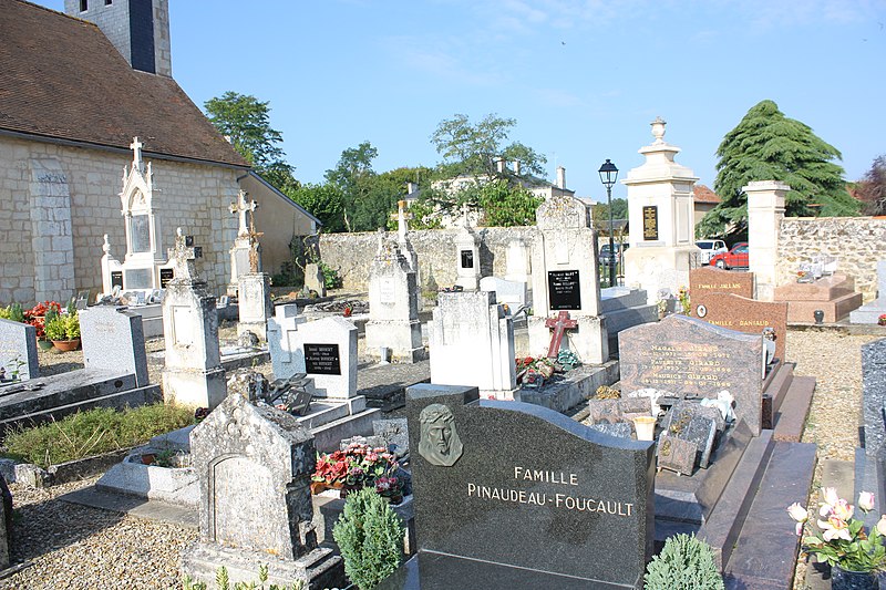 Les deux cimetières qui entourent encore l'église sont ceux de Sèvres-Anxaumont et de Bonnes. Dans celui de Sèvres-Anxaumont se trouve la croix la plus ancienne, datée du XIVe siècle et classée monument historique ; celle de Bonnes n'est pas antérieure au XIXe siècle. La croix de l'ancien cimetière de Tercé a été conservée près de l'église, tandis qu'une nouvelle croix a été érigée dans le cimetière actuel au XIXe siècle. Le socle de la croix de Pouillé porte la date 1729, mais la croix aux extrémités droites a été refaite au XIXe siècle. Ces croix sont difficiles à dater : les socles et parfois les fûts peuvent être des réutilisations d'éléments anciens, comme à La Chapelle-Moulière, Lavoux, Liniers et Saint-Julien-l'Ars, alors que les parties plus fragiles ont été remplacées.