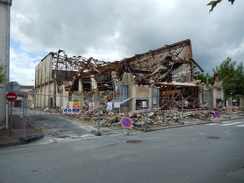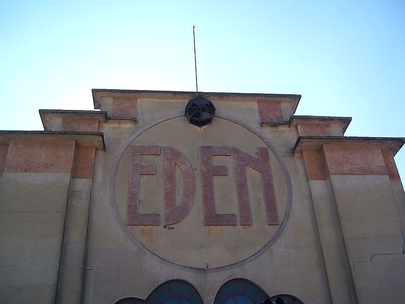 Le cinéma L'Eden est un établissement de style Art déco situé à Saint-Jean-d'Angély, en Charente-Maritime. Construit en 1931 par l'architecte angérien André Guillon, spécialisé dans les salles de cinéma entre les deux guerres, il a été inauguré le 20 septembre 1931. La façade présentait deux bas-reliefs d'inspiration Art déco illustrant les arts et les sciences du cinéma : l'un composés de bobines et de pellicules, l'autre évoquant l'art dans un style proche de Joséphine Baker. La salle comprenait également un bar éclairé par une verrière stylisée, et le balcon de la salle fut reconstruit dans les années 1950. L'édifice, souvent comparé aux cinémas parisiens de la même époque, reçut la médaille d'argent lors de l'exposition universelle de Bruxelles en 1935. Il a été inscrit au titre des monuments historiques par arrêté du 5 décembre 1984. Fermé depuis 2004 en raison de son état délabré et de fissures importantes sur les façades latérales et les pignons, le bâtiment fut remplacé temporairement par une petite salle, L’Éden Pasteur. Un incendie survenu le 3 mai 2014 provoqua l'effondrement de la façade principale et de certains murs latéraux ; quelques bas-reliefs furent toutefois sauvés in extremis. Après l'incendie, les ruines furent rasées et les décombres évacués. La mairie, avec l'aide de la Région, de l'Europe et de l'État, décida de reconstruire l'édifice à l'identique. Le bâtiment reconstruit fut inauguré le 7 septembre 2018 ; la reconstruction, qui a inclus des équipements modernes conformes aux normes de sécurité, a coûté 3 700 721 euros. Depuis sa réouverture, la salle accueille des défilés de mode, des galas, des projections de films et divers spectacles, et le présentateur Bruno Guillon en est le parrain. La photo mentionnée représente la façade de l'ancien bâtiment aujourd'hui disparu. Des ressources en ligne sont disponibles, notamment le site officiel, les notices Mérimée et Carthalia, ainsi que plusieurs portails consacrés aux monuments historiques, à la Charente-Maritime, au cinéma et à l'Art nouveau.