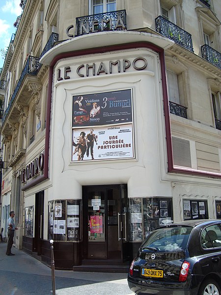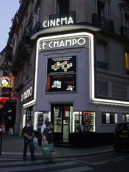 Le Champo — Espace Jacques-Tati, plus couramment appelé Le Champollion ou Le Champo, est un cinéma d'art et essai indépendant situé au 51, rue des Écoles, à l'angle de la rue Champollion dans le 5e arrondissement de Paris. Il est inscrit au titre des monuments historiques depuis 2000. Ouvert le 22 juin 1938 sur l'emplacement d'une ancienne librairie du Quartier latin, il est repris l'année suivante par Roger Joly. Un incendie en 1941 ravagea la cabine de projection ; Joly fit installer une nouvelle cabine au‑dessus de l'écran et aménager un système de rétro‑réflex, semblable à un périscope, dans un appartement situé au‑dessus de la salle. Ce dispositif, qui amenait l'image jusqu'à un miroir au fond de la salle pour la renvoyer sur l'écran, fut alors unique en Europe et conservé jusqu'en 2012. Le projecteur devint une caractéristique du lieu malgré ses contraintes techniques. Une seconde salle est ouverte en sous‑sol en 1955, après l'acquisition des locaux d'un ancien cabaret ; elle sera nommée L'actua‑Champo puis Le Champo 2 avant d'être intégrée au cinéma. L'entrée principale devient l'entrée unique à la fin des années 1970. La salle a fait l'objet de plusieurs rénovations, dans les années 1950, 1970, entre 1985 et 1989, puis en 1993. Roger Joly confie la gestion en 1980 à sa fille Christiane Renavand, qui assure la programmation et la direction artistique. Lors du renouvellement du bail, des projets immobiliers menacèrent la survie du cinéma ; la façade et les salles, entièrement conservées, furent inscrites en urgence aux monuments historiques par arrêté du 7 avril 2000 à la suite d'une mobilisation politique et d'un comité de soutien. À l'occasion du cinquantième anniversaire, en 1988, la salle prit le nom de Jacques Tati ; le hall est décoré d'une affiche originale de Jour de Fête offerte par la famille du cinéaste et d'une silhouette de M. Hulot encore présente en 2025. Le Champo a été décrit par François Truffaut comme son « quartier général » et par Claude Chabrol comme sa « seconde université » ; il est fréquenté ponctuellement par des personnalités comme Quentin Tarantino ou Louis Garrel. En 2019, une avant‑première en présence de Roman Polanski provoqua d'importantes protestations et la séance fut finalement annulée. En 2023, le cinéma a accueilli les 60 ans des Films du Losange avec la présence de réalisateurs et d'acteurs tels qu'Olivier Assayas, Isabelle Huppert et Alice Diop. En 2025, le magazine Time Out le classe dixième des plus beaux cinémas du monde. Initialement conçu comme salle d'actualité, le Champollion programma des films qui ne rencontraient pas de succès dans les grandes salles, contribuant parfois à leur redécouverte — à l'image de Drôle de drame — et attirant un public exigeant, en partie étudiant. Le cinéma conservait souvent les films à l'affiche pendant de longues durées, jusqu'à six mois. À partir de la fin des années 1990 la fréquentation décline, passant de 5 000 spectateurs hebdomadaires en 1940 à 2 000 en 2018, et l'établissement s'oriente progressivement vers le cinéma de patrimoine et les cycles thématiques consacrés à de grands réalisateurs. Il propose de vastes rétrospectives et cartes blanches à des cinéastes, des nuits thématiques se terminant à l'aube et des festivals pour le jeune public. Le Champo se situe à l'angle de la rue des Écoles et de la rue Champollion ; l'accès se fait notamment par la station Cluny - La Sorbonne (ligne 10).