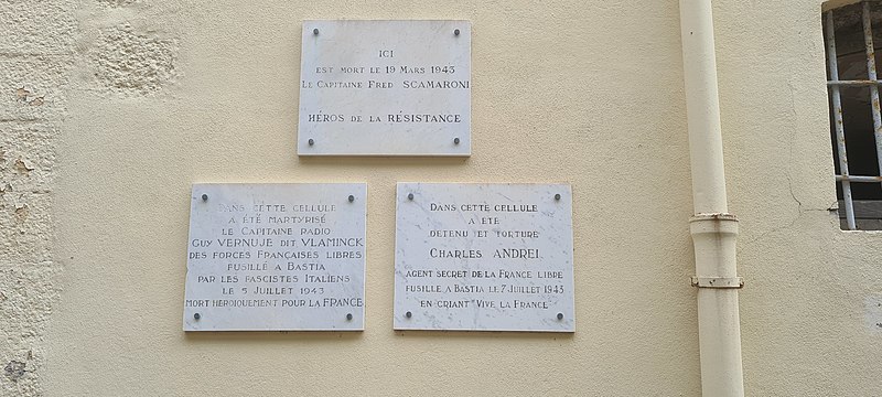 La Citadelle Miollis et l'ensemble foncier appartenant à l'État contenu dans l'enceinte de la citadelle, les édifices contenus dans l'enceinte de la citadelle, numérotés et décrits sur le plan annexé n°2 à savoir : n°1 (anciennes cuisines), n°2 (casernes adossées, dont la cellule Fred Scamaroni), n°3 (château génois), n°4 (ancienne caserne génoise surélevée), n°5 (poudrière et maçonnerie attenantes), n°6 (corps de garde), n° 7 (maison du gouverneur), n°8 (manutention), n°9 (logements attenants à la manutention), n°10 (pavillon des officiers), n°11 (pavillon du général), n°121 (chapelle), n°13 (phare du XIXème siècle dominant la baie), n°14 (redoute sud sur le domaine maritime), leurs cavités contenues dans l'enceinte de la citadelle, numérotées et décrites sur le plan annexé n°3 à savoir : n°1 (souterrain du corps de garde), n°2 (souterrain nord), n°3 (maison du gouverneur), n°4 (redoute nord), n°5 (citerne du donjon), n°6 (casemates), n°7 (sous-sol de la tour), n°8 (citernes), n°9 (cavités de la redoute sud), n°10 (souterrain sud) (cad. BY 34, 35, 36, 37, 38, 39, 283, 284) : inscription par arrêté du 9 octobre 2017