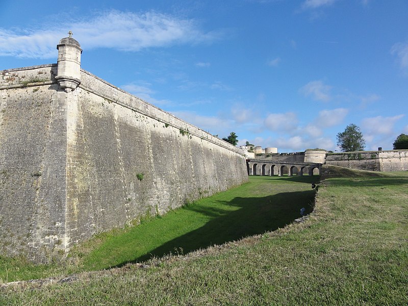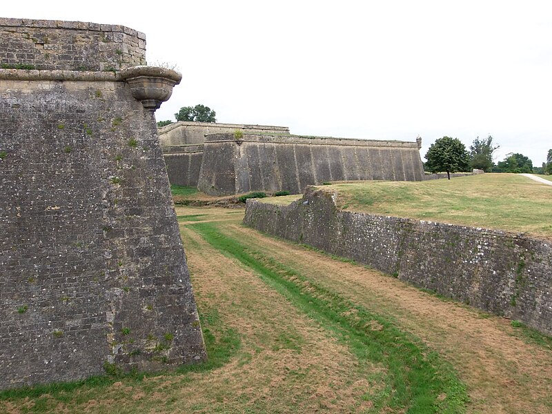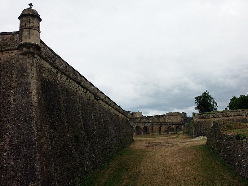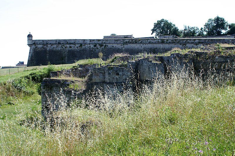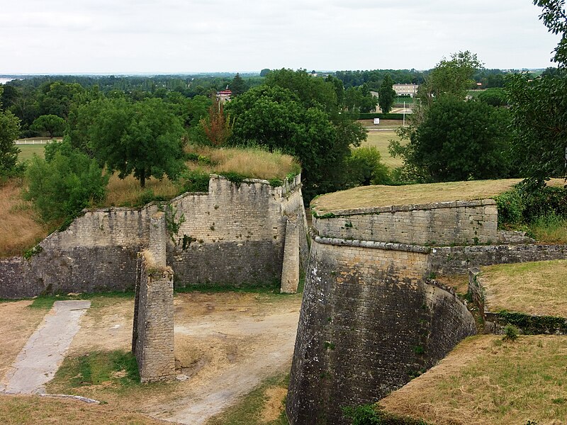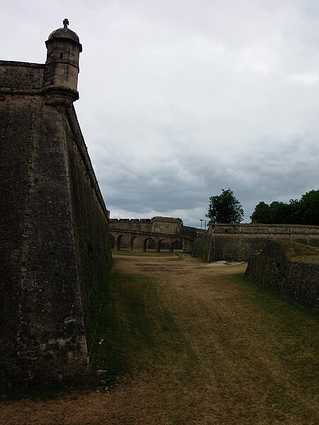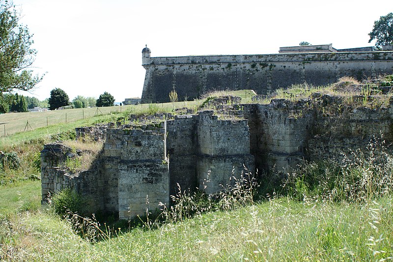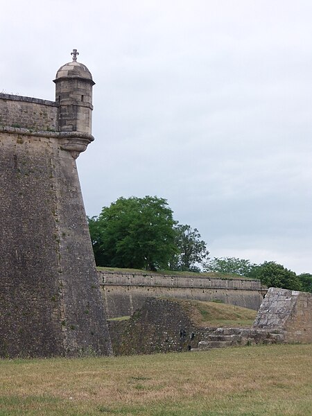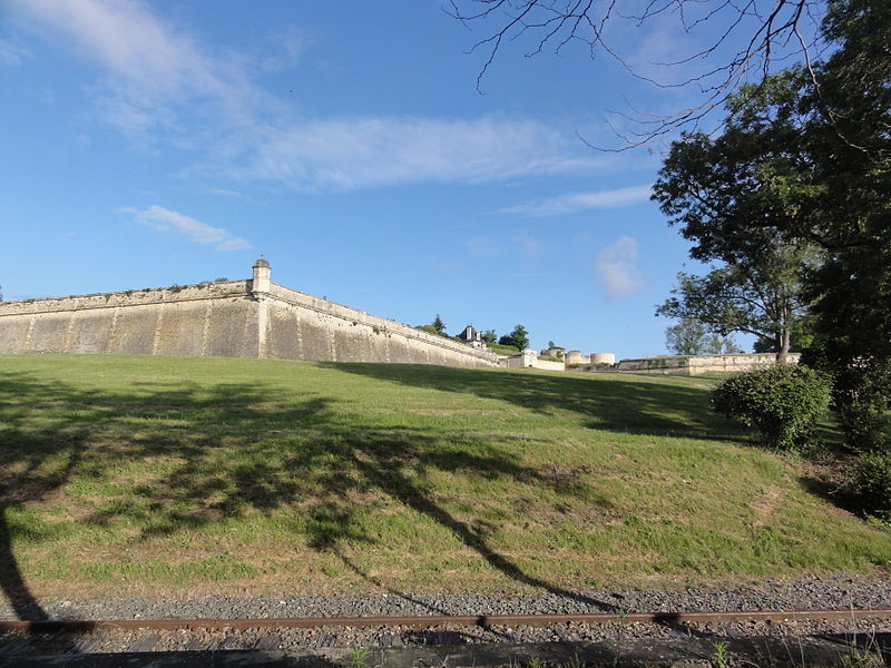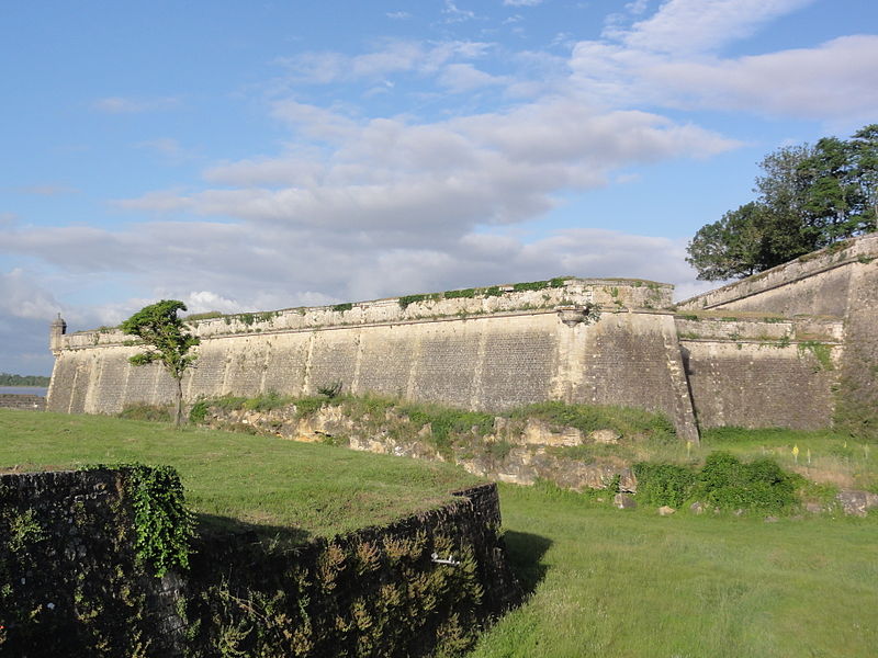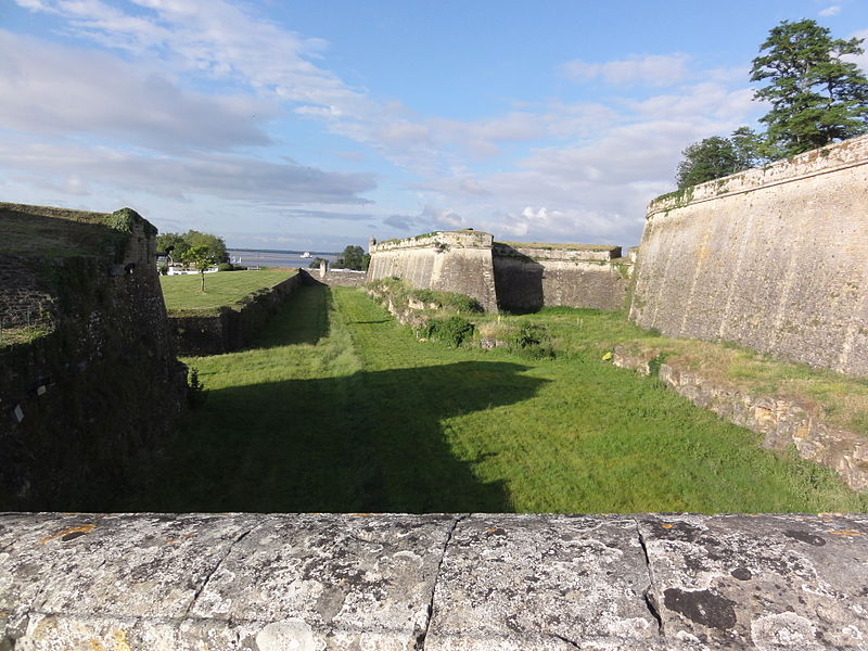 La citadelle de Blaye domine l'estuaire de la Gironde et forme un vaste ensemble fortifié en hémicycle, ceinturé par des courtines, quatre bastions, trois demi-lunes, des fossés et des glacis. Le site, occupé par des fortifications dès l'Antiquité et attesté par un premier château au VIIe siècle, a largement conservé ou intégré des vestiges plus anciens dans ses sous-sols. La forteresse telle qu'on la connaît résulte d'un important chantier mené à la fin du XVIIe siècle sous la supervision de Vauban et réalisé par l'ingénieur François Ferry ; elle comprend des bastions à orillons, des demi-bastions en bordure de la Gironde, ainsi que deux portes monumentales précédées de ponts et de demi-lunes. Conçue pour contrôler la navigation sur l'estuaire, la citadelle faisait partie d'un dispositif comprenant le fort Paté sur l'île Pâté et le fort Médoc sur la rive opposée, formant le « verrou de l'estuaire ». À l'intérieur, l'enceinte fonctionne comme une caserne organisée autour d'une place d'armes, du couvent des Minimes et de plusieurs casernements destinés au logement de la troupe. Plusieurs éléments médiévaux subsistent dans l'ensemble, notamment le château des Rudel (XIIe siècle), la porte de Liverneuf (XIIIe siècle) et la tour de l'Éguillette (XVe siècle). Les travaux de la citadelle ont entraîné la destruction d'une grande partie de la ville médiévale et de l'ancienne basilique Saint-Romain, dont des ruines ont été mises au jour au XXe siècle. La citadelle a servi à divers usages militaires et politiques : prison pour prêtres réfractaires pendant la Révolution, lieu d'internement de la duchesse de Berry en 1832–1833, et lieu de détention après le coup d'État de 1851. Elle a également subi un siège en 1814 lorsque des forces britanniques bombardèrent la place avant la cessation des hostilités liée à l'abdication de Napoléon. Inscrite à l'inventaire supplémentaire des monuments historiques dans l'entre-deux-guerres, la citadelle a échappé à la démolition partielle grâce à une mobilisation locale ; ses fortifications et glacis furent classés monument historique en 1937. L'ensemble a été inscrit en 2008 au patrimoine mondial de l'UNESCO au titre des Fortifications de Vauban et l'intégralité du site a été classée monument historique en 2009 ; il est aussi reconnu comme site majeur d'Aquitaine. Aujourd'hui, la citadelle conserve tous ses bâtiments et accueille des activités culturelles et touristiques, marchés et manifestations, ainsi qu'un jumping international annuel depuis 1977. L'accès se fait par deux portes principales, la porte Dauphine et la porte Royale, chacune précédée d'un pont dormant en pierre et d'une demi-lune ; ces ponts datent d'une campagne de modernisation du XVIIIe siècle. Les bastions, ordonnés pour permettre des tirs croisés, sont plantés d'arbres en quinconce et portent les noms de bastion des Cônes, bastion du Château, bastion Saint-Romain et bastion du Port. Le bastion dit « des Pères » ou « du Port », aménagé sur les plans de Vauban, est bordé d'échauguettes en pierre et accueille depuis 1974 un petit vignoble, le « Clos de l'échauguette ». Le couvent des Minimes, désacralisé, comprend une église, un clocher couronné d'un dôme, des bâtiments conventuels et un cloître avec des voûtes portant des traces de décor peint. L'ancien hôpital de siège, aménagé en 1739, est semi-enterré et réparti sur trois niveaux avec des casemates en sous-sol et des salles de soins aux étages ; il conserve des vestiges d'une barbacane médiévale. L'ancien château des Rudel, intégré par Vauban et transformé en logis pour les gouverneurs, est en cours de restauration après un état d'abandon au XIXe siècle. Le bâtiment de la manutention, anciennement prison puis boulangerie, abrite aujourd'hui le musée archéologique et un musée de l'estuaire, qui présentent objets et vestiges issus des fouilles locales, tels que modillons, chapiteaux et céramiques. Divers aménagements intérieurs accueillent aujourd'hui locaux associatifs, ateliers d'artisans, commerces et logements, faisant de la citadelle une « ville-close » vivante. Le site a servi de décor à des tournages, notamment pour le film La Menace en 1977 et pour des séquences de l'émission Secrets d'Histoire en 2020.