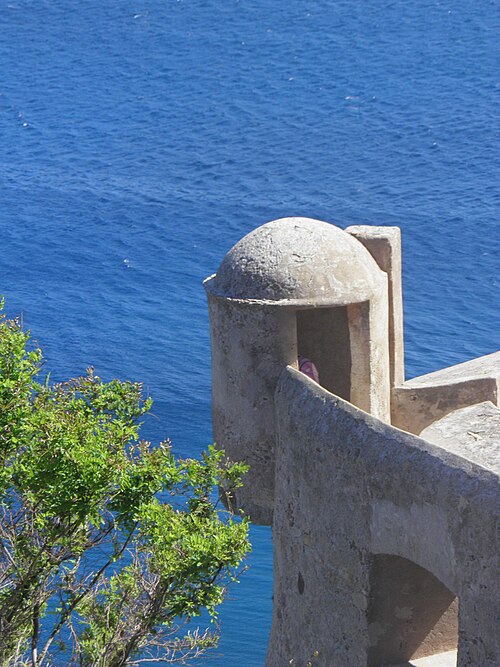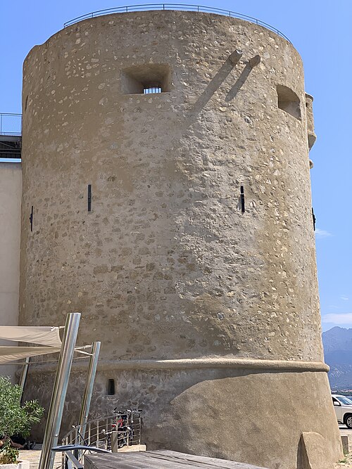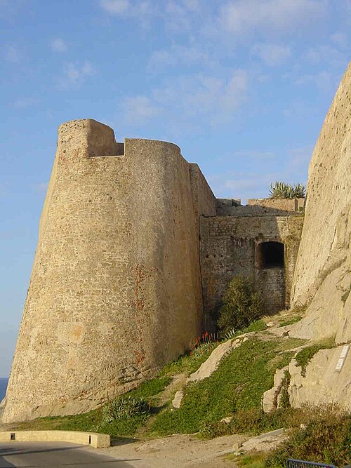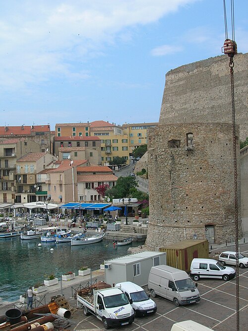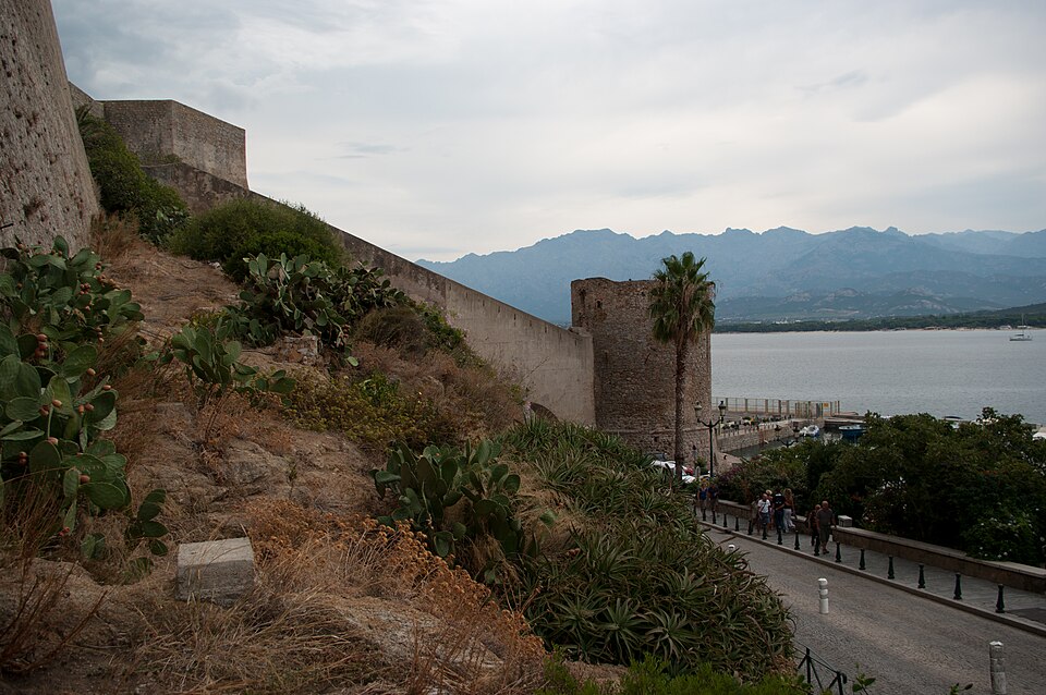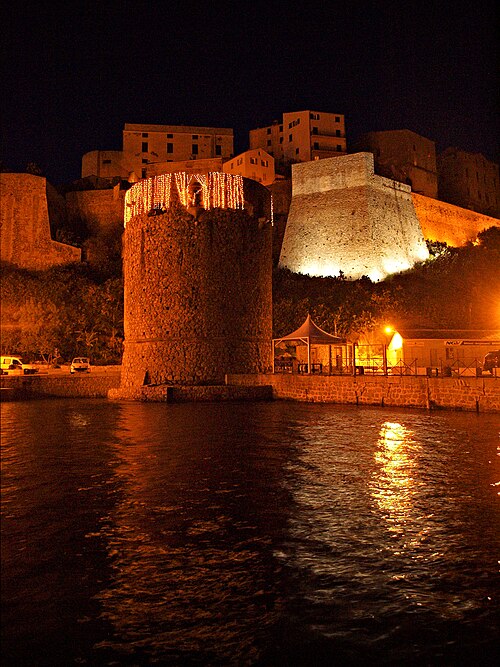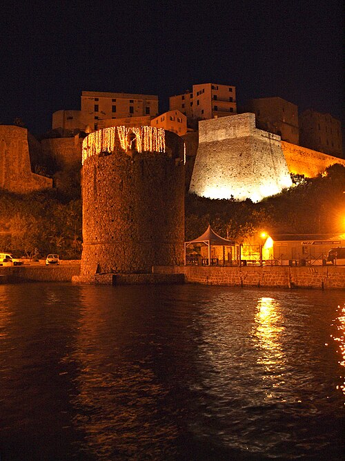 Les défenses de Calvi furent renforcées à partir de 1483 sur décision de l'Office de Saint‑Georges, le château de Vecchio Castello étant jugé insuffisant pour protéger le préside. Les architectes Cristoforo Gandino et Francesco Sforza furent chargés du projet et, en 1491, l'ensemble est mentionné apte à servir. Les travaux se poursuivirent : l'ensemble des ouvrages est achevé en 1545, consolidé face à la menace franco‑turque, et les murailles seront complétées au XVIIe siècle. La ville haute est ceinte de remparts composés de courtines et de bastions, exécutés en maçonnerie de moellons de granit et de briques. Les bastions principaux portent les noms de San Ghjorghju, Sant'Antonu d'Altu, Teghiale et Celle, qui structurent l'enceinte. La Tour du Sel, dite de Callelu, fut élevée en 1495 comme poste de guet puis utilisée pour l'entreposage du sel. Elle est reliée à la citadelle par une double caponnière à deux étages d'escaliers superposés ; la caponnière a été percée d'un porche permettant la communication entre le quai Landry et le port de commerce. La tour et la caponnière ont connu plusieurs réparations et aménagements (1897, 1934 et années 1940). L'entrée de la citadelle, jadis défendue par un fossé, un pont‑levis et une herse, conserve des éléments de son organisation défensive. La citadelle, ses remparts et la Tour du Sel appartiennent à la commune et ont été classés au titre des Monuments historiques en 1992.