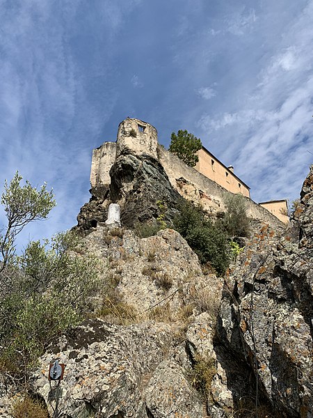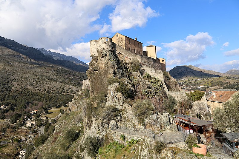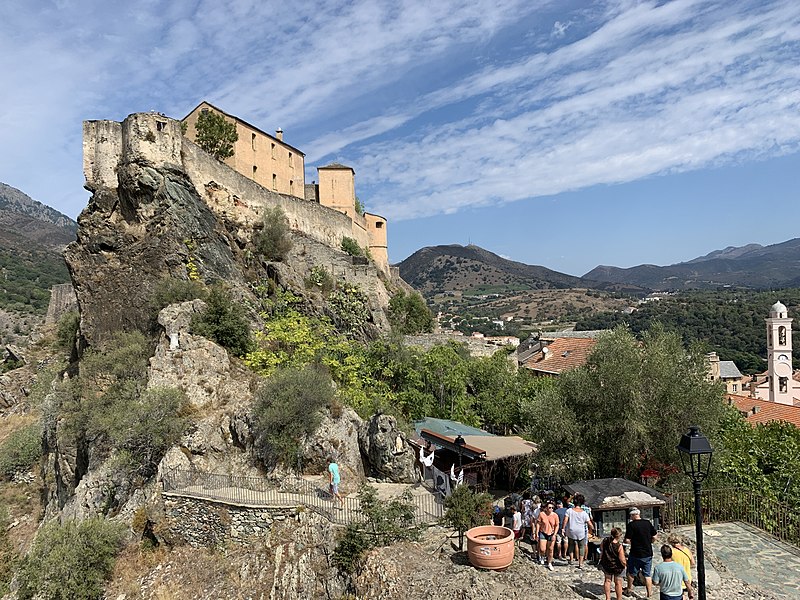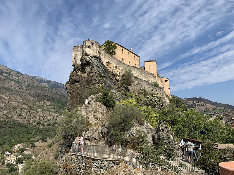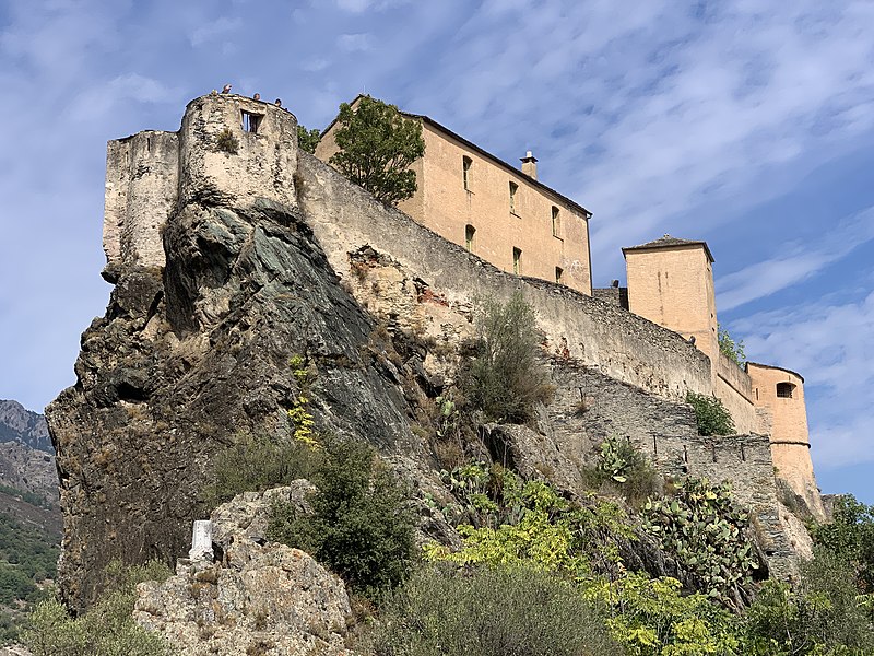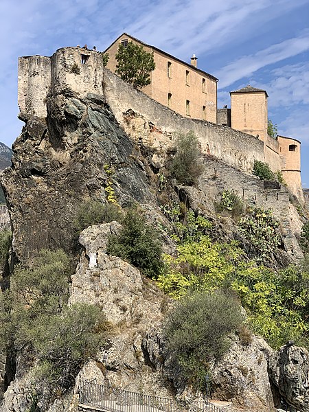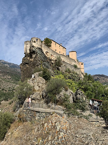 La citadelle de Corte, surnommée le « nid d'aigle », s'élève au sommet d'un éperon rocheux dominant la ville. Construite au début du XVe siècle par Vincentello d'Istria, vice-roi de Corse au service du royaume d'Aragon, elle comprenait une muraille crénelée et trois tours pour servir de point d'appui face à la République de Gênes. Au XVe siècle, l'Office de Saint-Georges y fit aménager des citernes et un four. La forteresse connut plusieurs affrontements : elle fut assaillie lors de la révolution de 1730, prise par les « Nationaux » dirigés par le docteur Gaffori en 1746, puis reconquise par Gênes en 1753. Pascal Paoli la reprit ensuite et l'agrandit, faisant notamment aménager huit cachots, et la transforma en centre politique lorsque Corte devint la capitale de son gouvernement. Après la défaite corse en 1769 et le passage sous domination française, le comte de Vaux fit renforcer les défenses en s'inspirant des principes de Vauban ; la caserne dite de Padoue fut achevée en 1776. L'enceinte fortifiée actuelle, établie au XVIIIe siècle, remplaça le mur de pierre sèche qui protégeait la citadelle du côté de la plaine. Classée monument historique le 10 août 1977, la citadelle a été occupée entre 1962 et 1983 par la Légion étrangère avant d'être ouverte au public en 1984. Le château, au cœur de la place forte, abrite le musée de la Corse ainsi que le fonds régional d'art contemporain (FRACORSE), le centre de culture scientifique et technique de Corse (CCSTI) et le pôle touristique Centru di Corsica. Le site offre une vue panoramique sur les vallées de la Restonica et du Tavignano. En avril 2015, une vingtaine de militants ont investi la citadelle pour y entamer une grève de la faim.