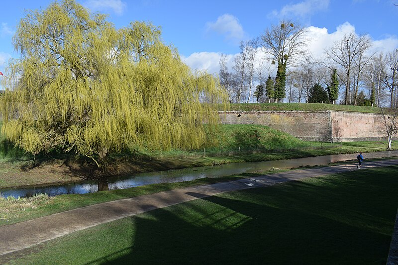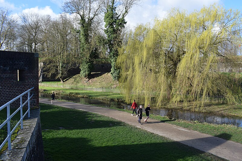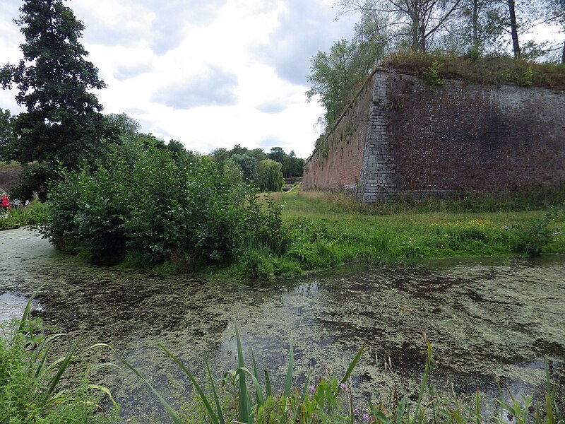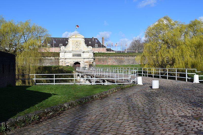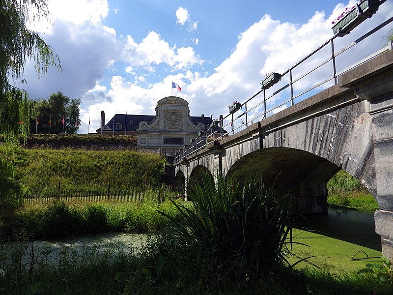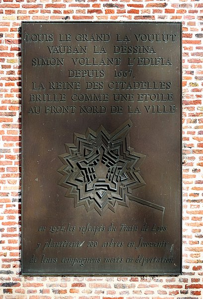 La citadelle de Lille, conçue par Vauban et réalisée entre 1667 et 1673, fut qualifiée par son auteur de « reine des citadelles ». Ouvrage militaire majeur du Pré carré, elle se distingue par ses dimensions, la qualité de son architecture et son état de conservation. Classée monument historique dans son intégralité par arrêté du 5 septembre 2012 après des classements partiels en 1914, 1921 et 1934, elle accueille depuis 2005 le quartier général du Corps de réaction rapide‑France, un état‑major multinational aux normes OTAN. N'ayant pas été présentée en 2008 pour l'inscription au patrimoine mondial de l'UNESCO, la ville a déposé un dossier en 2017, puis la demande d'inscription a été retirée le 28 octobre 2020. Lille, prise en 1667, vit Vauban voir ses plans retenus dès octobre 1667 ; les terrassements débutèrent en décembre 1667, la première pierre fut posée en juin 1668 et la citadelle devint opérationnelle en 1671, les travaux s'achevant en 1673. Simon Vollant dirigea le chantier et mit en place un canal depuis l'Arbonnoise pour acheminer les pierres ; jusqu'à deux mille hommes ont travaillé à l'édification de l'ouvrage, qui mobilisa soixante millions de briques, vingt millions de parpaings de pierre et près de 32 km linéaires de blocs de grès. La conception vise à interdire toute approche d'un mur sans exposer l'assaillant au feu d'un mur voisin : la place est organisée en pentagone, avec cinq bastions royaux nommés Anjou, La Reine, Turenne, Le Dauphin et Le Roi, et des courtines protégées. Les accès comprennent deux portes principales, Royale et Dauphine, et trois poternes — Saint‑Georges, Saint‑Sébastien et Sainte‑Barbe — généralement murées et ouvrables en cas de besoin. La fortification se déploie en cinq lignes successives : la première, en pentagone, est entourée d'un fossé inondable ; la seconde comprend des demi‑lunes et des contre‑gardes ; les lignes extérieures associent chemin couvert, lunettes, avant‑chemin couvert et deux glacis successifs destinés à obliger l'ennemi à progresser à découvert. L'esplanade, suggérée par Vauban en 1672, sépare la citadelle de la ville pour protéger la forteresse du côté urbain ; deux murs de communication dits d'en‑haut et d'en‑bas la relient à l'enceinte urbaine mais sont volontairement faibles côté citadelle afin de pouvoir être dégagés rapidement. Établie sur des terrains marécageux au confluent de la Deûle et du Bucquet, la citadelle bénéficie d'un dispositif hydraulique inspiré des modèles hollandais : le canal Vauban détourne les eaux de la Haute‑Deûle pour alimenter le grand fossé originellement large de 40 m et profond de 3 m, et des vannes permettent d'inonder en 48 heures jusqu'à 1 700 hectares à 55 cm d'eau. L'enceinte, longue d'environ 2 km, est parementée de briques et ponctuée de blocs de grès, appliquée sur un remblai de vingt mètres de terre. Au centre, les bâtiments s'organisent autour d'une place d'armes pentagonale d'où rayonnent avenues et îlots de casernes triangulaires ; l'ensemble mêle l'influence du « style lillois » et le goût classique français, avec arsenal, chapelle jésuite, moulins, ateliers et casemates. Vauban institua le logement des troupes en casernes ; autour de la place d'armes s'alignent douze bâtiments de style local dotés de pavillons pour les officiers. Le bastion d'Anjou, utilisé comme soute à munitions, conserve un cavalier et de grandes galeries où subsistent des fours du XVIIIe siècle, restaurés et remis en service lors d'interventions récentes. La citadelle a joué un rôle actif dans l'histoire militaire : lors du siège de 1708 la ville capitula le 23 octobre mais la citadelle tint jusqu'au 8 décembre, ne cédant que par épuisement des vivres et des munitions ; lors du siège de 1792, la ville résista à une armée autrichienne importante. Parmi ses gouverneurs figurent Vauban lui‑même, Louis de Crévant marquis d'Humières et Charles de Batz de Castelmore dit d'Artagnan. Au XIXe et XXe siècles la citadelle a été intégrée au tissu urbain, soumis aux pressions du trafic et du stationnement ; des projets de réhabilitation de l'esplanade ont été engagés au début du XXIe siècle pour limiter ces usages. La coexistence avec des équipements sportifs a donné lieu à de longues controverses : le stade Grimonprez‑Jooris, implanté à proximité, fit l'objet de procédures qui aboutirent à sa démolition en 2010 et au transfert du LOSC au stade Pierre‑Mauroy de Villeneuve‑d'Ascq en 2012. Aujourd'hui la couronne de la citadelle constitue un vaste espace récréatif et paysager : elle comprend aires de jeux, parc zoologique, petits équipements de loisirs et le bois de Boulogne d'environ 60 hectares, qui inclut des zones humides et fait l'objet depuis 2003 d'un important programme de restauration écologique. La gestion actuelle privilégie la restauration des milieux et la biodiversité : installation de gîtes pour chauves‑souris et oiseaux, préservation du bois mort, plantation d'essences indigènes, fascines pour la consolidation des berges, et même écopastoralisme avec moutons de Soay pour entretenir les pelouses ; le site abrite aussi trois des quatre premiers lombriducs construits en France. La flore et la faune sont diversifiées : des plantes rupicoles comme Asplenium ruta‑muraria, Papaver dubium, Cymbalaria muralis ou Asplenium adiantum‑nigrum colonisent les parements, et la faune comprend de nombreuses espèces d'oiseaux d'eau et de milieu boisé ainsi que six espèces protégées de chauves‑souris, dont Myotis daubentonii, Myotis mystacinus, Pipistrellus pipistrellus, Pipistrellus nathusii et Eptesicus serotinus, témoignant de la continuité écologique offerte par cet espace historique et naturel.