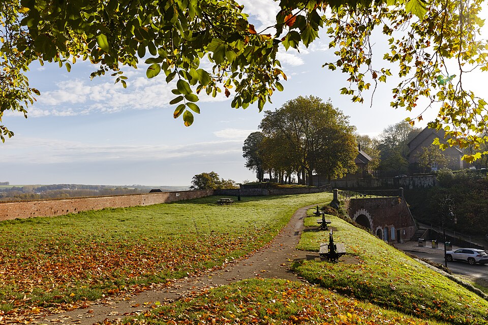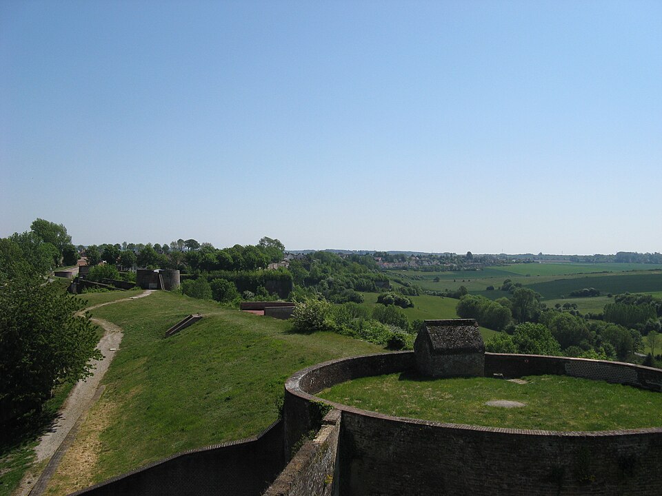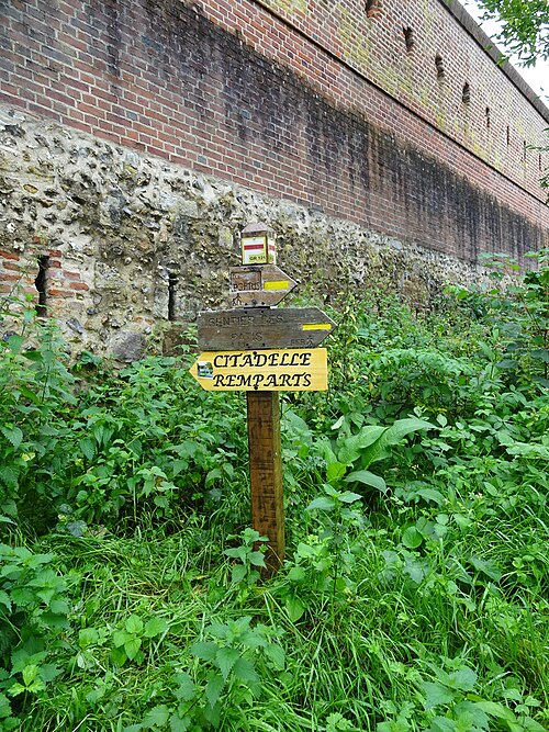 La citadelle de Montreuil‑sur‑Mer est une citadelle royale pré‑Vauban du XVIe siècle, édifiée sur les bases d’un château royal médiéval et classée au titre des monuments historiques le 18 décembre 1926. Les remparts de la ville, dont elle constitue le réduit défensif distinct, avaient été classés le 10 septembre 1913. Positionnée au nord‑ouest de Montreuil, elle occupe un éperon sur la rive gauche de la vallée de la Canche qu’elle domine et protégeait l’ancienne frontière entre les comtés du Ponthieu et du Boulonnais ainsi que les infrastructures portuaires aujourd’hui disparues. À la fin du XIIe siècle, la ville comportait deux mottes; la motte du roi fut abandonnée vers 1200 au profit d’un château philippien construit à l’emplacement actuel de la citadelle. Ce château, de forme polygonale et probablement flanqué de huit tours sans donjon, pourrait avoir servi vingt ans plus tard de modèle pour les châteaux de Boulogne‑sur‑Mer et d’Hardelot. Des vestiges du château philippien subsistent, notamment un châtelet flanqué de deux tours massives pourvues d’archères, des éléments de courtines et deux autres tours. La citadelle s’appuie aussi sur une porte d’entrée de la ville, la tour dite de la Reine Berthe ou porte de la Ferté, érigée au début du XIVe siècle. Cette tour‑porte de 15 mètres de diamètre comprend un corps de garde et une importante salle à l’étage remaniée aux XVIe ou XVIIe siècles ; elle amorçait l’enceinte communale depuis la face sud‑ouest du château. Trois autres tours de l’enceinte urbaine subsistent dans la citadelle : les tours F et E et la tour dite Blanche, qui terminait la muraille sur la face nord‑est du château. Le chemin de ronde, construit au XVIe siècle et renforcé au XVIIe siècle par une succession d’arches, reprend en partie le tracé des courtines et relie l’enceinte en se connectant à la tour Blanche, facilitant les déplacements le long du front nord. Depuis ce chemin de ronde on aperçoit la Canche au pied de la citadelle, le phare de la Canche du Touquet‑Paris‑Plage, les villes côtières, les éoliennes de Widehem et la chartreuse de Neuville‑sous‑Montreuil. Après l’attaque et la destruction de Montreuil par l’armée de Charles Quint en 1537, François Ier fit transformer profondément les remparts en appliquant l’architecture bastionnée. En 1567 le château philippien fut renforcé par des apports de terre sur l’ordre de Charles IX, puis au cours du dernier quart du XVIe siècle il fut transformé en citadelle bastionnée ; vers 1600 le site semble avoir été achevé par Jean Errard et formait alors une étoile irrégulière de cinq bastions. Au XVIIe siècle, bien que Montreuil ait perdu de son importance stratégique, la citadelle fut renforcée par l’ingénieur militaire de Louis XIV vers 1670, qui y ajouta un arsenal, bâtit une demi‑lune à l’entrée côté ville, refaçonna le bastion de la porte de secours et travailla aux glacis et aux chemins couverts extra‑muros. À partir de 1886, la citadelle prit le nom de "Caserne Coligny" et accueillit l’entraînement des enfants de troupe de l’école militaire préparatoire située en ville ; en 1914 ces troupes quittèrent Montreuil et les casernes furent occupées par les armées française et britannique. En 1916, pendant la Première Guerre mondiale, Montreuil‑sur‑Mer hébergea le Grand Quartier Général britannique et les casemates de la citadelle servirent de centre de transmission. Après la dissolution de l’école militaire préparatoire en 1924, l’association Les Amis du Vieux Montreuil loua le site au ministère de la Guerre et l’ouvrit au public en avril 1927, constituant une collection muséale, une bibliothèque patrimoniale et installant dans la tour de la Reine Berthe un monument aux chevaliers morts à Azincourt. Grâce au mécénat de Marie‑Cécile von Springer, la commune acheta la citadelle à l’État, mais l’action touristique fut interrompue par l’occupation allemande. Pendant l’occupation de 1939‑1944, les occupants s’installèrent sur le site, les collections furent dispersées et pillées, des bâtiments furent dégradés par récupération de matériaux et un cimetière militaire fut aménagé sur l’un des bastions. Les Allemands creusèrent par ailleurs un complexe souterrain sous le front ouest des remparts comprenant deux unités de casernement reliées entre elles, chacune pourvue de deux tunnels d’accès; ces logements, conçus selon le plan‑type de la voûte, virent la première unité aménagée à partir de 1943 et achevée l’année suivante, tandis que l’autre resta inachevée. Après la guerre, face aux dégradations des collections, l’association des Amis du Vieux Montreuil se dissout et la gestion du site fut confiée au syndicat d’initiative ; une auberge de jeunesse fut créée dans l’ancienne caserne des officiers et ouverte le 9 juin 1946. Des bénévoles de l’association Chantiers histoire et architecture médiévales ont participé, entre 2016 et 2022, à des travaux de restauration de la citadelle. Le site est inscrit depuis 1926 pour son patrimoine historique et naturel et, par arrêté du 23 juillet 2015, il fait partie d’une zone spéciale de conservation Natura 2000 en raison notamment d’une nurserie de grand rhinolophe ; le parcours permanent de visite intègre une exposition sur les chiroptères du Montreuillois et un observatoire vidéo infrarouge de la colonie, équipé d’un dispositif de surveillance et de caméras infrarouges permettant notamment de filmer le grand rhinolophe et son petit.