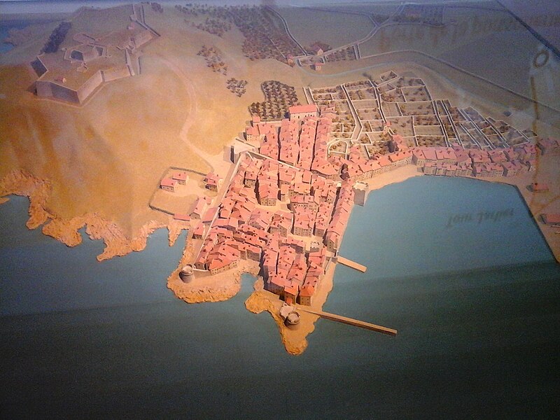 Après la décadence de la ville à la fin du XIVe siècle, le roi René confia la baronnie de Grimaud au sénéchal Jean Cossa, qui fit appel au Génois Raphaël de Garezzio pour repeupler Saint‑Tropez. Raphaël de Garezzio arriva le 14 février 1470 avec soixante familles génoises ; Jean Cossa lui céda ses droits et la convention, ratifiée par le roi le 18 janvier 1472, accorda aux habitants libertés et exemptions. Une première enceinte protégea le port, dont subsiste la tour Vieille, et les remparts résistèrent au connétable de Bourbon en 1524. L’accroissement de la population entraîna en 1534 la construction d’une enceinte bastionnée en terre, qui permit de repousser les attaques barbaresques de 1556. En 1564 Pierre de Renaud fit édifier la tour du Portalet par des maçons venus d’Antibes.
