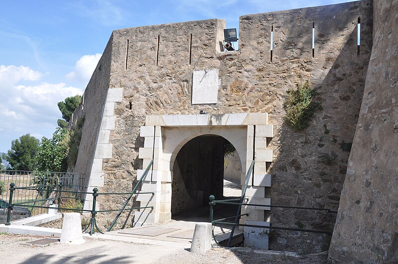 En 1583 une première fortification fut élevée sur les collines des moulins dominant la ville et le golfe, destinée à défendre la côte contre pirates, corsaires et Ottomans. Lors des guerres de Religion la place fut l’objet de luttes de pouvoir : la citadelle, occupée par des ligueurs, fut reprise par les Tropéziens puis démolie en 1596 sur ordre du parlement de Provence. Pour la remplacer, Henri IV envoya l’ingénieur Raymond de Bonnefons qui, entre 1602 et 1607, fit édifier le donjon hexagonal actuel avec une vaste cour intérieure, un pont‑levis, une plate‑forme d’artillerie et trois tourelles circulaires. La grande enceinte bastionnée, dotée de douves et de contrescarpes, fut achevée dans les années 1620 et résista, pendant la guerre de Trente Ans, à une attaque de 21 galères espagnoles le 15 juin 1637.