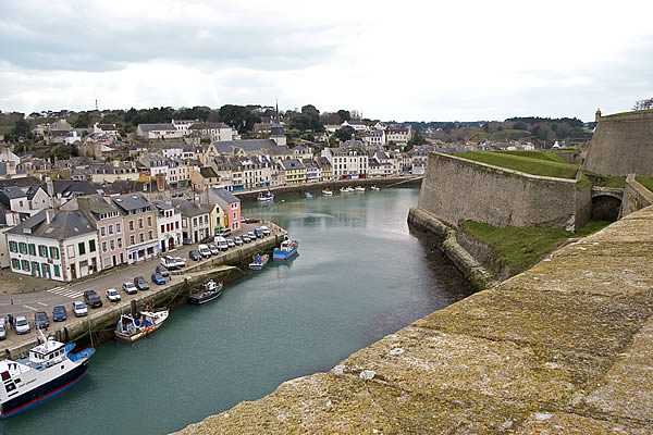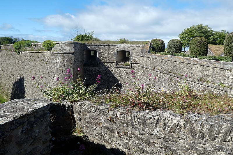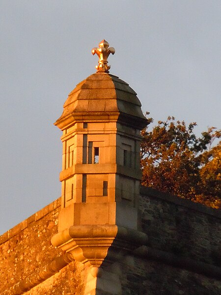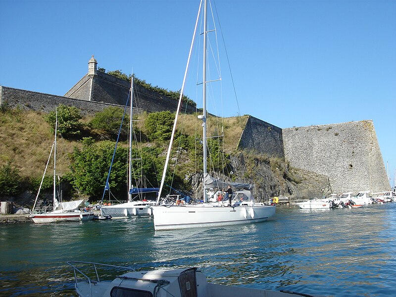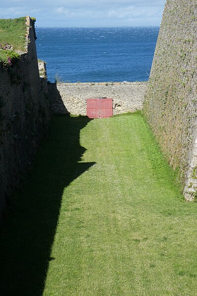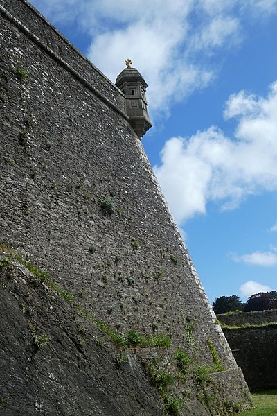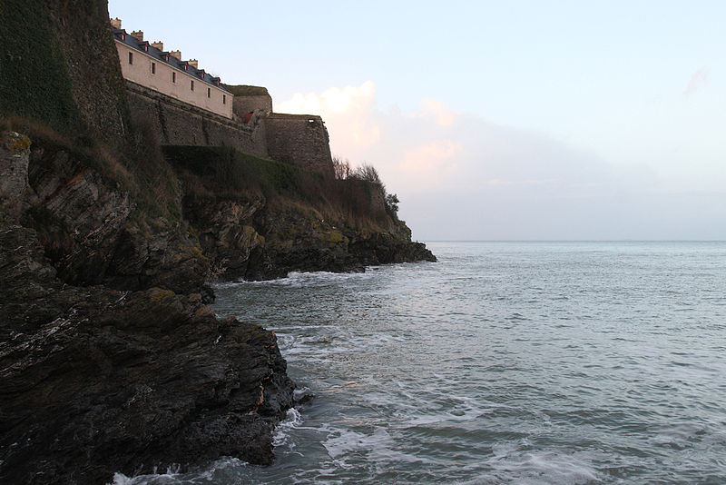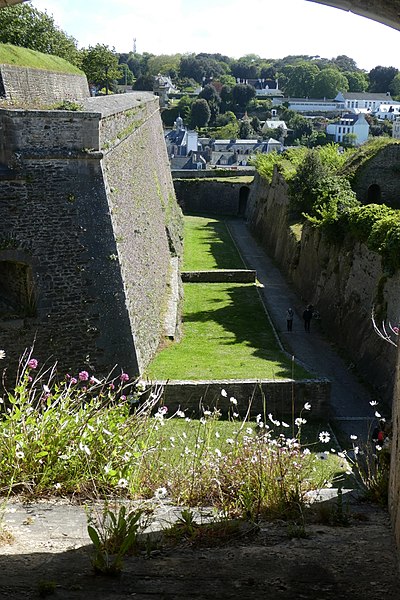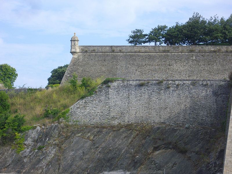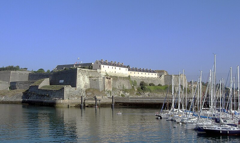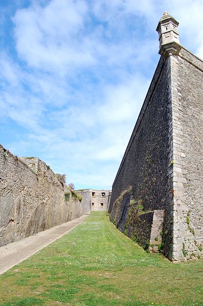 La citadelle du Palais, à Belle-Île-en-Mer, domine la commune du Palais et la rade qui porte son nom. Ses premières fortifications datent du XIVe siècle, la première citadelle ayant été édifiée par les bénédictins après 1029, puis reconstruite et transformée à plusieurs reprises entre le XVIe et le XIXe siècle avec des interventions notables de Daigremont, de Fouquet et de Vauban. Vauban séjourna sur place et modifia sensiblement l’organisation du site, déplaçant l’ancien bourg et son église pour créer un glacis. Le fort a assuré la défense de l’île contre pirates, Espagnols et Anglais ; assiégée et occupée par les Britanniques pendant la guerre de Sept Ans, la citadelle retrouva le contrôle français après le traité de 1763. Sous la Deuxième République et le Second Empire, l’enceinte fut complétée, puis l’artillerie moderne rendit progressivement obsolètes certains ouvrages. La citadelle, construite en granite, présente un plan en grand carré irrégulier renforcé de bastions formant une silhouette étoilée ; elle comprend des bâtiments de style Louis XIII et des installations militaires. L’arsenal, construit en 1780 en granite et en chêne, est un monument sur trois niveaux qui a servi au stockage du matériel d’armement et accueille aujourd’hui des expositions. L’ensemble militaire pouvait loger une garnison importante : bâtiments pour 2 000 hommes, arsenal, deux citernes, une fontaine, un puits souterrain, deux magasins à poudre et des abris voûtés ; les capacités d’approvisionnement permettaient d’assurer la subsistance de la garnison pour 1 500 hommes et pouvaient être portées jusqu’à 3 000. Sous la Deuxième République, des décrets affectèrent la citadelle aux condamnés, et le site a été successivement utilisé comme lieu de détention et de déportation lors des événements de 1848–1850 ; parmi les détenus célèbres figurent Auguste Blanqui et Armand Barbès. À proximité, sur le glacis dit de Haute-Boulogne, le Dépôt de Belle-Île fut créé en 1848 pour abriter jusqu’à 3 000 détenus ; initialement entourés de palissades, ces baraquements furent ensuite clos par le mur d’enceinte de Haute-Boulogne. Ce mur, destiné à délimiter la propriété du ministère de la Justice et celle de l’armée, mesurait à l’origine 670 mètres et formait un vaste quadrilatère bordé sur un côté par le fossé de la citadelle ; après destructions successives, 338 mètres subsistent, la partie longeant la côte étant restée pratiquement intacte. Le mur est construit en pierres de schiste, recouvert d’un crépi ocre de sable et de chaux, avec une hauteur moyenne de quatre mètres et une épaisseur de soixante centimètres ; la face maritime est renforcée tous les douze mètres par vingt-six contreforts triangulaires munis d’une petite arche au pied pour enjamber le fossé d’écoulement, et la crête du mur est inclinée vers la mer, conservant çà et là une armature de tessons de verre. Un éboulement majeur a affecté la citadelle : dans la nuit du 24 au 25 mars 1873, un mur d’escarpe de 47 mètres près du pont s’écroula, un ouvrage attribué à Fouquet, en raison de lézardes et d’un affaissement du rocher ; le commandant du génie demanda des mesures de sécurité, l’éloignement des bateaux et des crédits pour évacuer les décombres et réparer les fortifications. La citadelle a également servi de prison au cours des deux guerres mondiales : elle détenait des officiers allemands pendant la Première Guerre mondiale et fut occupée par les troupes allemandes pendant la Seconde Guerre mondiale, qui y enfermèrent des prisonniers de diverses nationalités. Abandonnée par l’armée, elle fut vendue par l’administration des Domaines en 1960 à André et Anna Larquetoux, qui entreprirent une restauration complète et ouvrirent un musée rassemblant collections, documents et objets retraçant l’histoire de Belle-Île. Les époux Larquetoux menèrent un vaste programme de sauvegarde et de réhabilitation — dépollution des bastions et fossés, dégagement des structures, création de galeries techniques, restauration des bâtiments et des 5,5 km de murailles — en s’appuyant sur des recherches d’archives et sous la conduite de l’architecte du patrimoine Philippe Prost, en concertation avec les services culturels. Leur action a permis la mise en valeur de points d’eau, la remise en état des fossés et l’implantation d’espaces muséographiques : un musée général de l’histoire de Belle-Île, un musée du plan-relief, un musée consacré aux figurines militaires et un musée de l’histoire des Acadiens, accompagnés de réserves, d’espaces d’étude et d’ateliers. Les travaux ont été principalement financés par les Larquetoux, qui ont ensuite obtenu des aides du ministère de la Culture et du département du Morbihan dans les années 1990. La citadelle a été déclassée du domaine militaire, le mur de Haute-Boulogne a fait l’objet d’une inscription au titre des Monuments historiques et la citadelle a été classée au titre des Monuments Historiques en 2007. Depuis son ouverture au public, le site comprend un musée, un hôtel-restaurant et propose des visites guidées qui présentent ses collections, ses cartes anciennes et les traces de son histoire militaire et civile. Après la période Larquetoux, la propriété a changé de mains : la citadelle a été vendue au début des années 2000 à des opérateurs hôteliers, puis cédée en 2020 à Keys Asset Management, qui l’a confiée au groupe Paris Society pour des travaux, et une promesse d’achat par un autre groupe a été signée en 2024. À proximité, d’autres ouvrages complètent le système défensif de l’île, comme le Fort de Ramonet et la Belle Fontaine, vaste réservoir vouté utilisé pour l’approvisionnement en eau douce et classé au titre des Monuments historiques.