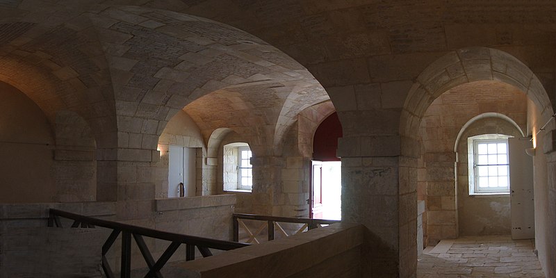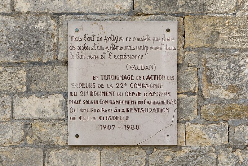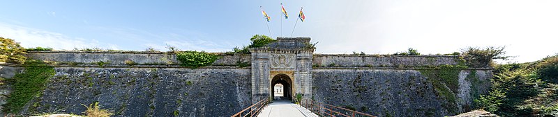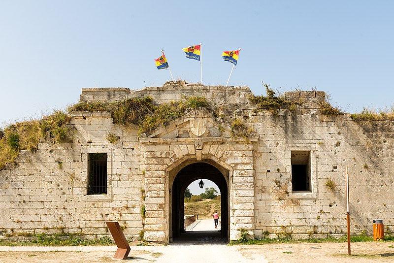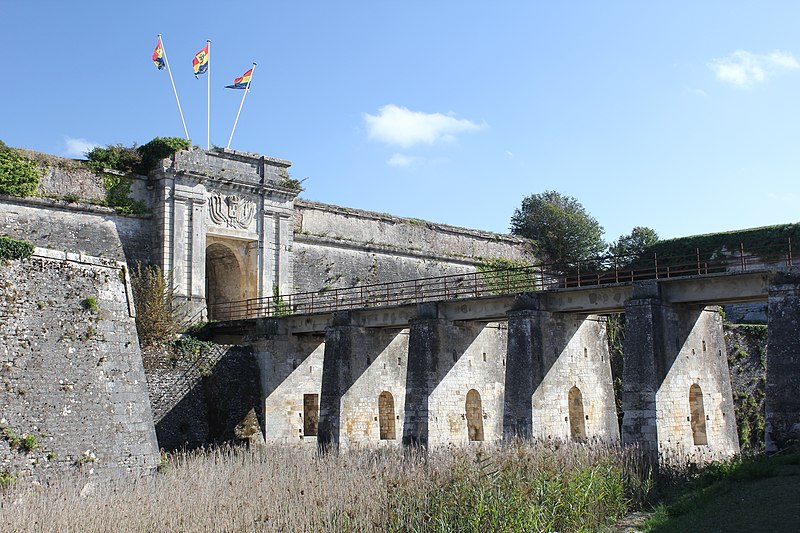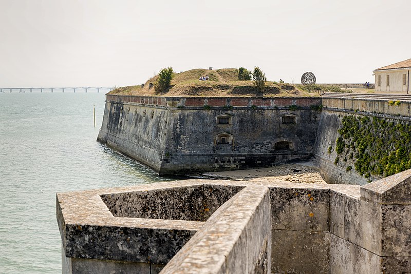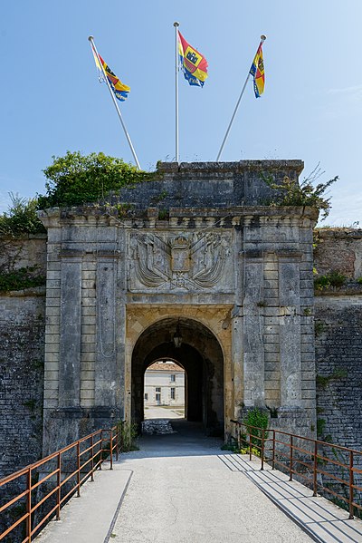 La citadelle du Château-d'Oléron, édifiée entre 1630 et 1704, protège la partie méridionale de l'île d'Oléron et constitue l'un des principaux monuments historiques de la ville. Le site est fortifié dès le XIe siècle et un château-fort, fréquenté par la duchesse Aliénor d'Aquitaine au XIIe siècle, y existait ; c'est à l'issue de son séjour qu'elle ordonne la publication des rôles d'Oléron. L'ancien château, probablement ruiné au milieu du XVIe siècle lors des conflits entre catholiques et protestants, est remplacé au début du XVIIe siècle par un ouvrage bastionné ordonné par le cardinal de Richelieu. Entre 1630 et 1640 l'ingénieur Pierre d'Argencourt construit un dispositif triangulaire cantonné de deux bastions tournés vers la ville, embryon de l'actuelle citadelle. La place est jugée insuffisante et, sous l'autorité de Louis Nicolas de Clerville puis d'ingénieurs successifs, elle fait l'objet d'importants agrandissements et de renforcements défensifs. Sébastien Le Prestre de Vauban intervient à partir de 1685 et élabore des projets que François Ferry reprend et modifie : on rase l'enveloppe de Clerville, on construit des ouvrages à cornes et l'on démolit une partie orientale du bourg pour dégager la forteresse, mais certains travaux s'effondrent ou restent inachevés et les chantiers s'arrêtent définitivement en 1704. La guerre exige des mobilisations massives de main-d'œuvre à la fin du XVIIe siècle, entraînant la destruction d'une large partie de la ville médiévale, y compris deux églises et un couvent ; l'hiver 1689-1690 provoque de nombreux décès parmi les ouvriers et impose des révisions de l'ouvrage, comme le remplacement d'un bastion par une demi-lune. À partir de 1691 Vauban prévoit un nouvel agrandissement avec tours bastionnées, contre-garde et chemins couverts, opérations poursuivies par Ferry, avec réalisation du glacis vers 1695 et création d'une ville neuve organisée en damier autour d'une place d'armes, l'enceinte urbaine commençant en 1699. La citadelle sert ensuite de casernement, de batterie et de lieu d'entraînement et d'embarquement pour des troupes destinées à la Nouvelle‑France, accueillant notamment des soldats de l'Acadie et de la Louisiane. Par la suite on aménage un magasin à poudre Saint-Nicolas, les parapets sont remaniés vers 1860 et la place subit de nouveaux renforcements au XVIIIe siècle sous la conduite du marquis de Montalembert. Transformée en prison pendant la Terreur puis de nouveau en 1870, elle retrouve un rôle militaire et abrite une garnison jusqu'en 1911 ; son armement est enlevé en 1914-1915. Occupée par la Wehrmacht en 1940, la citadelle est gravement endommagée lors d'un bombardement allié le 17 avril 1945. Elle fait l'objet de campagnes de restauration de 1959 à 1971, puis d'interventions reprises à partir de 1988. Classée monument historique par arrêté du 14 juin 1929, elle voit toutefois deux éléments déclassés par décret du 8 février 1935. Établie sur un relief dominant l'océan et les terres basses des marais, la citadelle conserve les traces de ces différentes campagnes de construction, ainsi que plusieurs bâtiments, bastions et casemates. La Porte Royale, sans doute édifiée vers 1640, présente des armes attribuées au cardinal de Richelieu ; elle est précédée d'un pont dormant et d'une demi-lune. La cour principale s'organise autour de l'arsenal, un corps de bâtiment longitudinal du XVIIe siècle qui comprenait un magasin aux vivres, un magasin aux farines, une chapelle et, à droite du portail, le logis du gouverneur. Les bastions de la Brèche et Royal, de part et d'autre de l'arsenal, accueillent des expositions et manifestations culturelles, tandis que l'ancien magasin à poudre, isolé au sud de la citadelle, marque l'entrée principale. L'Arsenal, achevé en octobre 2015, abrite aujourd'hui une salle de spectacle de 250 places, une salle de réception avec vue sur la mer et une salle d'exposition modulable, et depuis 2014 le parcours de la citadelle est ponctué de personnages historiques sculptés par Alain Nouraud.