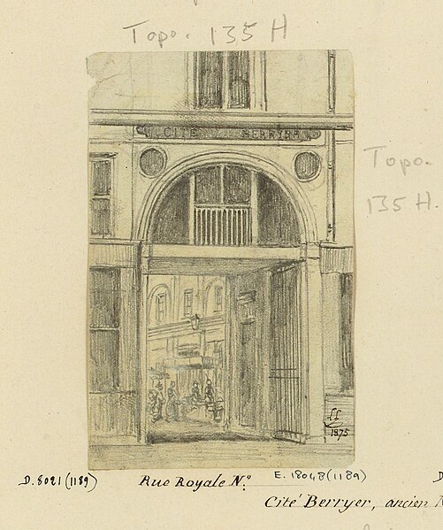 La cité Berryer est une voie du 8e arrondissement de Paris, qui commence au 25 rue Royale et se termine au 24 rue Boissy-d'Anglas. Longtemps appelée « passage du marché d'Aguesseau », elle tient son origine d'un marché fondé en 1723 entre les actuelles rues de Surène, d'Aguesseau et Montalivet, qui périclita rapidement. Des lettres patentes datées du camp d'Alost le 16 août 1745 autorisèrent le transfert du marché vers un emplacement situé entre la rue de la Madeleine (actuelle rue Boissy-d'Anglas) et la rue Royale, alors inexistante. Le terrain ouvrait sur la rue Basse-du-Rempart, absorbée depuis par le boulevard des Capucines. Le passage prit le nom de cité Berryer en 1837, en hommage à l'avocat Pierre-Nicolas Berryer (1757-1841), dit Berryer père ; son fils, Pierre-Antoine Berryer (1790-1868), a donné son nom à une rue située dans une autre partie du 8e arrondissement. Joris-Karl Huysmans, dans En ménage (chapitre XIV), décrit la cité comme un lieu où se tenait un marché le mardi et le vendredi et souligne le contraste surprenant entre cette cour populaire, soigneusement cachée par une porte, et les boutiques et cafés luxueux du voisinage, à deux pas de la Madeleine et de la rue Royale. Des ouvrages historiques et des promenades dans les rues de Paris ont documenté ces éléments et l'évolution de la voie.