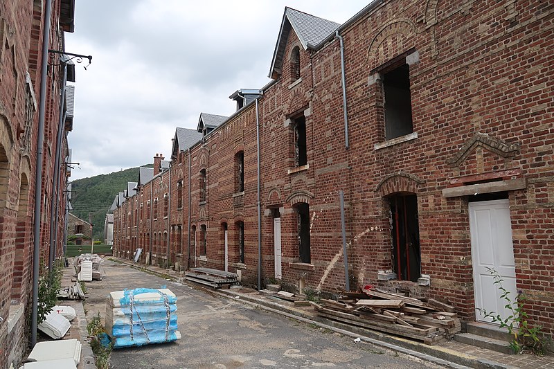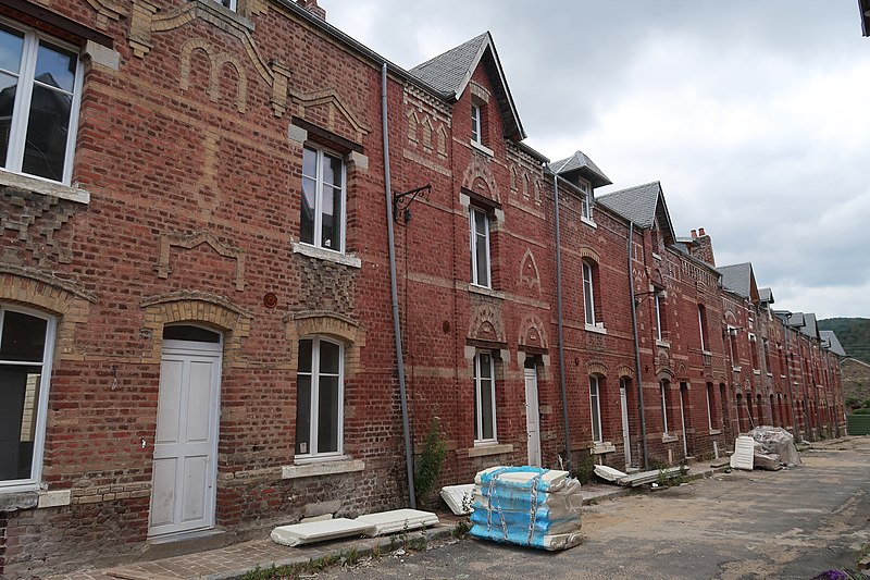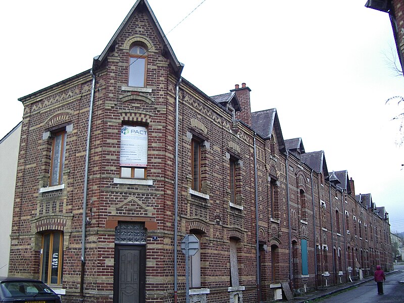 La cité ouvrière dite Paris-Campagne, située à Revin dans les Ardennes, est un ensemble bâti inscrit aux monuments historiques. Elle a été installée en 1924-1926 à l'initiative de la société Biard et Cie pour loger ses ouvriers ; d'autres sources attribuent la construction à la société Brichet, Biond et Compagnie. Conçue à l'origine pour accueillir 24 logements — huit maisons plus grandes et seize plus modestes — elle se déploie le long d'une rue étroite qui relie la rue Waldeck-Rousseau à la place Jean Jaurès. L'originalité du site tient à la richesse et à la variété de ses décors de façades : on y recense neuf types de décors, dominés par des motifs jaune sur fond rouge, et chaque façade porte une frise différente. Toutes les portes sont dotées d'un fronton et l'on observe quatre types de lucarnes distincts. Les façades jouent aussi de briques émaillées jaunes ou blanches disposées en figures géométriques au-dessus des fenêtres et des portes, et certains linteaux sont en acier riveté. Les logements sont alignés en continuité et en vis-à-vis, chaque maison comportant un étage et trois ou quatre pièces ; les habitations d'angle, le long de la rue Waldeck-Rousseau, sont plus spacieuses et offrent deux ou trois pièces supplémentaires. Certaines toitures présentent un pignon avec comble et la couverture est en ardoise. Sous chaque fenêtre se trouve un soupirail desservant une cave, et chaque logement dispose d'un jardin à l'arrière. À la suite d'une vente aux enchères dans les années 2000, la cité a été rachetée en 2010 par la société d'économie sociale Habitat Pact. Un projet de réhabilitation, soutenu par l'État et la Fondation Abbé‑Pierre et estimé à deux millions d'euros, prévoyait de restructurer les vingt-quatre habitations en dix‑huit logements sociaux devant être remis en location en 2015. L'inscription au titre des monuments historiques, intervenue en 2012, atteste de l'évolution des critères de patrimonialisation en France. Les salariés de l'entreprise fondatrice étaient principalement des émailleurs et des mouleurs, caractéristique de l'histoire industrielle locale.