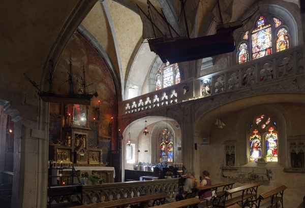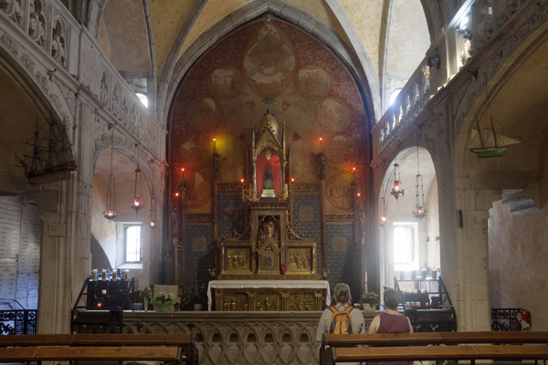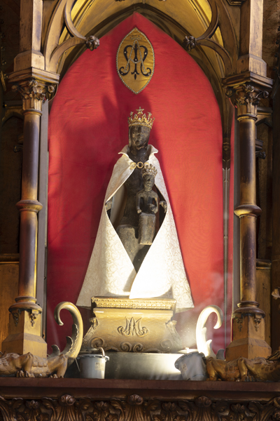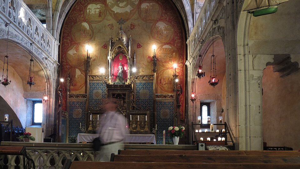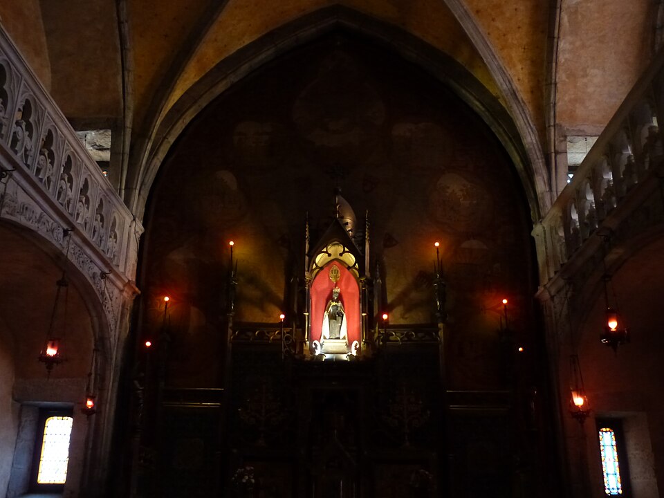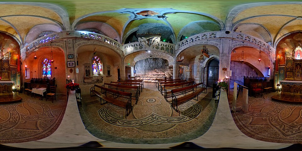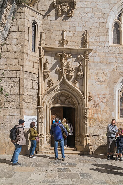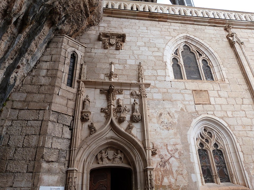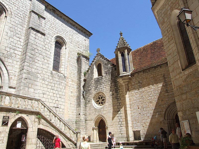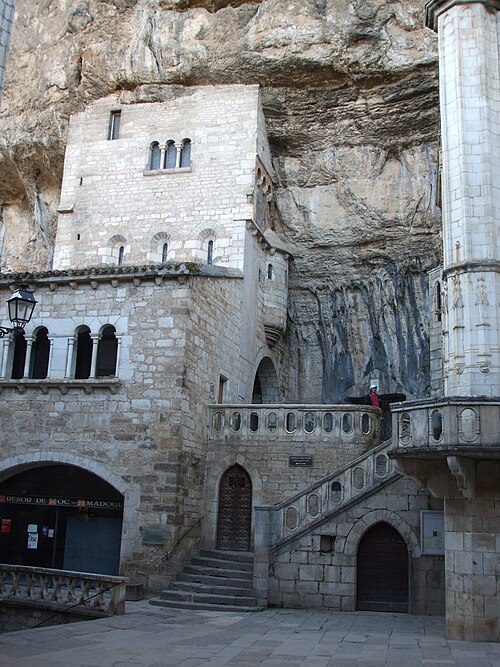 La cité religieuse de Rocamadour, sanctuaire marial bâti au flanc de la falaise du canyon de l'Alzou, s'est imposée depuis le Moyen Âge parmi les grands lieux de pèlerinage chrétiens. La plus ancienne attestation du culte marial remonte à une bulle du pape Pascal II en 1105, qui confirme la possession de l'église dédiée à la Vierge. La plupart des édifices visibles aujourd'hui datent du XIIe siècle : Notre-Dame, Saint-Michel, Saint-Sauveur et Saint-Amadour existaient déjà au milieu du siècle, et la découverte d'un corps momifié, identifié comme celui de l'ermite Amadour, a renforcé la dévotion locale. Le palais abbatial apparaît dans les sources en 1223 ; les documents et le style des bâtiments conduisent à situer la construction des églises et des annexes principales entre la fin du XIIe siècle et le début du XIIIe siècle. Les pèlerinages se sont développés sous l'abbatiat de Géraud d'Escorailles et furent soutenus par d'importantes donations royales et princières, consignées pour certains cas avec les dates figurant dans les sources. Dès 1172, un liber miraculorum recense 126 miracles attribués à Notre-Dame depuis 1140, tandis que la dévotion à saint Amadour n'est mentionnée pour la première fois qu'en 1183, à l'occasion d'un pillage qui entraîna la disparition d'une châsse d'argent. Les rivalités entre abbayes et les cessions de desserte au XIe et XIIe siècles sont attestées dans les cartulaires, et les moines de Tulle obtiennent leur confirmation définitive de droits sur le site à la fin du XIIe siècle. La cité fut plusieurs fois prise et pillée jusqu'au XVIe siècle, puis le pèlerinage déclina aux XVIIe et XVIIIe siècles ; les documents révolutionnaires relèvent l'état de ruine des bâtiments. À partir de 1842, les évêques de Cahors engagèrent la restauration matérielle du sanctuaire, reprise et conduite par l'abbé Jean-Baptiste Chevalt, avec des campagnes importantes entre 1858 et 1872 portant sur les différents sanctuaires, la chapelle Saint-Jean-Baptiste, le palais abbatial et l'aménagement du parvis ; ces travaux, réalisés hors du contrôle des services des Monuments historiques, firent l'objet de critiques dès 1865. L'ensemble comprend l'escalier historique de 216 marches que les pèlerins gravissaient depuis la ville basse, la Voie sainte qui relie le hameau de l'Hospitalet au sanctuaire, et un parvis dallé en deux niveaux aménagé au XIIe siècle autour duquel s'articulent la basilique, la crypte et sept chapelles, dont celle abritant la Vierge noire du XIIe siècle. La chapelle Saint-Jean-Baptiste, de plan octogonal, renferme la tombe de Jean de Vallon, des portraits de pèlerins et un chapiteau remployé en bénitier classé ; elle a été transformée en baptistère au XIXe siècle. La chapelle Saint-Blaise, de dimensions modestes, conserve de beaux vitraux et des peintures, tandis que la chapelle Sainte-Anne, de la fin du Moyen Âge, abrite un retable baroque illustrant les mystères de la Vierge noire. La chapelle Notre-Dame figure au cœur du dispositif cultuel, et la chapelle Saint-Michel, semi-troglodyte et la plus haute du sanctuaire, s'appuie sur la falaise ; sa façade porte une fresque romane classée représentant l'Annonciation et la Visitation, et son abside conserve des peintures gothiques du XIIIe siècle. La septième chapelle, située sous Saint-Michel, est depuis 2011 consacrée à Notre-Dame de l'Ovalie et accueille des souvenirs offerts par le monde du rugby. Le site, protégé au titre des monuments historiques et inscrit au patrimoine mondial de l'Unesco, a par ailleurs inspiré des œuvres artistiques, notamment les Litanies à la Vierge noire composées par Francis Poulenc en 1936.