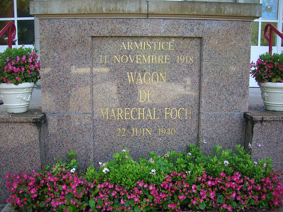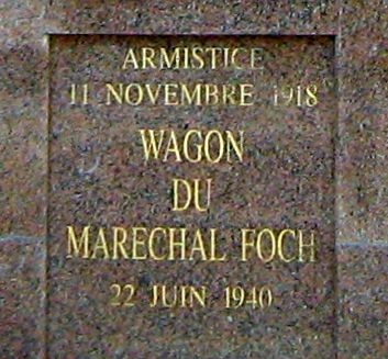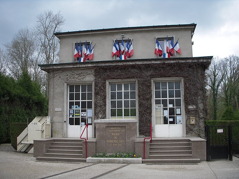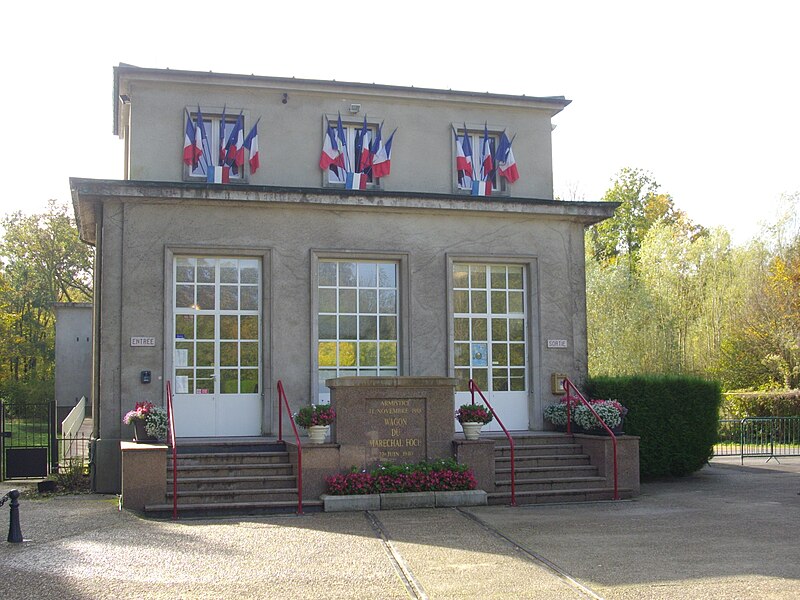 La clairière de l'Armistice, en forêt de Compiègne sur la commune de Compiègne (Oise), est le lieu où fut signé l'armistice du 11 novembre 1918 entre la France, ses alliés et l'Allemagne, puis l'armistice de juin 1940 entre la France et le Troisième Reich. Son appellation secondaire, « clairière de Rethondes », provient de la proximité de l'ancienne gare de Rethondes, située sur la commune de Compiègne et séparée du village de Rethondes par l'Aisne. Le site fut choisi parce qu'il offrait l'isolement recherché par le maréchal Foch et qu'il pouvait accueillir deux trains ; il s'agit de deux épis ferroviaires parallèles s'enfonçant dans la futaie et utilisés alors pour l'acheminement de pièces d'artillerie lourde. Après la demande allemande d'ouverture des négociations, la clairière fut rapidement aménagée pour permettre l'arrivée des trains ; le wagon principal de la délégation allemande était celui de l'ancienne impératrice Eugénie. L'armistice de 1918 fut signé dans le wagon-salon du maréchal Foch le 11 novembre 1918, aux premières heures du matin. Le wagon réquisitionné en 1918 servit ensuite à d'autres négociations, fut placé aux Invalides avant d'être restauré et ramené à la clairière grâce aux démarches locales et au mécénat ; il fut inauguré sur place lors des commémorations du 11 novembre 1927. L'aménagement du site dans l'entre-deux-guerres, confié à l'architecte Marcel Magès en collaboration avec Binet-Valmer, comprit une allée de 250 mètres aboutissant à une clairière ovale d'environ 100 mètres de diamètre, la mise en place d'une dalle commémorative portant un texte de Binet-Valmer et l'érection du « monument aux Alsaciens‑Lorrains », œuvre d'Edgar Brandt, qui porte la dédicace « Aux héroïques soldats de France, défenseurs de la Patrie et du Droit, glorieux libérateurs de l'Alsace et de la Lorraine ». Un rocher taillé marqué « Maréchal Foch » indique l'emplacement du wagon entre les rails, et une statue en pied du maréchal Foch a été ajoutée en 1937. En juin 1940, sur ordre d'Adolf Hitler, la voie fut rétablie, le wagon amené à son emplacement de 1918 et l'armistice signé dans le wagon ; par la suite le wagon fut emmené en Allemagne, les constructions et certains monuments furent dynamités et le terrain modifié. Le wagon original fut finalement évacué de Berlin en 1944 puis incendié par les SS en avril 1945 dans la région de Thuringe. Après la libération, des cérémonies réparatrices eurent lieu en 1944 et le site fut reconstitué à l'identique à la fin des années 1940 : le monument aux Alsaciens‑Lorrains fut reconstruit, des fragments de la dalle centrale furent rapatriés en 1946 et la République française acquit un wagon de la même série pour le réaménagement de l'abri. Un nouvel abri et l'exposition intérieure furent inaugurés en 1950, puis complétés par des salles en 1960 et 1993 formant le musée de l'Armistice. La clairière attire environ 100 000 visiteurs par an et a été inscrite aux monuments historiques par arrêté du 7 septembre 2001.