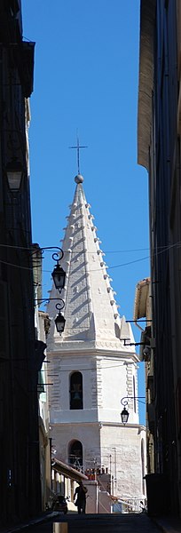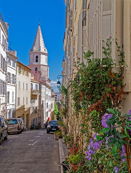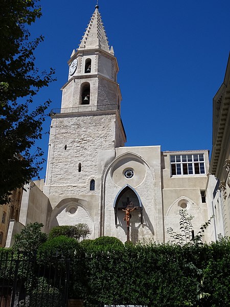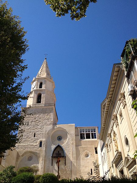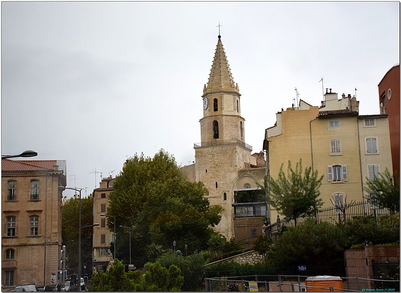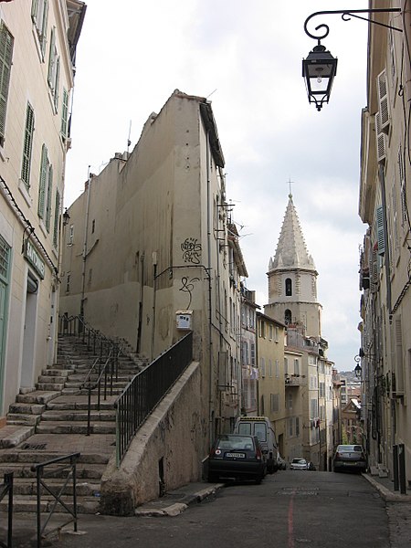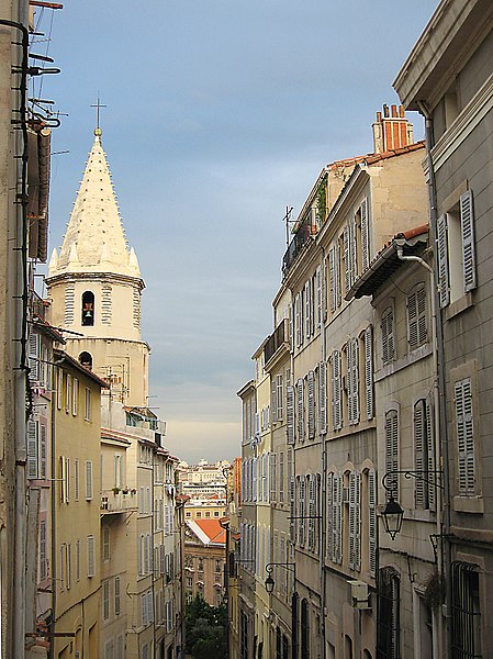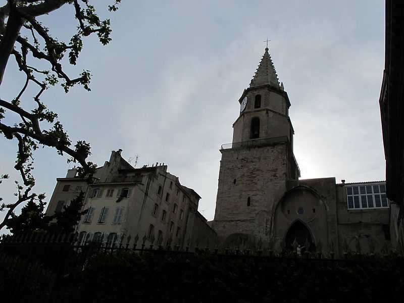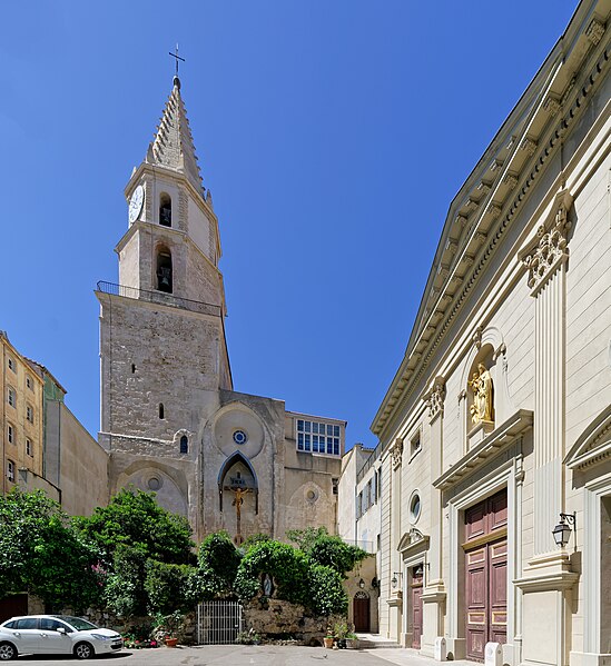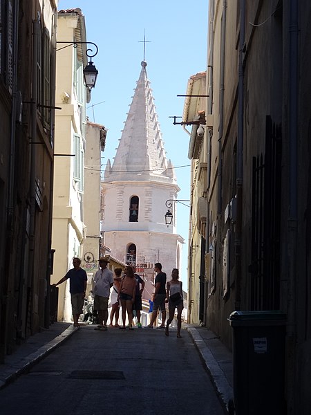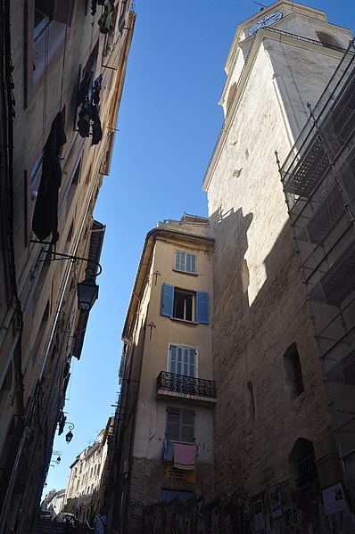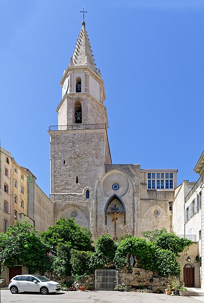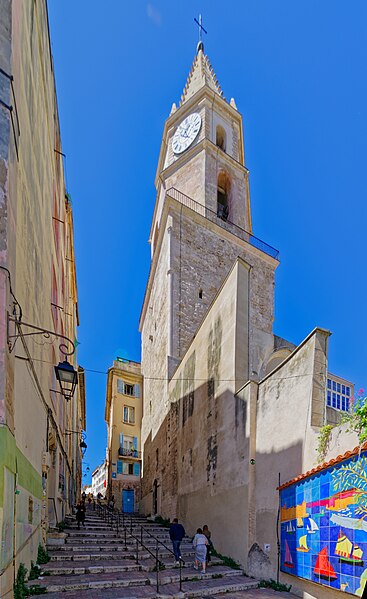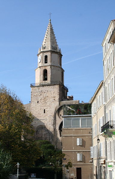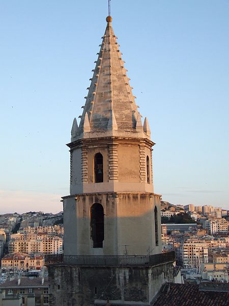 Le clocher des Accoules, vestige de l'ancienne collégiale Notre-Dame-des-Accoules, se dresse dans le quartier des Accoules au n°10 de la place Daviel, dans le 2e arrondissement de Marseille. L'église médiévale, de style gothique méridional, fut rasée pendant la Révolution ; seul le clocher et le mur du fond ont été conservés. Le nom "Notre-Dame-des-Accoules" pourrait venir de sa structure arquée (arcuatim constructa), hypothèse privilégiée face à une autre étymologie liée à une source. Selon la tradition, l'église aurait été édifiée sur les ruines d'un temple de Minerve. Aux XIe et XIIe siècles, les religieuses de l'abbaye Saint-Sauveur puis l'abbaye Saint-Victor sont associées à son histoire, et la paroisse est délimitée en relation avec celle de Saint-Martin ; la justice se rendait devant son portail sur la place du Palais, aujourd'hui place Daviel. Une inscription conservée atteste une reconstruction en 1205 et l'édifice présente des éléments gothiques suggérant une campagne de travaux aux XIVe siècle. Implantée contre la butte de l'observatoire, l'église comportait deux sanctuaires superposés et s'ouvrait au sud par un vaste perron au bas de la montée des Accoules. Avant sa destruction, elle mesurait cinquante mètres de long sur vingt de large et comprenait trois nefs hautes de dix à dix-sept mètres. Pendant la Révolution, l'édifice servit de rassemblement pour une section engagée dans l'insurrection fédéraliste ; après la défaite, les représentants du peuple ordonnèrent la démolition. La démolition, confiée à l'entrepreneur J.-Ch. Caillol, transforma la place du Palais en un chantier désolé dont les travaux ne prirent fin qu'en 1808 grâce à la main-d'œuvre des ateliers de charité. Le clocher fut épargné en raison de son horloge, utile aux travaux du port et de la ville, et le mur du fond conserva les traces ogivales des trois nefs ; le clocher est classé monument historique par arrêté du 7 juillet 1964. En 1820, une crypte figurant le Saint-Sépulcre et un calvaire en rocaille furent aménagés contre le mur du fond de l'ancienne église, et la place du Calvaire fut nivelée et close par une grille. Cette réalisation s'inscrit dans une mission évangélisatrice dirigée par l'abbé de Forbin-Janson, qui proposa le calvaire après un voyage en Palestine, tandis qu'Eugène de Mazenod prêchait en langue provençale dans la vieille ville. La croix de fin de mission fut solennellement érigée lors d'une procession qui traversa la ville, geste interprété comme une restauration religieuse après la Révolution. L'opération suscita à la fois une ferveur populaire et des tensions politiques : spectacles, caricatures dans la presse libérale et la nouvelle de l'assassinat du duc de Berry provoquèrent une surveillance renforcée des autorités. Après la mission, la place du Calvaire devint lieu de pèlerinage ; en 1821 les Missionnaires de Provence prirent en charge le service religieux et s'installèrent à proximité, aménageant d'abord une chapelle provisoire. Les travaux d'une nouvelle église commencèrent en 1824 ; l'édifice, dédié sous le vocable de Notre-Dame-du-Bon-Secours, fut ouvert au culte puis consacré par l'évêque Charles-Fortuné de Mazenod. Construite à droite du calvaire et encastrée dans les rochers de la montée du Saint-Esprit, la nouvelle église adopte un plan centré avec une coupole inspirée du Panthéon, et une façade plane à trois travées à pilastres et fronton masque sa forme circulaire pour dialoguer avec le palais de justice voisin. L'église fut endommagée lors d'un bombardement en 1940 et restaurée en 1951 grâce aux indemnités de guerre ; un important chantier de restauration eut lieu de 2007 à 2013, incluant la canalisation d'une source, la reconstruction de la coupole et la restauration du clocher. L'histoire locale comporte aussi des épisodes dramatiques, comme l'affaire Gaufridy : en 1610 le curé Louis Gaufridy fut accusé de sorcellerie par deux religieuses, jugé coupable après détention et soumis à la question, puis brûlé à Aix-en-Provence en 1611. Le clocher a inspiré des artistes, notamment Jacques Van den Bussche qui a peint une vue conservée au Musée des Beaux-Arts de Marseille.