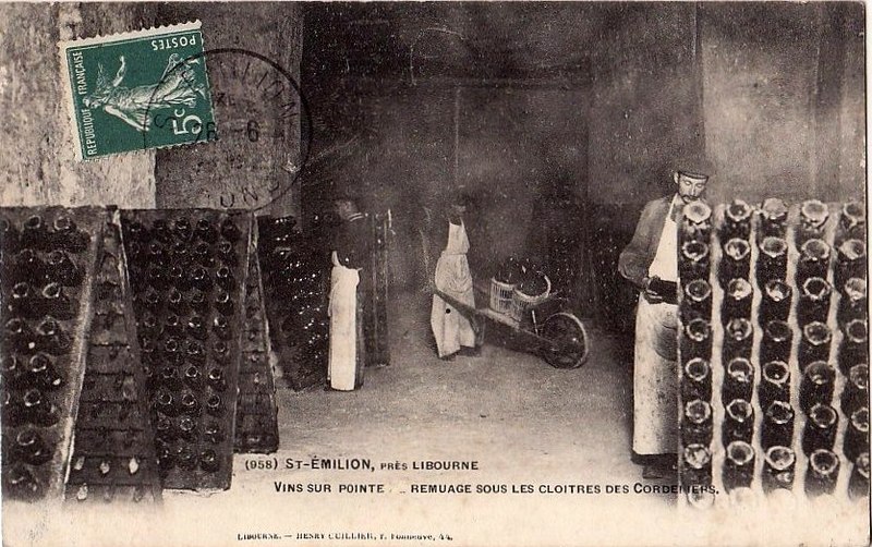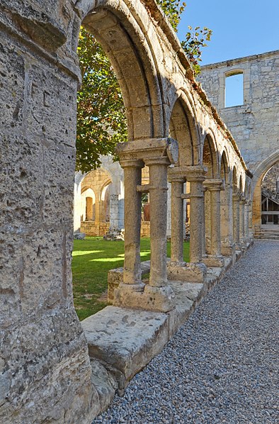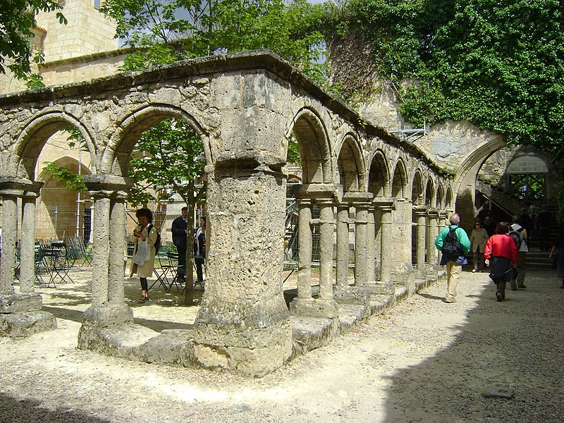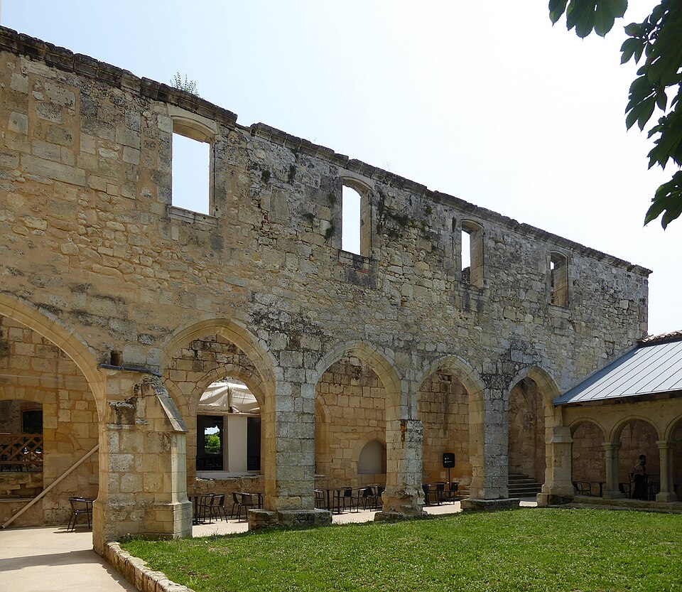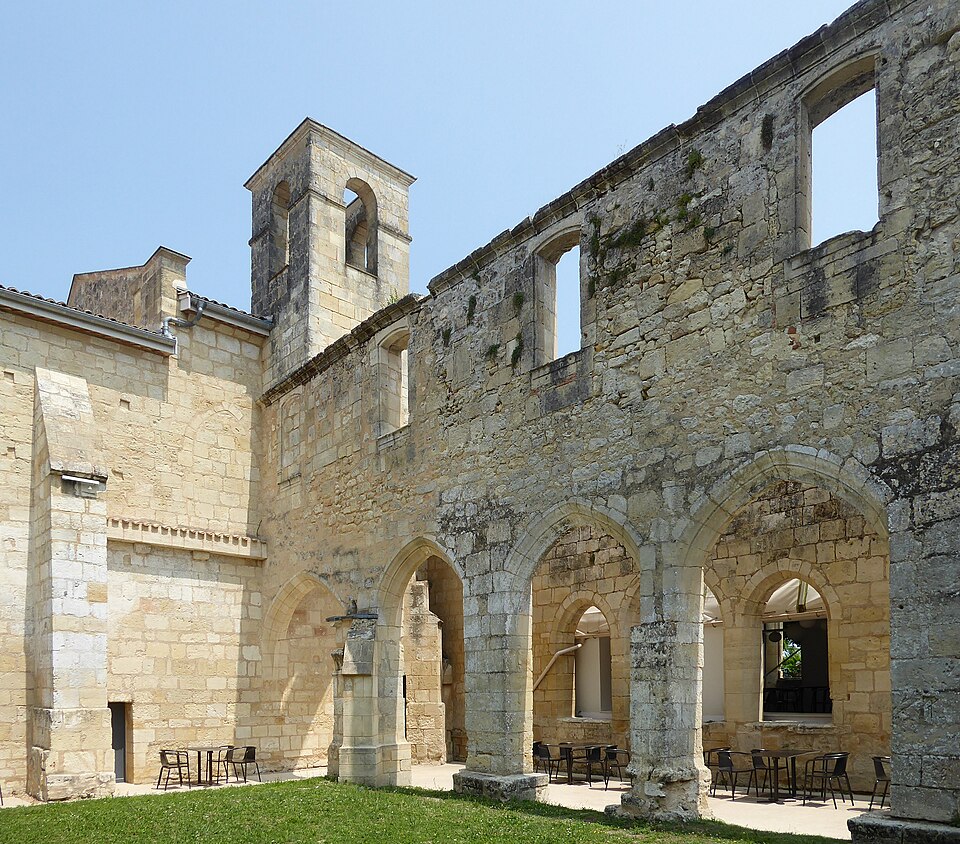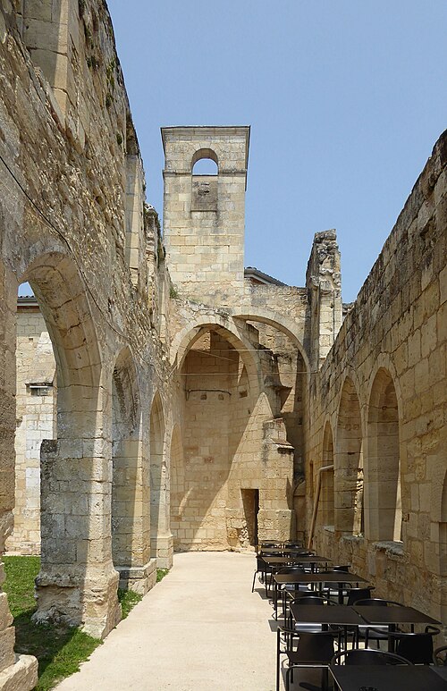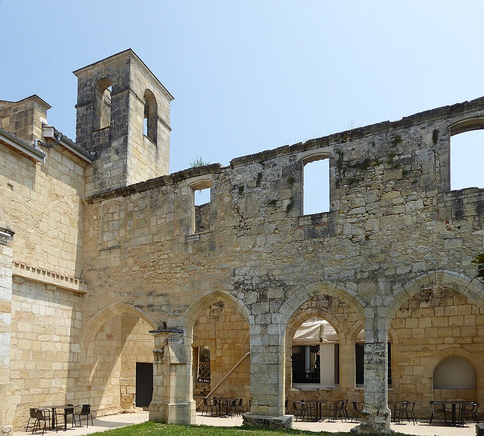 Le cloître des Cordeliers se situe au cœur de la cité médiévale de Saint-Émilion, en Gironde. Les Cordeliers, frères franciscains ainsi nommés en référence à la corde de leur ceinture, s'installent dès le XIIIe siècle initialement à l'extérieur des remparts. Ils occupaient vraisemblablement un lieu dit « Les Menuts » où l'on trouvait encore des vestiges de leur ancienne église, le terme gascon "menut" signifiant « petit ». Après d'importants dégâts subis pendant la guerre de Cent Ans, notamment le pillage de 1337, les religieux demandent et obtiennent l'autorisation de s'implanter à l'intérieur de la ville. À partir de 1338 ils entreprennent l'édification d'une chapelle intra-muros et, en 1343, le pape leur accorde le droit d'établir leur couvent en ville, conduisant à la construction du cloître et d'une partie des bâtiments conventuels. La chapelle sera ensuite transformée en l'église visible aujourd'hui, tandis que d'autres bâtiments antérieurs restent enfermés entre les murailles. En 1383, le roi d'Angleterre leur cède définitivement une parcelle constructible proche de leur ancien emplacement mais située à l'intérieur des remparts. Quatre siècles durant, les Cordeliers occupent le couvent qui comprend alors une église, une cour d'entrée, un chai, un cuvier, une cave, un jardin et un corps de logis avec six chambres. La Révolution de 1789 provoque la fermeture de l'ordre et la mise du bâtiment en bien national ; les religieux sont dispersés et le cloître reste délaissé malgré la réautorisation de l'ordre en 1850. Abandonné, le site est peu à peu envahi par la végétation et devient un lieu de rendez-vous romantique et pittoresque, évoqué au XIXe siècle par Maurice Graterrole pour son atmosphère mélancolique et poétique. À la fin du XIXe siècle, des propriétaires exploitent les sous-sols et les caves souterraines pour l'élaboration de vins pétillants sous le nom de MM. G. Meynot et Compagnie, donnant un renouveau d'activité au cloître. Depuis lors, plusieurs occupants se succèdent et perpétuent la production de vins effervescents, aujourd'hui réputés. Le cloître, construit en pierre calcaire locale, présente une architecture romane qui côtoie l'ancienne chapelle et l'église de style gothique. Ses colonnes monolithes, taillées d'un seul bloc, supportent des abaques décorés de petits écussons. On y distingue des arcs en plein cintre du milieu du XIVe siècle de style roman ainsi que des arcs en ogive gothiques dans le fond, ainsi que les restes d'une petite tour formant le clocher. On peut également observer un grand arc très pur traversant l'église, des colonnes dépourvues de chapiteaux et différentes fenêtres. Le site est classé au titre des monuments historiques et inscrit au patrimoine mondial de l'UNESCO. Les conditions naturelles des caves souterraines conviennent à la fermentation et au vieillissement des vins effervescents, dont la méthode traditionnelle comprend notamment le remuage quotidien des bouteilles, le dosage en liqueur d'expédition et le bouchage final par liège. Les Cordeliers produisent une dizaine de vins effervescents, blancs et rosés, brut ou demi-sec, élaborés à partir de cépages bordelais tels que Merlot, Sémillon, Cabernet Franc et Sauvignon. Il est possible de visiter les caves et galeries souterraines pour découvrir l'élaboration des vins et les dessous de la cité médiévale. Le cloître a aussi inspiré les arts : son décor a été reproduit à l'Opéra de Paris en 1839 pour Robert le Diable de Meyerbeer, et il a servi de lieu de tournage pour le film La mariée était trop belle de Pierre Gaspard-Huit.