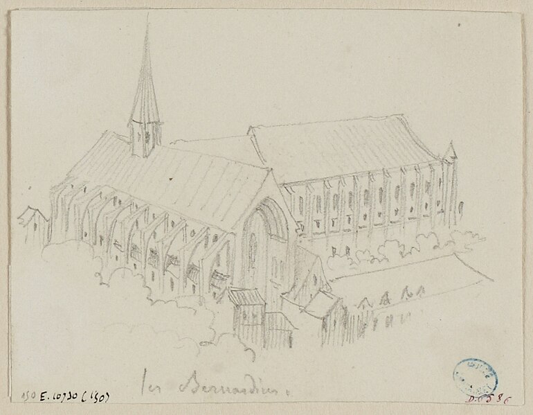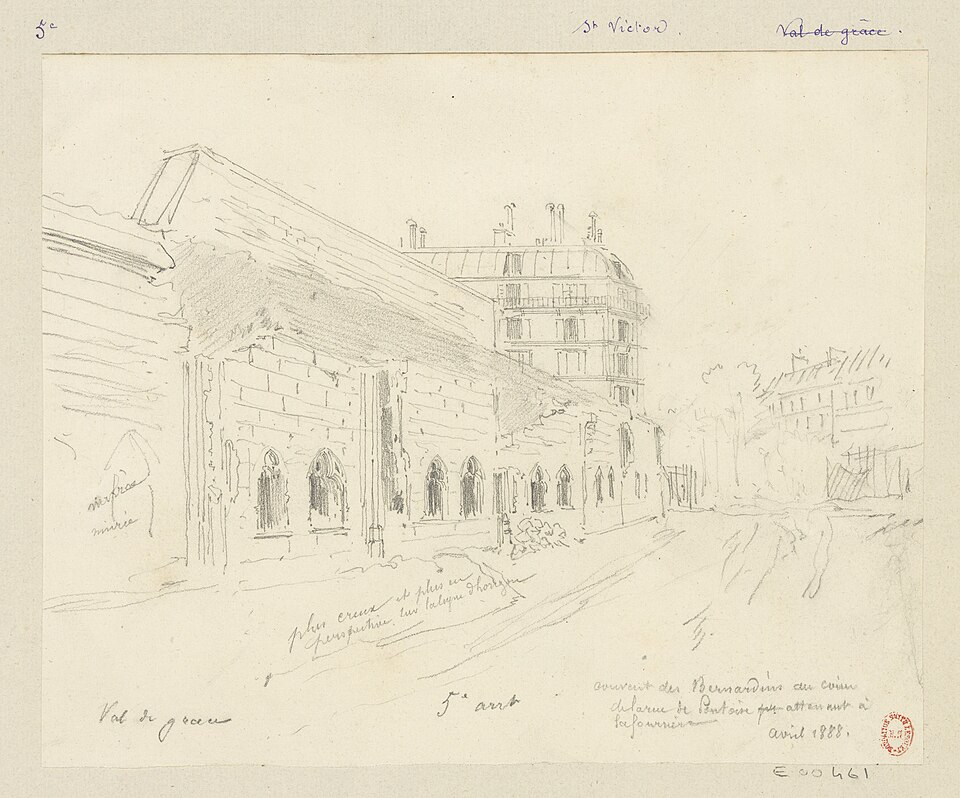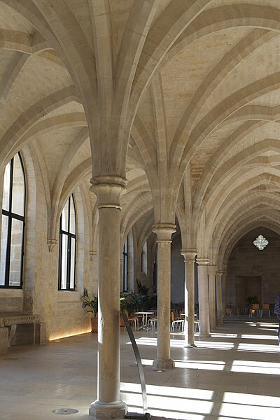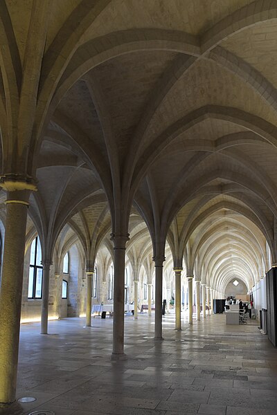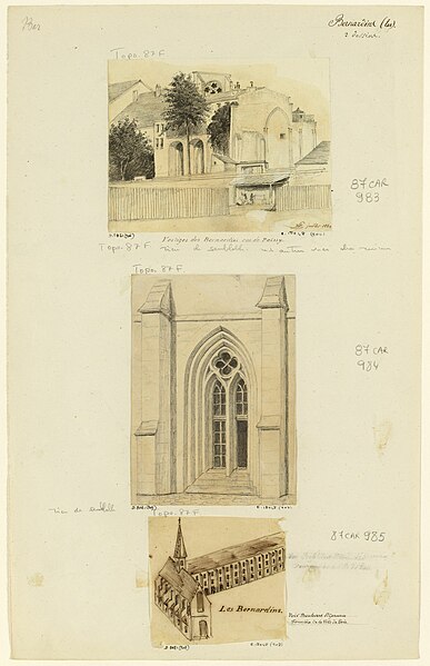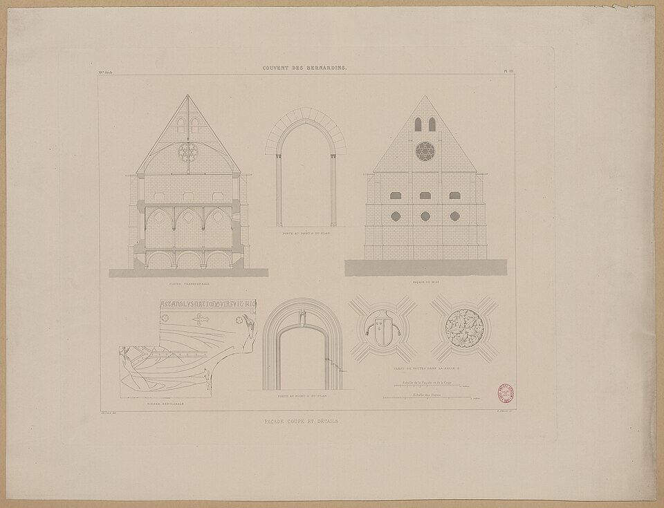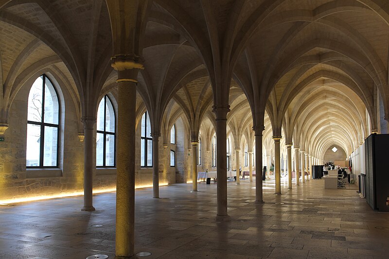 L'ancien couvent des Bernardins, situé 20 rue de Poissy dans le 5e arrondissement de Paris, est l'ancien Collège des Bernardins, un collège cistercien de l'université de Paris. Fondé au XIIIe siècle par Étienne de Lexington avec l'encouragement du pape Innocent IV, il servit de résidence aux moines cisterciens étudiant à l'université. Le corps principal du Collège, commencé à partir de 1248 et achevé vers 1253, comprenait plusieurs niveaux abritant salles de cours, réfectoires et dortoirs; ses fondations reposaient sur des pilotis de chêne en raison du sol marécageux. Protégé par Alphonse de Poitiers, il accueillit pendant plusieurs siècles un grand nombre d'étudiants cisterciens venus d'Europe et assura un enseignement théologique intensif, dispensé en latin tout au long de la journée. L'église du collège, dont la sacristie et les travaux furent encouragés par le pape Benoît XII, resta inachevée; elle fut partiellement démolie pour le tracé de la rue de Pontoise, ses ruines rasées lors du percement du boulevard Saint‑Germain et largement détruites ensuite. Confisqué à la Révolution et devenu bien national, le Collège fut successivement transformé en prison, puis en caserne de pompiers et accueillit d'autres occupations, dont un internat de la Police nationale. Durant la Semaine sanglante de 1871, le réfectoire, converti en caserne, servit de refuge à de nombreux civils. Malgré son classement au titre des monuments historiques depuis le 10 février 1887, le site resta longtemps méconnu et menaçait d'effondrement. Racheté par le diocèse de Paris en avril 2001, le Collège fit l'objet d'un important programme de restauration pour le transformer en lieu de rencontres, de formation et de culture. Les travaux, conduits de 2004 à 2008 sous la responsabilité de Hervé Baptiste pour la partie ancienne et de Jean‑Michel Wilmotte pour les espaces contemporains, ont nécessité la mise en place de 322 micropieux d'acier de 15 à 25 mètres de profondeur, le renforcement des piliers par cerclage métallique et la restauration de la toiture par une charpente métallique couverte de tuiles plates artisanales (110 000 tuiles de six nuances). Les fouilles et déblaiements ont mis au jour des voûtes romanes ensevelies, un canal de dérivation de la Bièvre et une pierre tombale datée de 1306. La rénovation, livrée en septembre 2008 et inaugurée début septembre par l'archevêque, permit d'aménager environ 5 000 m² utiles, dont 1 000 m² créés, et d'installer quinze salles de cours ainsi que deux auditoriums. Le 12 septembre 2008, le pape Benoît XVI prononça un discours au Collège, et l'établissement accueille depuis 2009 l'Académie catholique de France. Restauré dans sa triple vocation éducative, culturelle et spirituelle, le Collège propose expositions, concerts, conférences et activités pour le jeune public, assure une formation théologique au sein de l'École cathédrale et abrite un pôle de recherche structuré en départements thématiques. Ces départements traitent notamment de l'éducation et de la transmission, de l'économie et de la société, de l'éthique biomédicale, de la politique et des religions, de l'humanisme numérique, des humanités environnementales et des relations entre art et parole, complétés par des chaires de recherche successives. Depuis sa réouverture, le Collège des Bernardins a retrouvé une place active dans le paysage culturel et intellectuel parisien tout en conservant le souvenir de son histoire monastique et universitaire.