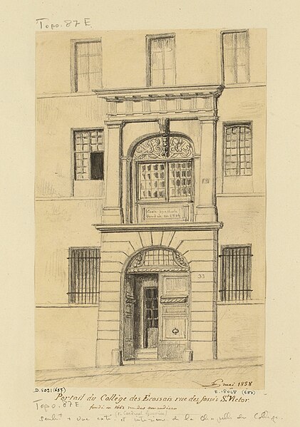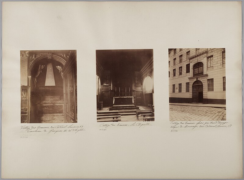 Un arrêt du Conseil du 17 avril 1685 ordonna la démolition de la porte Saint-Marcel et le comblement des fossés entre les portes Saint-Victor et Saint-Jacques, entraînant un abaissement du terrain pouvant atteindre cinq mètres ; le collège dut être repris en sous-œuvre et on lui ajouta un rez-de-chaussée, ce qui lui donna son aspect particulier. Le bâtiment servit de prison sous la Terreur, puis fut rendu à l'église écossaise en 1806. Le collège de la rue des Fossés Saint-Victor, devenue rue du Cardinal-Lemoine, abrite aujourd'hui une école primaire et un foyer d'étudiantes en classes préparatoires aux grandes écoles Louis-le-Grand et Henri-IV. Les bâtiments sont protégés au titre des monuments historiques par arrêtés des 22 février 1945 et 6 août 1975 ; ils se situent au 65, rue du Cardinal-Lemoine dans le 5e arrondissement et sont accessibles à proximité par la ligne 10, station Cardinal Lemoine.