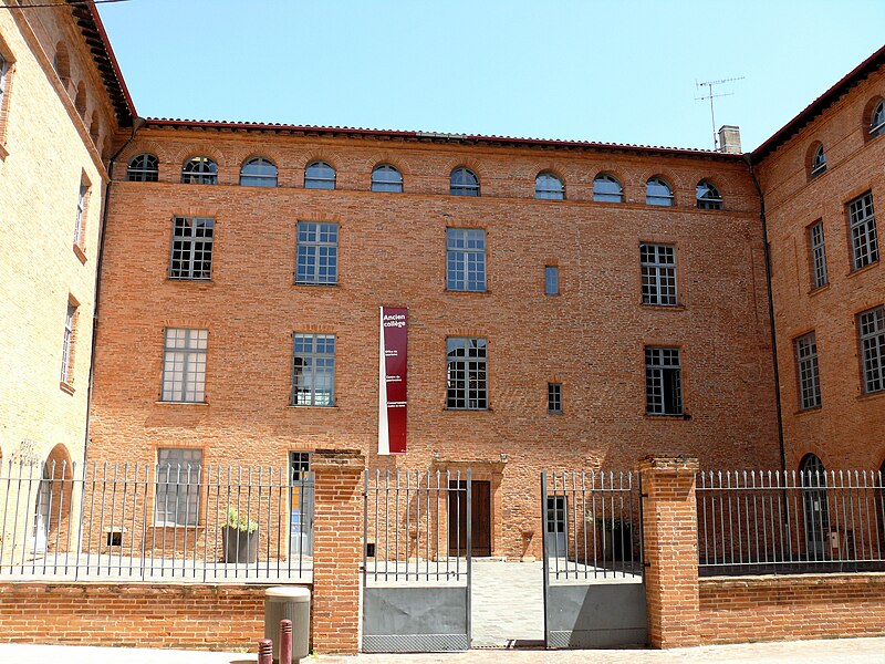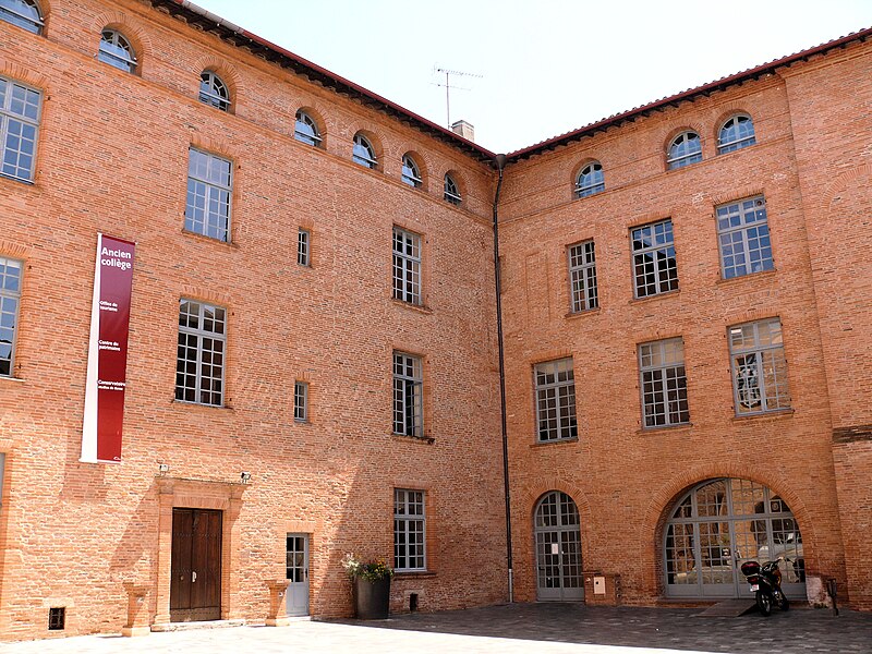 Après la soumission de la ville protestante à Louis XIII en 1629, de nouveaux bâtiments voient le jour, parmi lesquels le collège des Jésuites. Commencé en 1676, il servit d'abord de logement aux Intendants et son transfert comme collège fut autorisé en 1677. L'édifice est probablement bâti sur les restes des anciennes fortifications. Il repose sur d'importantes salles voûtées qui semblent contemporaines de la construction. Le plan occupe un rectangle dont la partie ancienne est délimitée à l'est par deux tours flanquant la façade. Le bâtiment principal et ses deux ailes encadrent une cour rectangulaire dont le quatrième côté était formé par un mur de clôture, remplacé, sans doute au XIXe siècle, par un autre bâtiment. En face de l'entrée, un grand escalier axial occupe toute la largeur entre les deux façades. Les façades latérales donnant sur la cour comportent, à la base, des arcades. À l'angle sud-est de la cour, les percements des étages présentent des vestiges de remaniement qui pourraient laisser penser qu'un passage permettait une communication extérieure entre les deux bâtiments. Le clocher surmonte l'extrémité ouest de l'aile nord ; l'église accolée à ce clocher est plus récente. L'étage supérieur des façades est rythmé par des galeries ajourées à arcades en plein cintre. La cour conserve des vestiges d'un pavement en petits galets noirs et blancs.