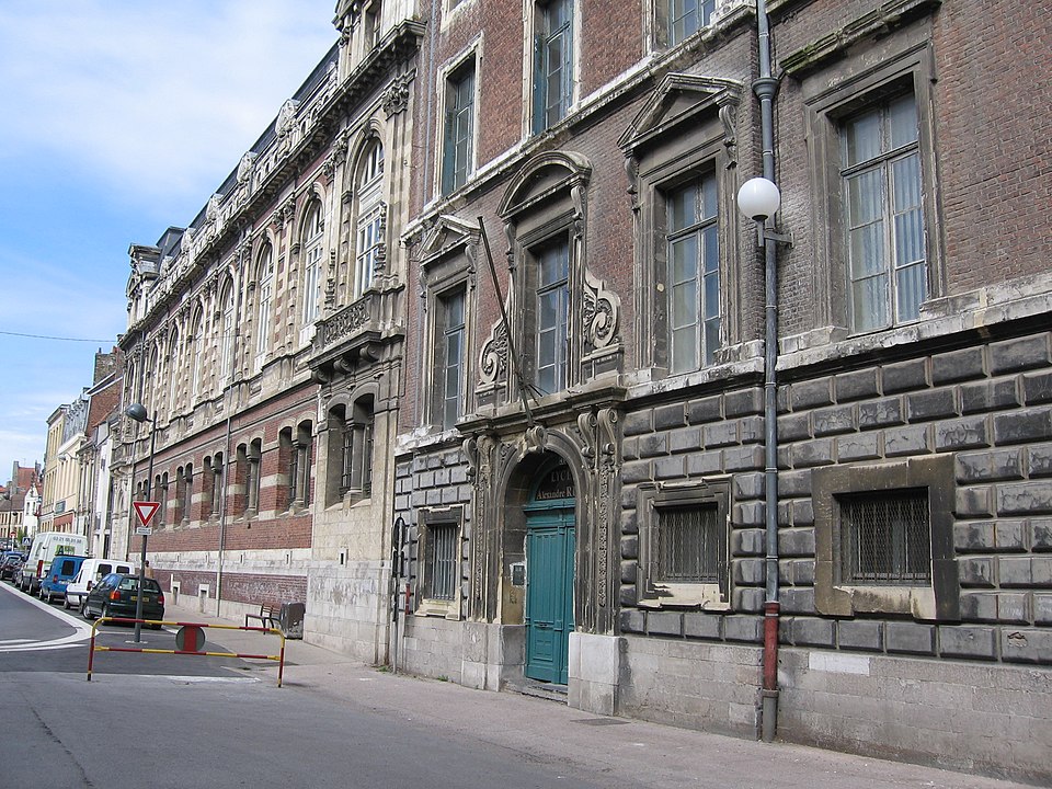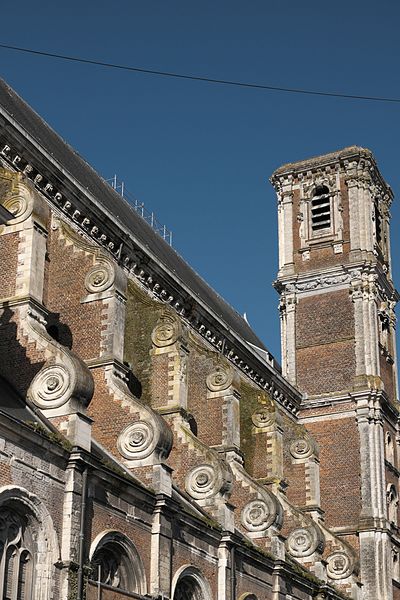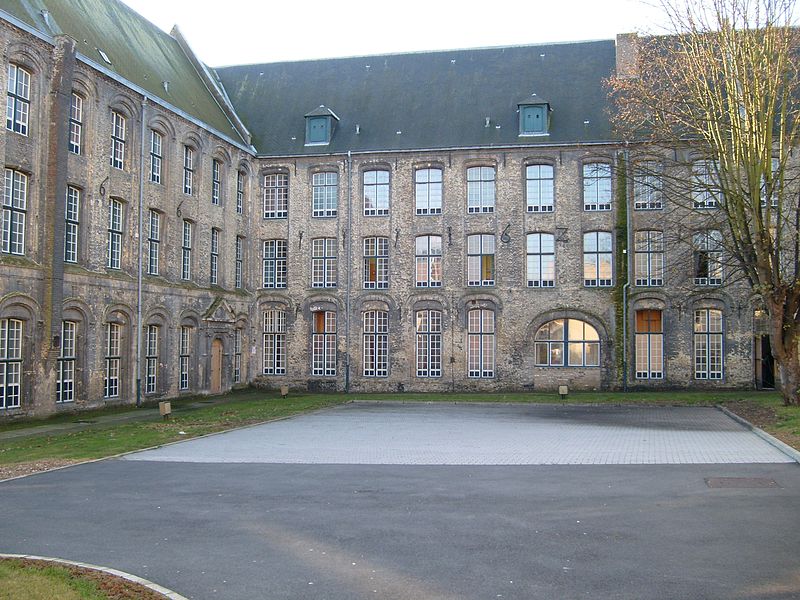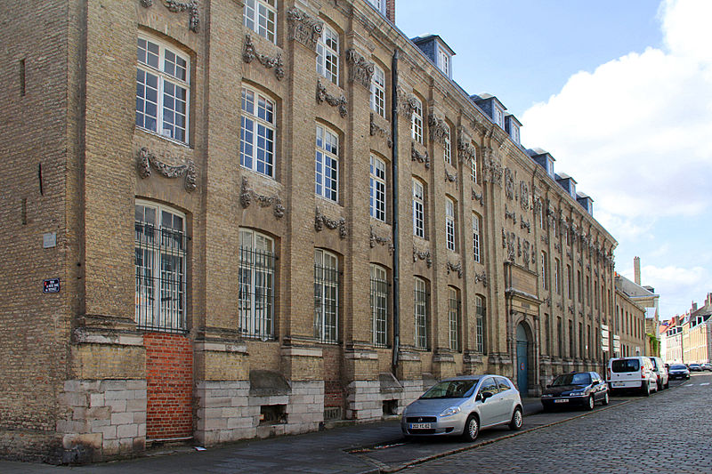 L’ancienne église du collège date du début du XVIIe siècle ; la chapelle a été classée monument historique en 1942 et l’ensemble a fait l’objet d’une inscription partielle en 1977. Peu après la création du diocèse de Saint-Omer, son premier évêque Gérard d’Haméricourt sollicita en 1565 la Compagnie de Jésus pour fonder un collège, réponse motivée aussi par la volonté de lutter contre l’influence protestante. Le collège ouvrit ses portes le 15 janvier 1569 rue du Viel Brusles (aujourd’hui rue Gambetta), dans des bâtiments acquis et dotés par l’évêque et l’abbaye de Saint-Bertin, et une chapelle fut édifiée. Dès son ouverture, l’établissement accueillait 200 élèves répartis en cinq classes d’humanités supérieures, avec des cours de philosophie et de théologie, dans un souci prioritaire de former des prêtres pour le diocèse. Jusqu’à la fin de sa vie, l’évêque soutint activement le collège et demanda à être enterré dans sa chapelle.